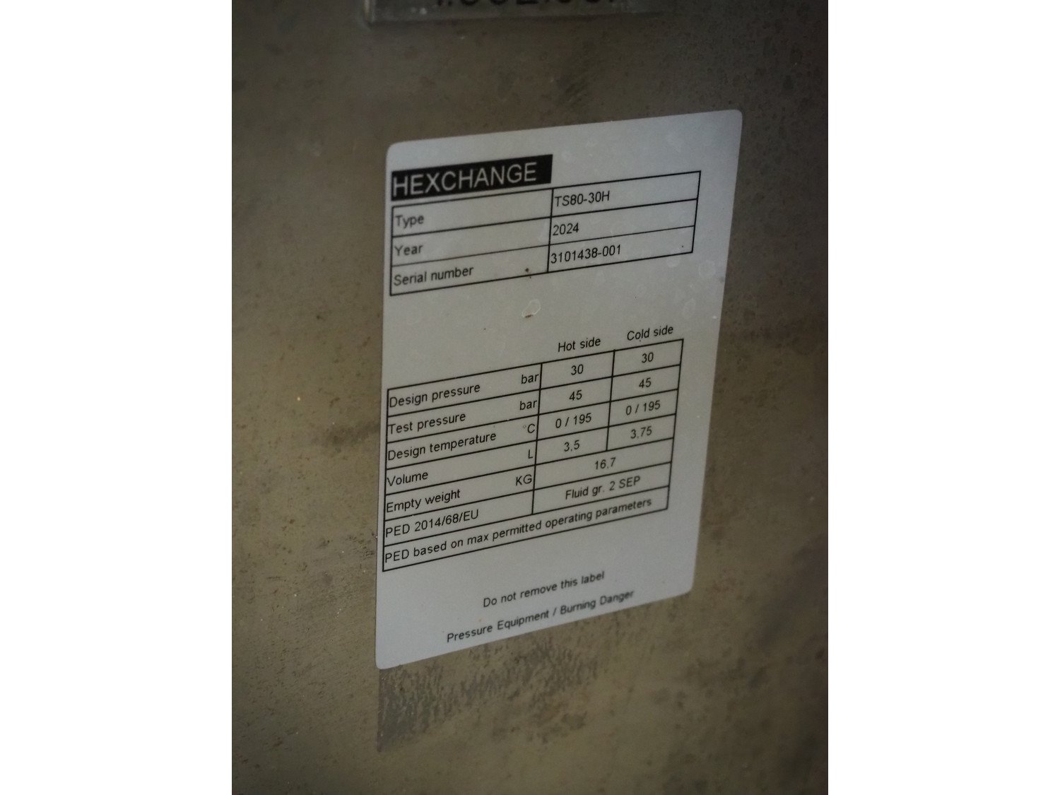 Grundfos circulation pump, model: LP 65_160/165AABBUE, Samson valve with single acting electro pneumatic positioner, type: 4763 and Hexchange heat exchanger type: TS80-30H, dimensions: 600 mm x 1900 mm x 1700 mm. Kavel locatie: P. Stuyvesantweg 1, 8937 AC Leeuwarden, Nederland