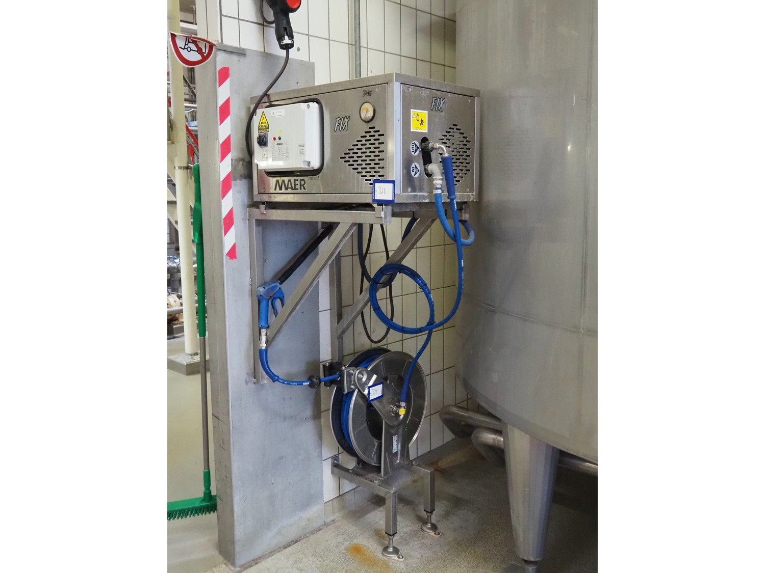 MAER Idroplulitrici high pressure cleaner, type: FIX, serial number: 082455, year of construction: 11-2008, 400 V, 50 Hz, 13.5 A, max pressure: 200 bar, weight: 80 kg, including Ramex hose reel, dimensions: 900 mm x 550 mm x 500 mm. Kavel locatie: P. Stuyvesantweg 1, 8937 AC Leeuwarden, Nederland