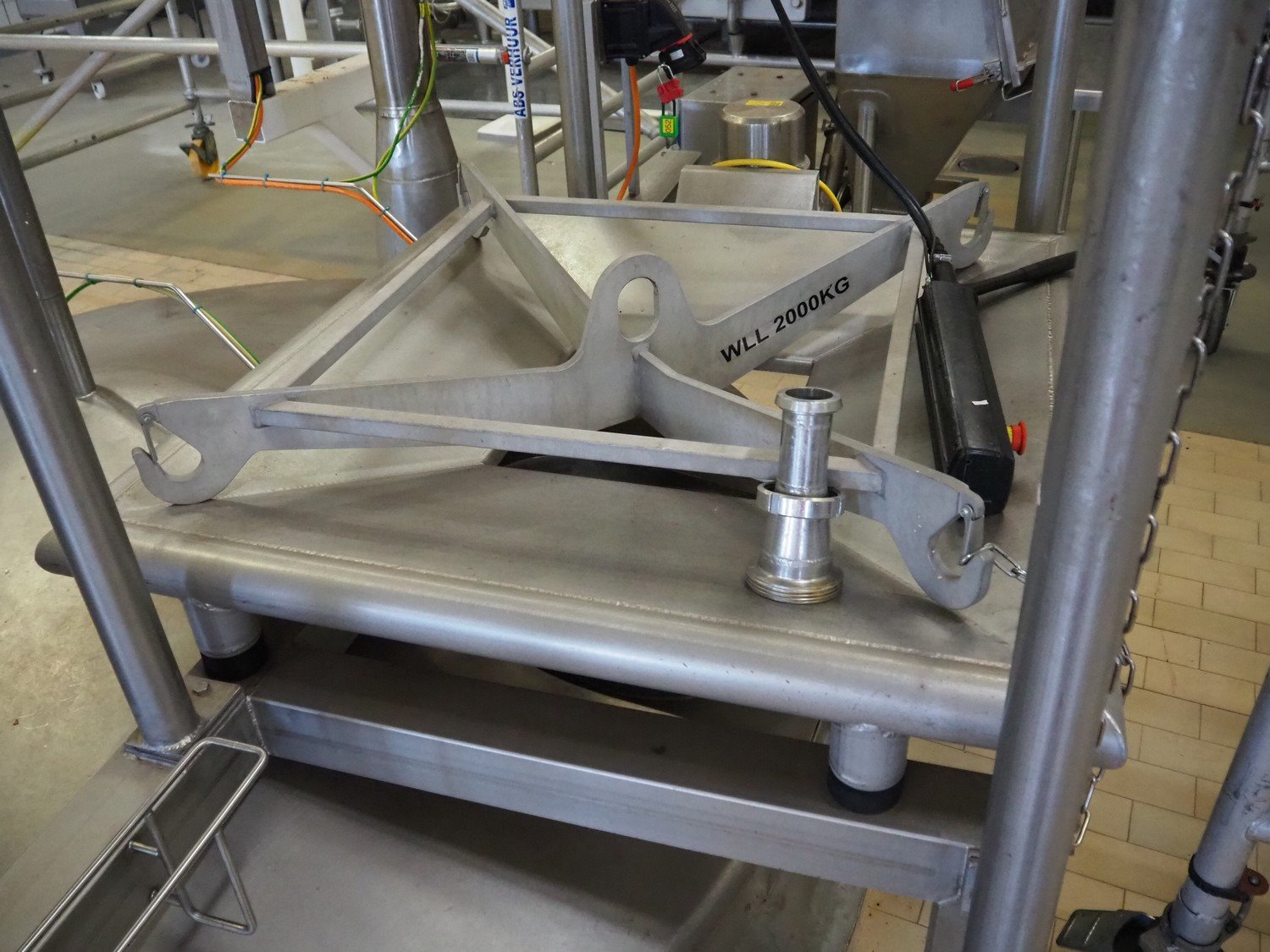 S/s unloading station for big bags, with Verlinde electrical chain hoist, type: VL5 1004B1 EX, serial number: 1236207629, year of construction: 06/09/2012, capacity: 1000 kg, dimensions: 3400 mm x 1200 mm x 1750 mm. Kavel locatie: P. Stuyvesantweg 1, 8937 AC Leeuwarden, Nederland