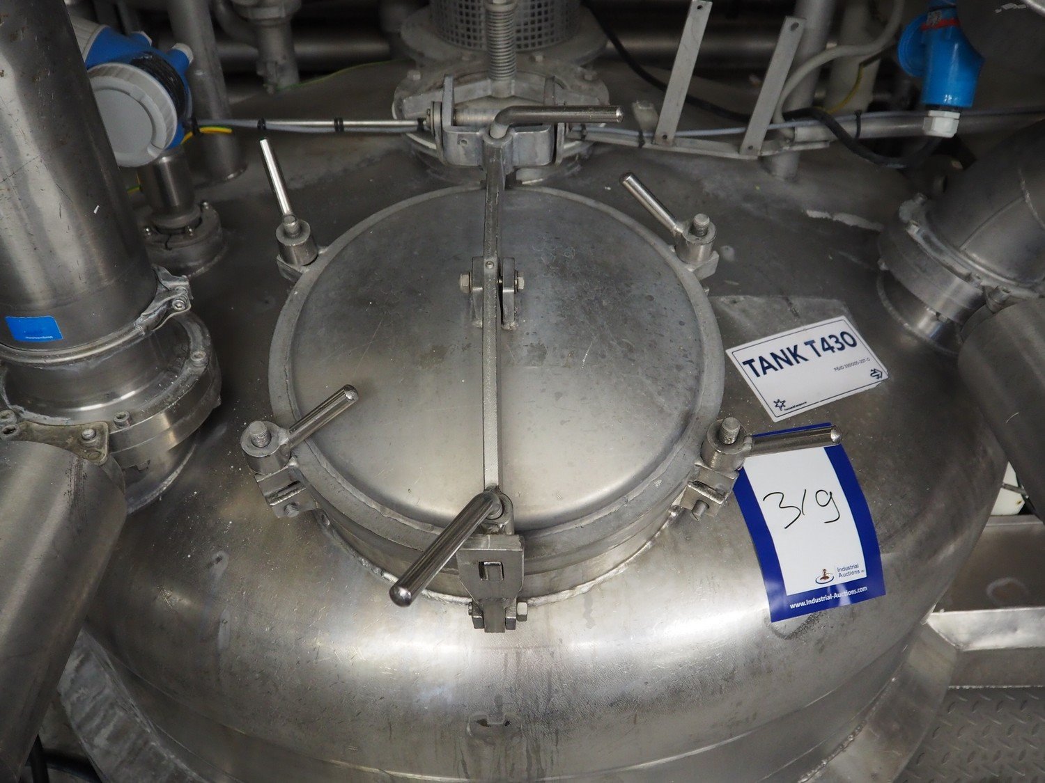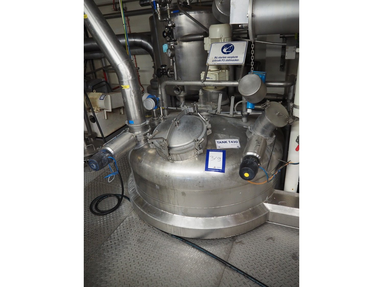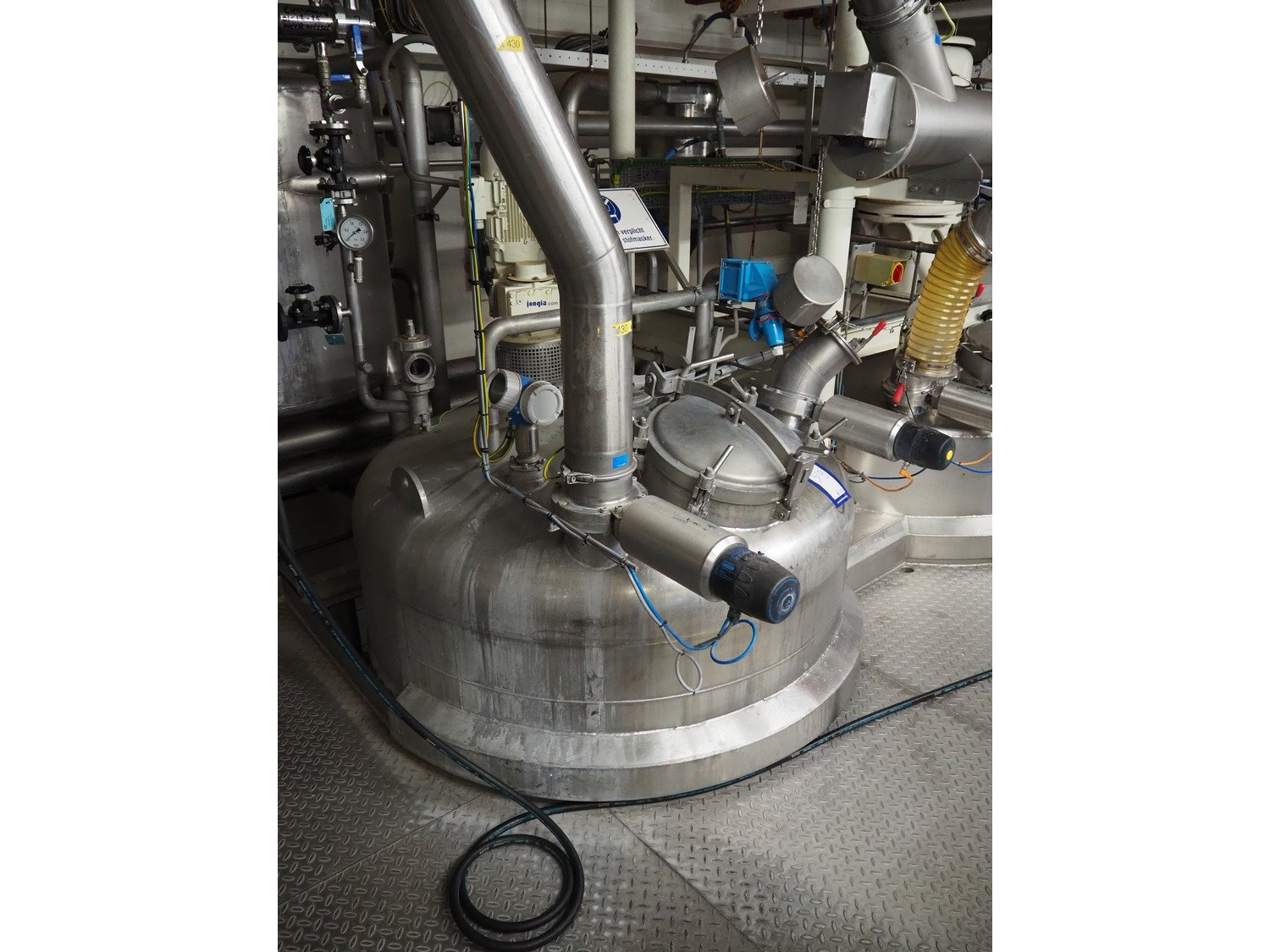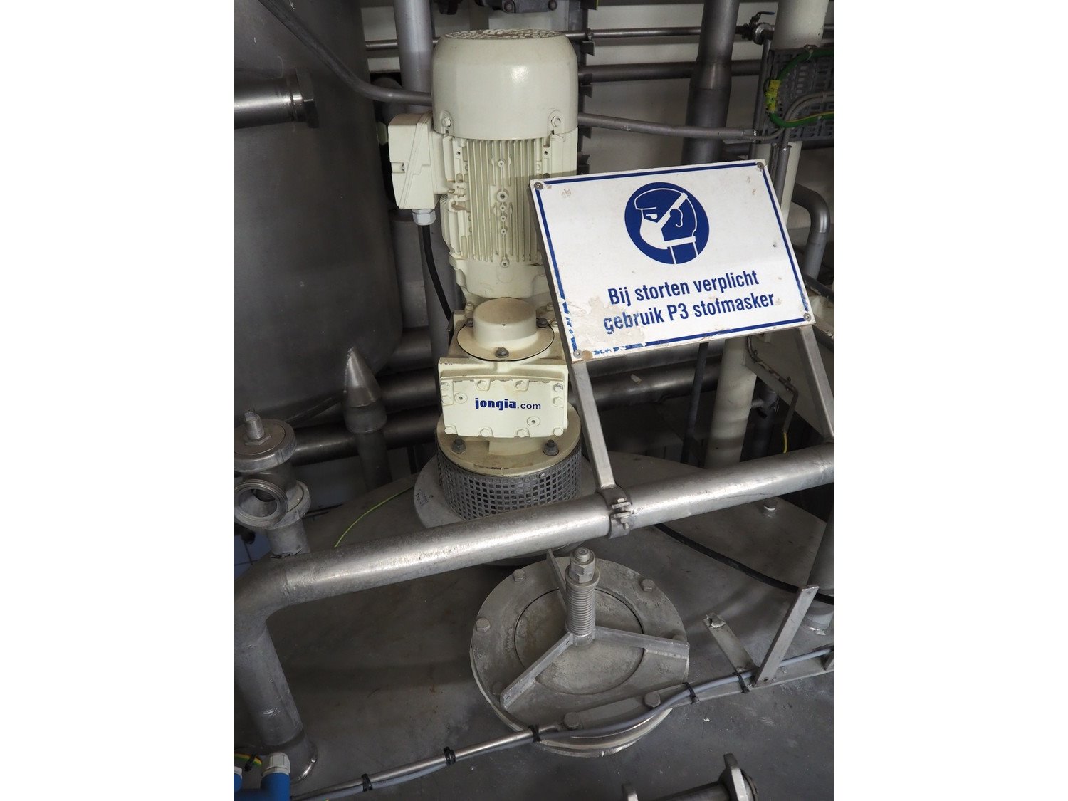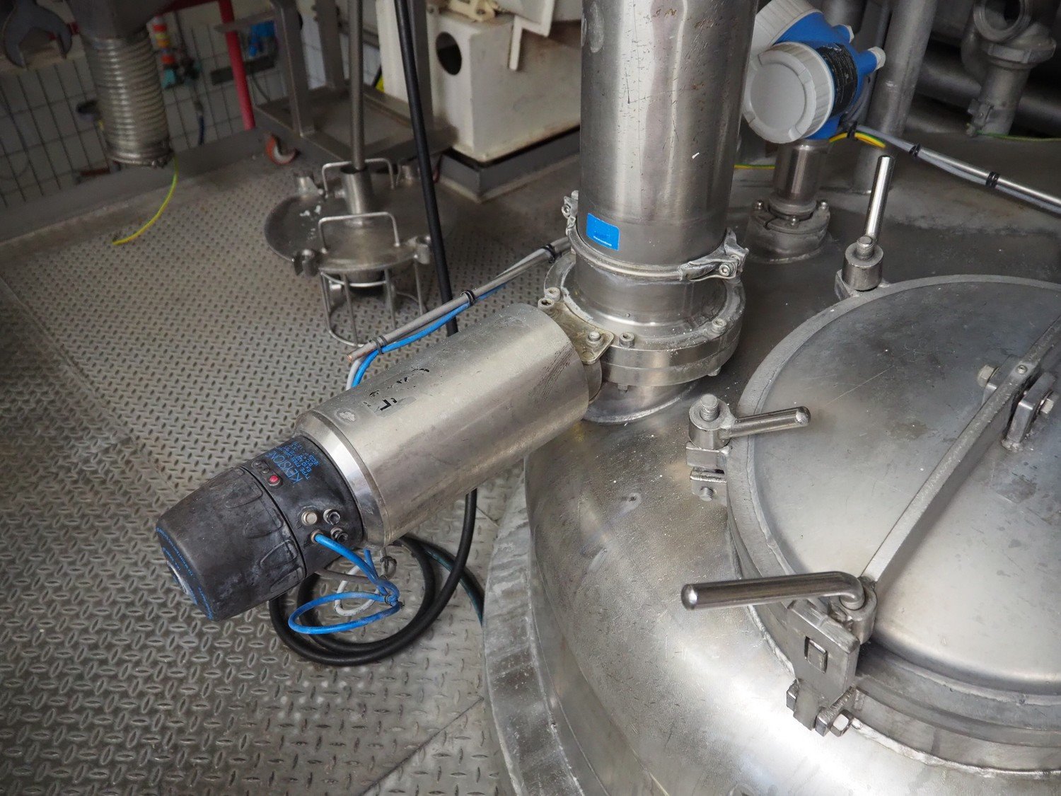 S/s double jacked heated tank with agitator, tank dimensions: Ø 1600 mm x 1800 mm, total dimensions: Ø 1600 mm x 3800 mm. Kavel locatie: P. Stuyvesantweg 1, 8937 AC Leeuwarden, Nederland
