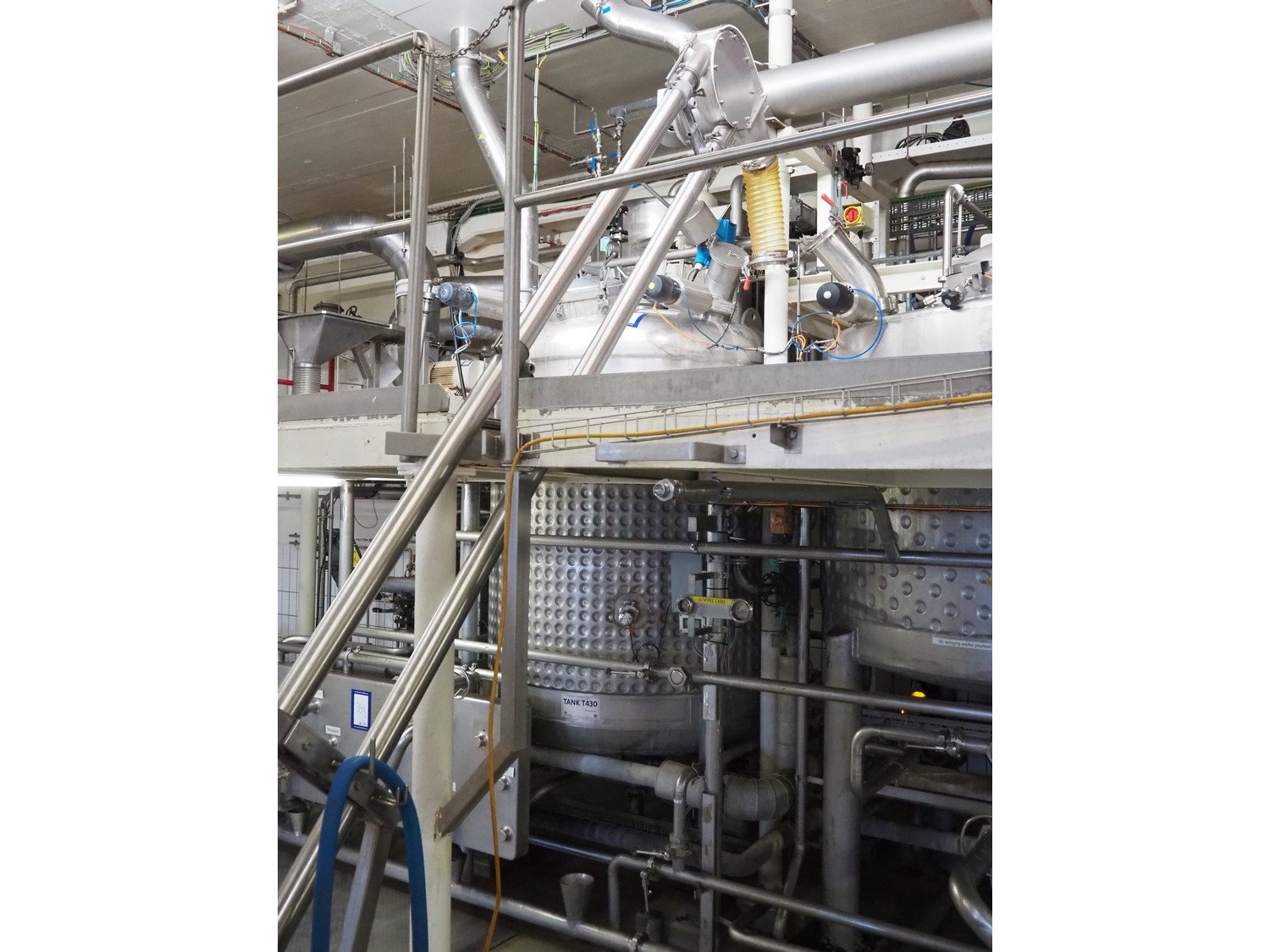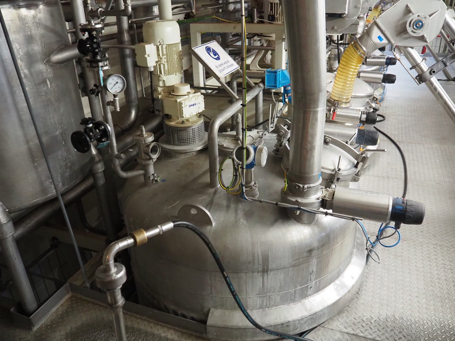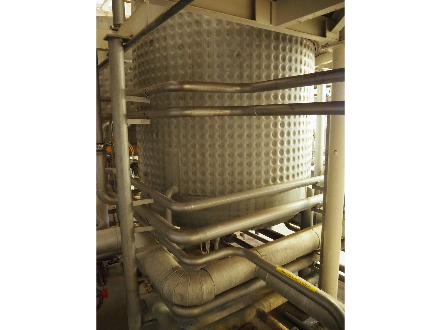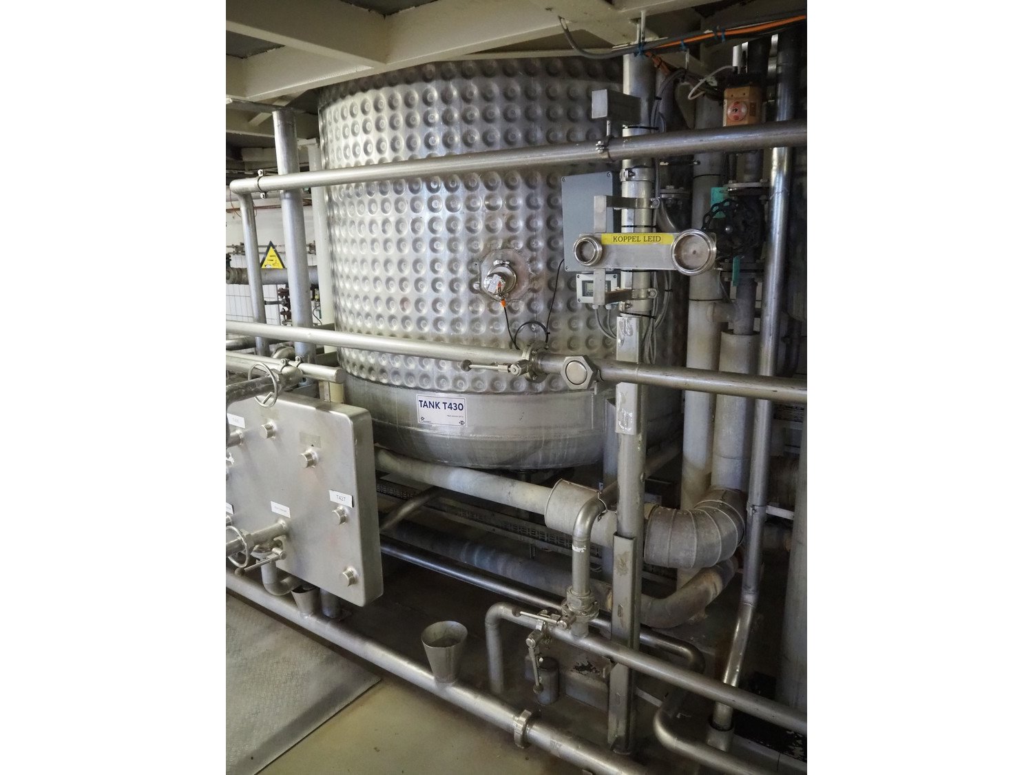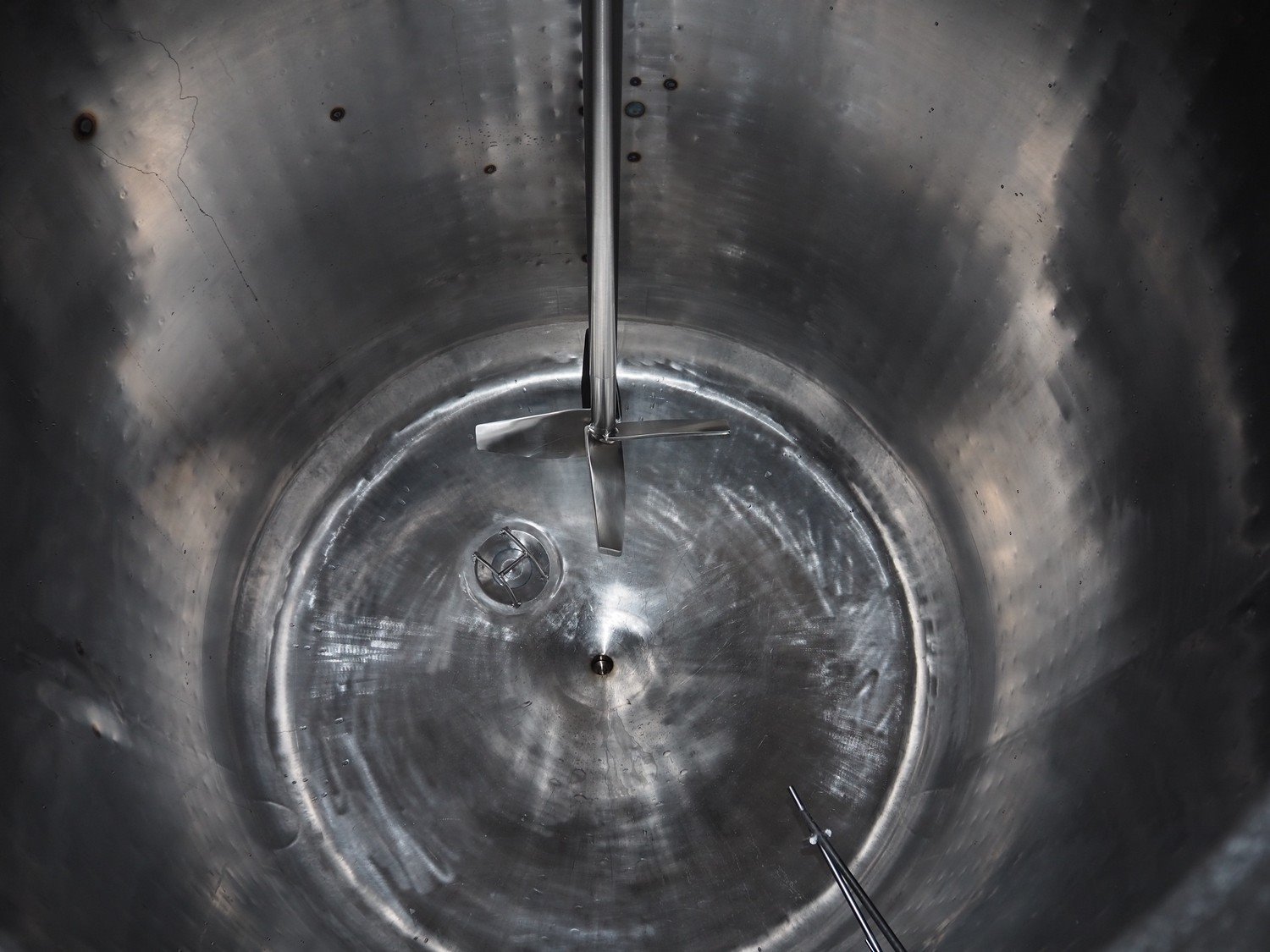 S/s double jacked heated tank with agitator, tank dimensions: Ø 1600 mm x 1800 mm, total dimensions: Ø 1600 mm x 3800 mm. Kavel locatie: P. Stuyvesantweg 1, 8937 AC Leeuwarden, Nederland