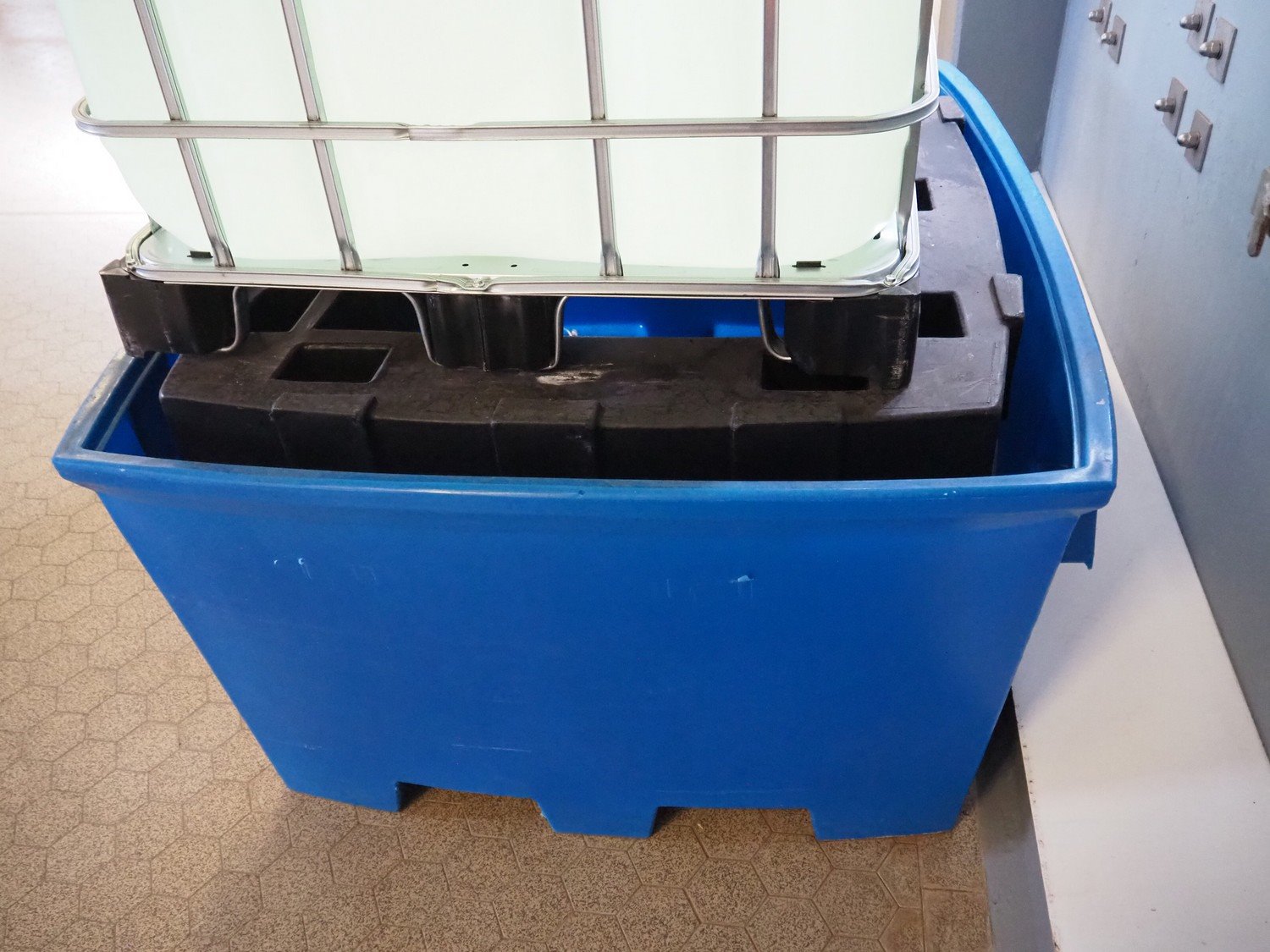 Denios plastic drip tray for IBC tanks, type: IBC-Station-R Wanne, serial number: 100388628-008, year of construction: 2016, volume: 1100 litre, capacity: 2000 kg, dimensions: 1300 mm x 1800 mm x 800 mm. Kavel locatie: P. Stuyvesantweg 1, 8937 AC Leeuwarden, Nederland
