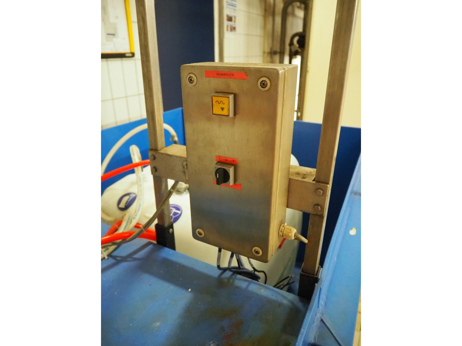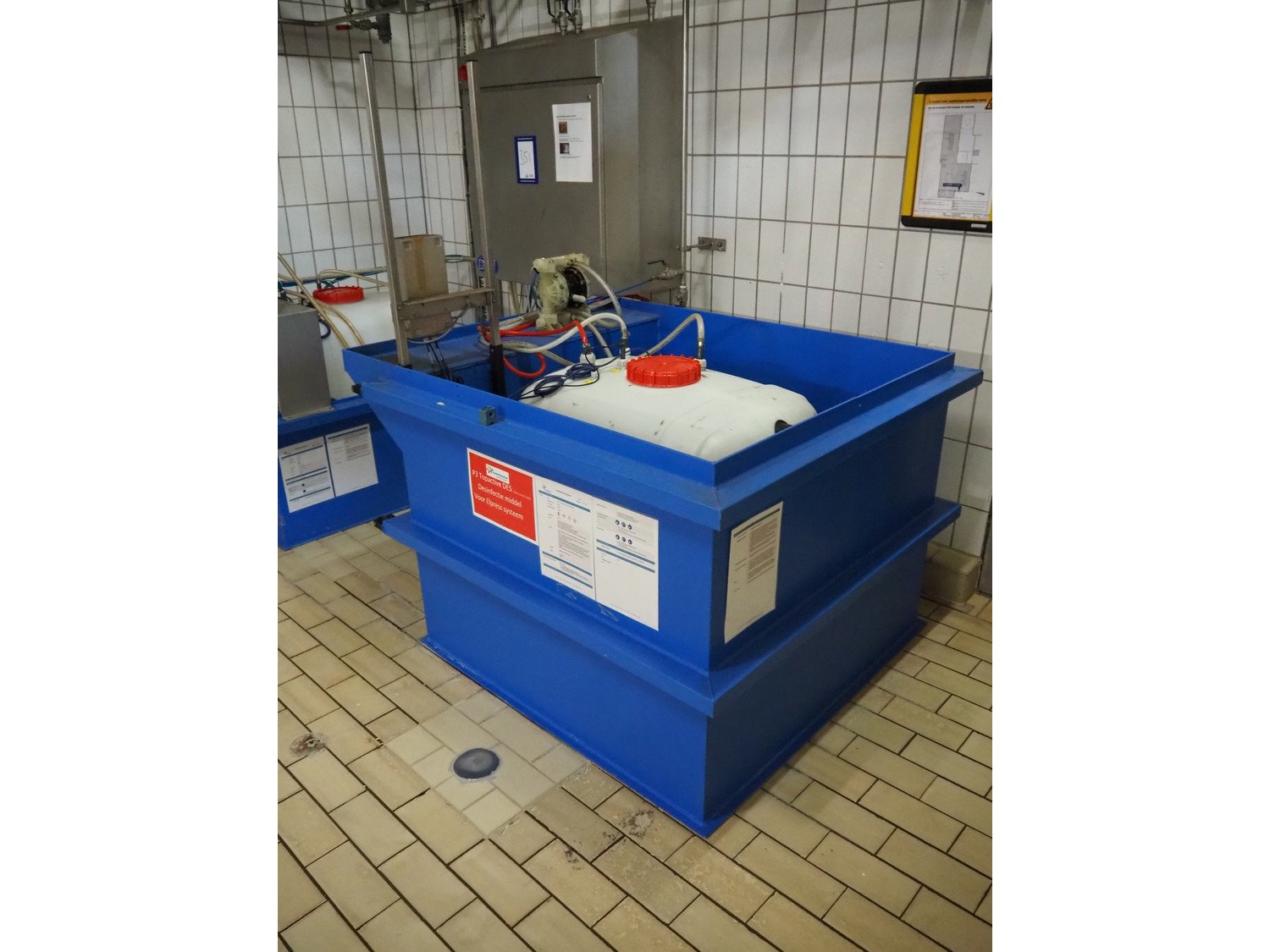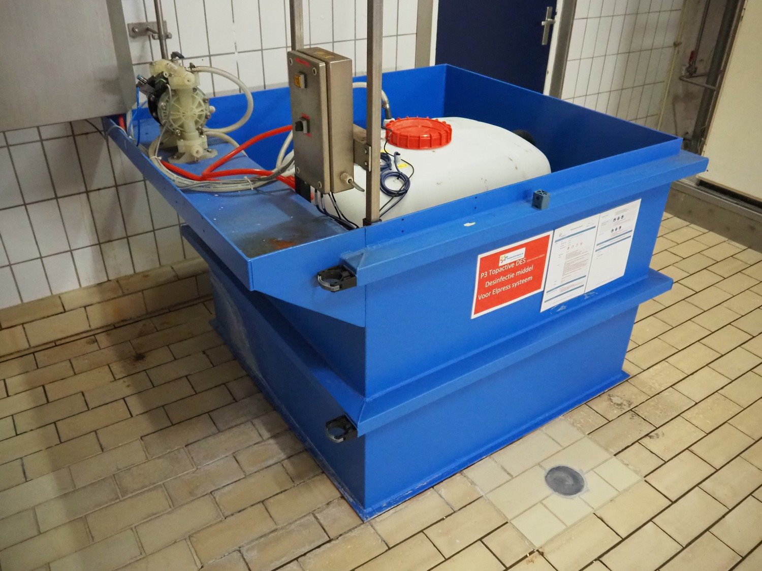 Elpress mixing station for foam disinfection stations, type: 12705199-83601010, year of construction: 2012, 400 V, 3 Ph, 50 Hz, 16 A, 1.7 kW, pressure 6 bar, dimensions: 1000 mm x 450 mm x 1000 mm, including 2 plastic tubs with disinfectant, dimensions: 1350 mm x 950 mm x 1300 mm and 1650 mm x 1400 mm x 1900 mm. Kavel locatie: P. Stuyvesantweg 1, 8937 AC Leeuwarden, Nederland