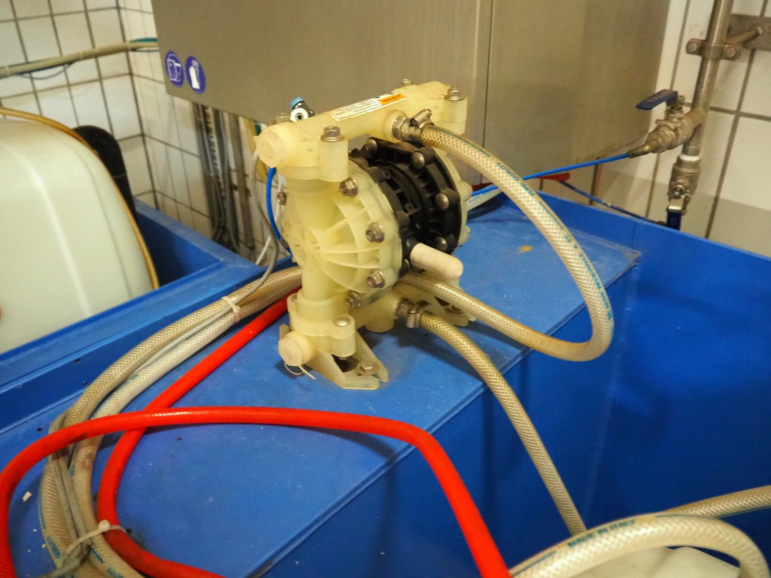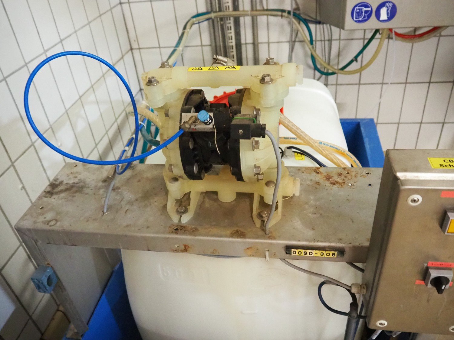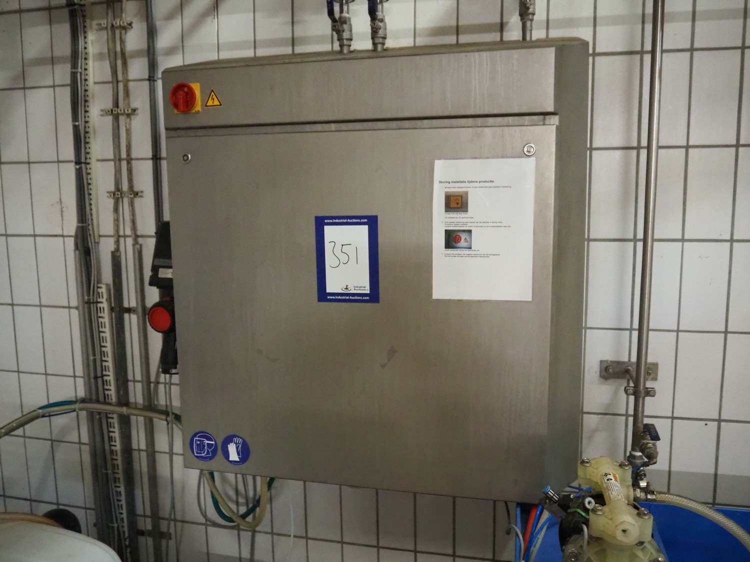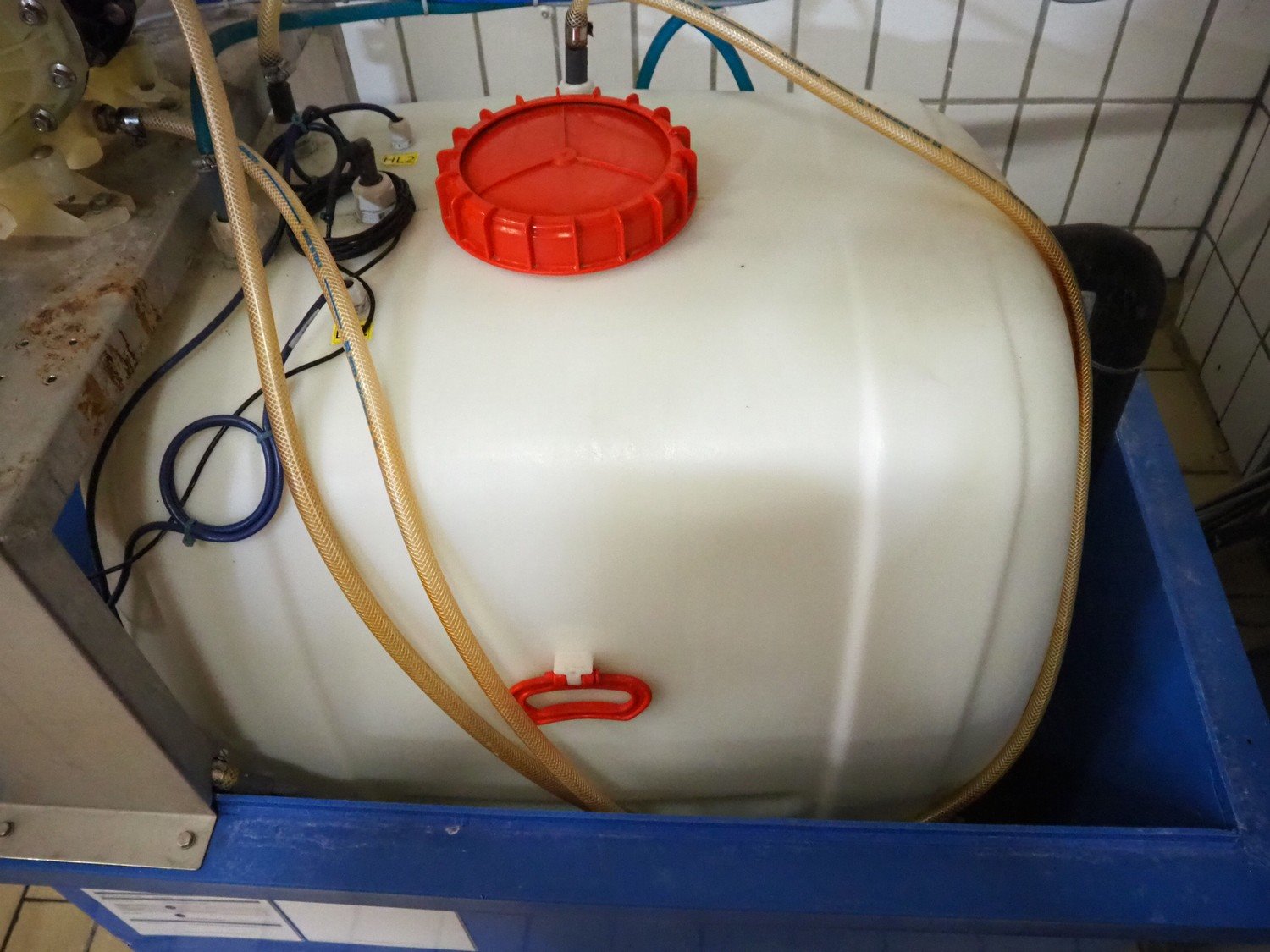 Elpress mixing station for foam disinfection stations, type: 12705199-83601010, year of construction: 2012, 400 V, 3 Ph, 50 Hz, 16 A, 1.7 kW, pressure 6 bar, dimensions: 1000 mm x 450 mm x 1000 mm, including 2 plastic tubs with disinfectant, dimensions: 1350 mm x 950 mm x 1300 mm and 1650 mm x 1400 mm x 1900 mm. Kavel locatie: P. Stuyvesantweg 1, 8937 AC Leeuwarden, Nederland
