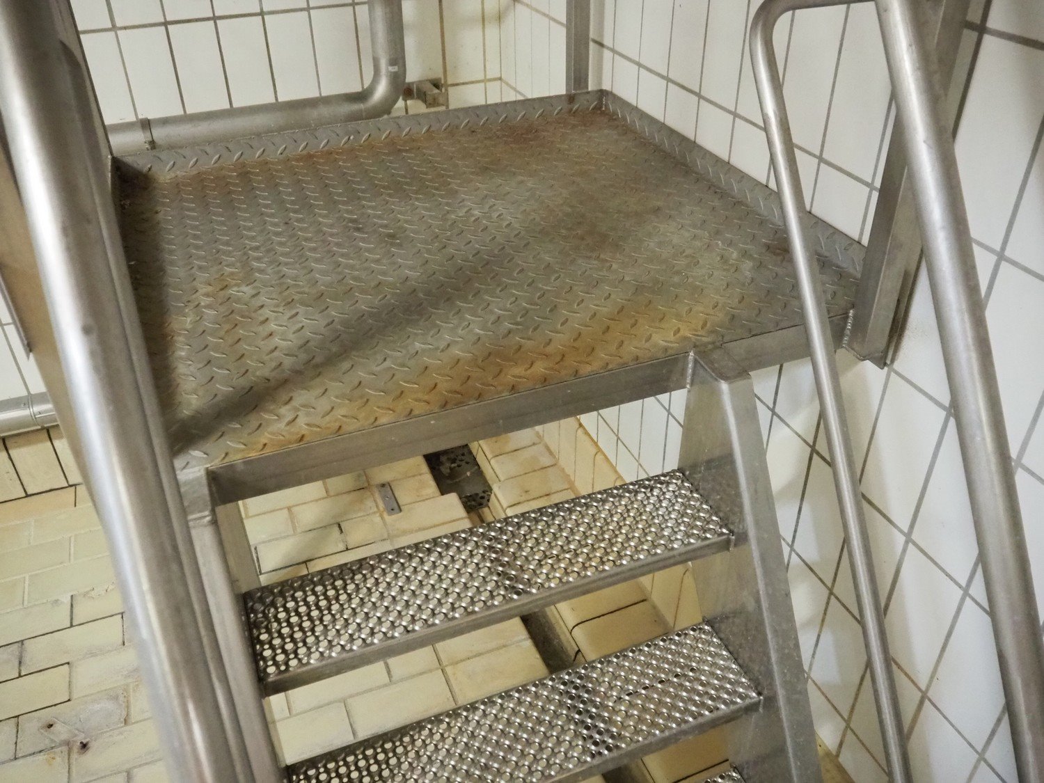 S/s platform wit stairs, working height: 1200 mm, total dimensions: 2300 mm x 400 mm x 2150 mm. Kavel locatie: P. Stuyvesantweg 1, 8937 AC Leeuwarden, Nederland