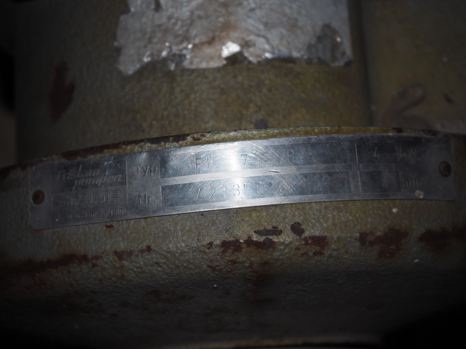 Fristam centrifugal pump, type: FP 722 B, number: 42335026, P: 4 kW, dimensions: 500 mm x 250 mm x 370 mm. Kavel locatie: P. Stuyvesantweg 1, 8937 AC Leeuwarden, Nederland