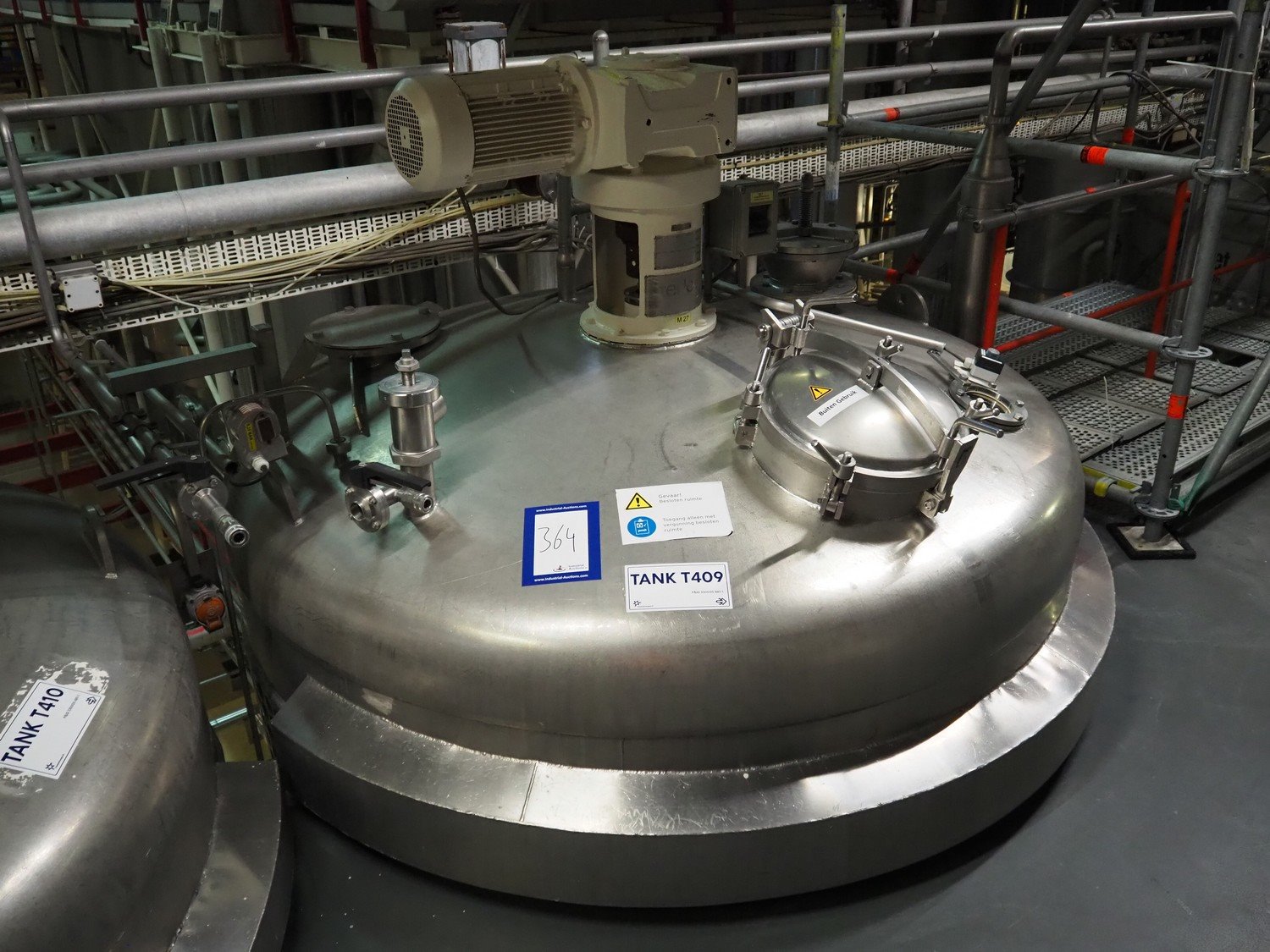 Terlet s/s double jacketed tank with agitator, volume: 8000 litre, dimensions: Ø 2000 mm x 4600 mm. Kavel locatie: P. Stuyvesantweg 1, 8937 AC Leeuwarden, Nederland