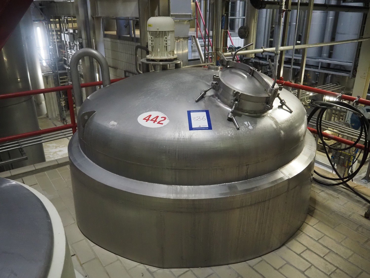 S/s double jacketed tank with agitator, tank dimensions: Ø 2000 mm x 4800 mm. Kavel locatie: P. Stuyvesantweg 1, 8937 AC Leeuwarden, Nederland