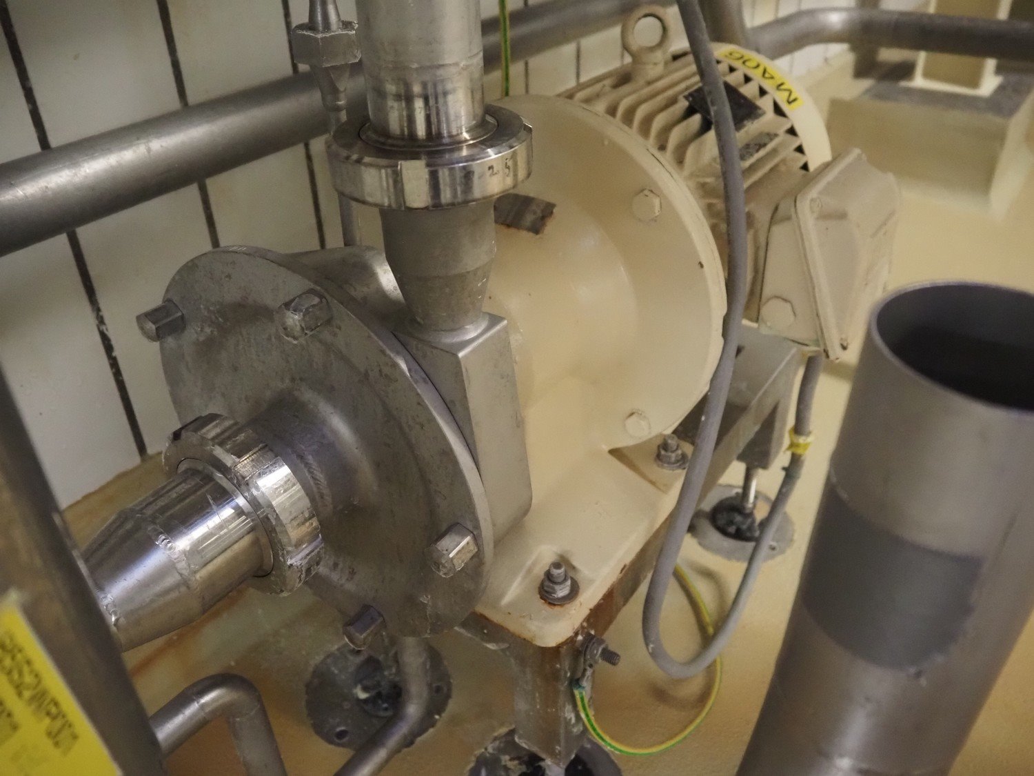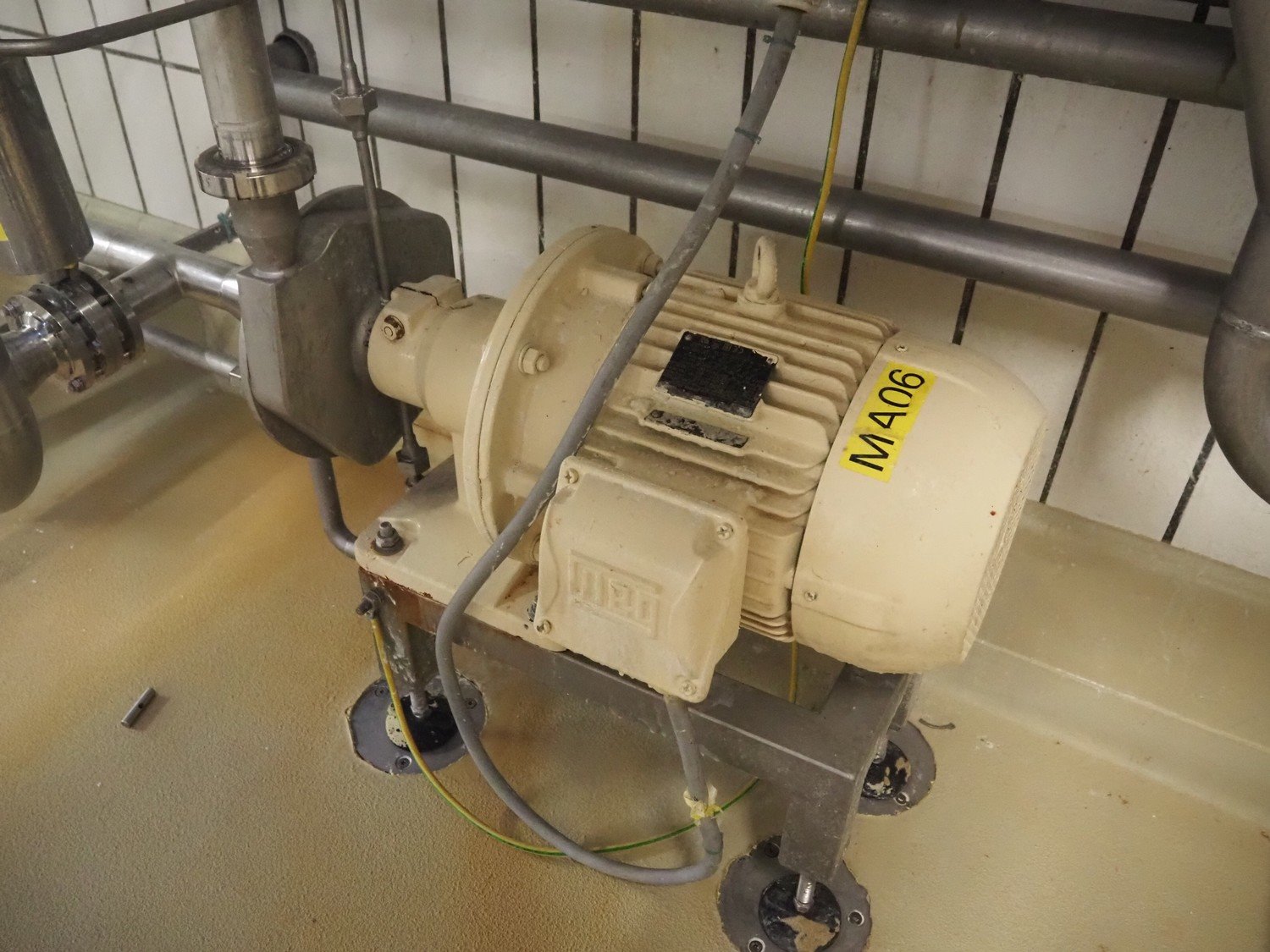 Fristam centrifugal pump, dimensions: 1100 mm x 500 mm x 900 mm, including Pentair valve. Kavel locatie: P. Stuyvesantweg 1, 8937 AC Leeuwarden, Nederland