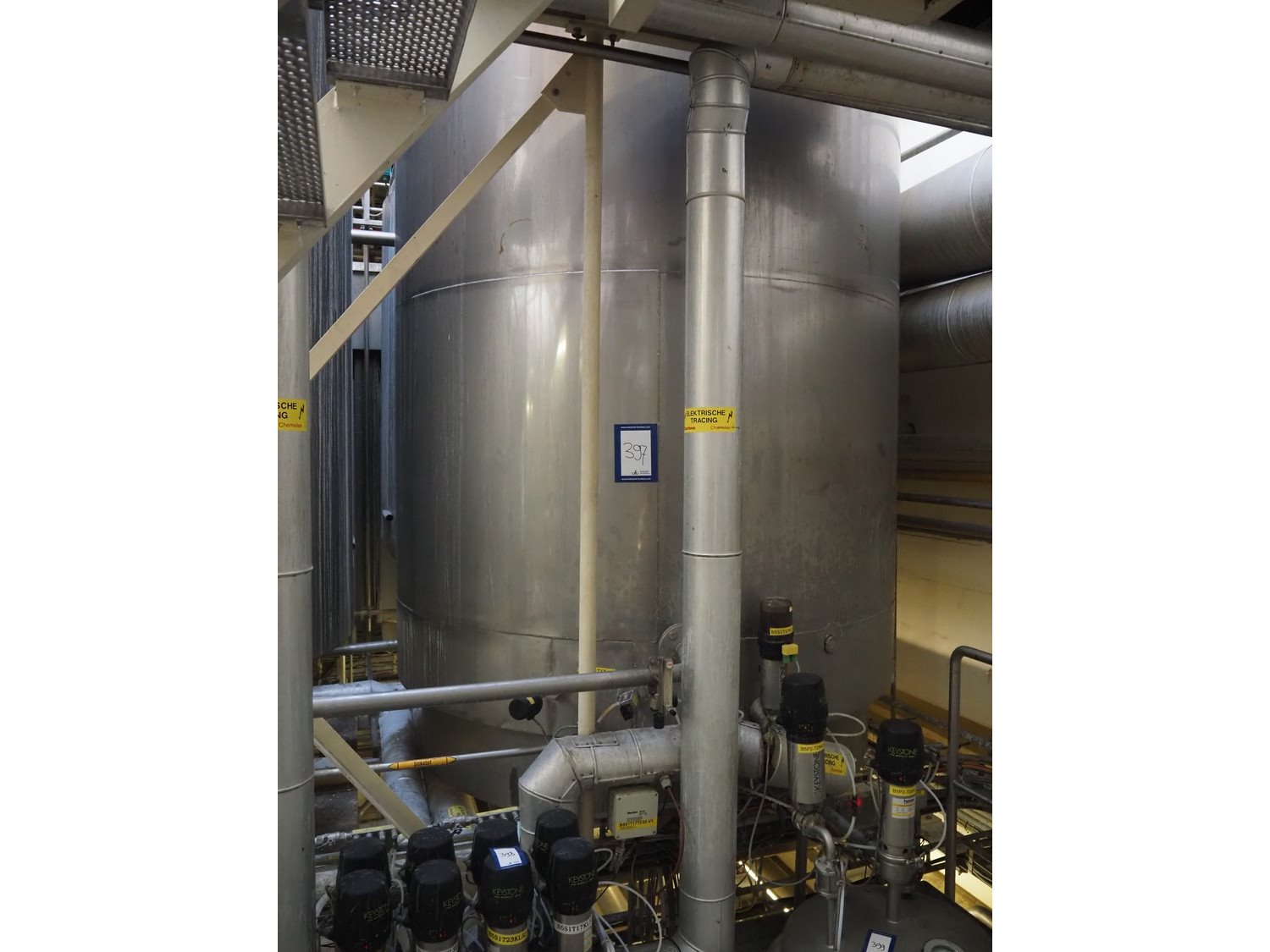 S/s double jacketed tank with agitator, dimensions: Ø 1750 mm x 4000 mm. Including various valves. Kavel locatie: P. Stuyvesantweg 1, 8937 AC Leeuwarden, Nederland