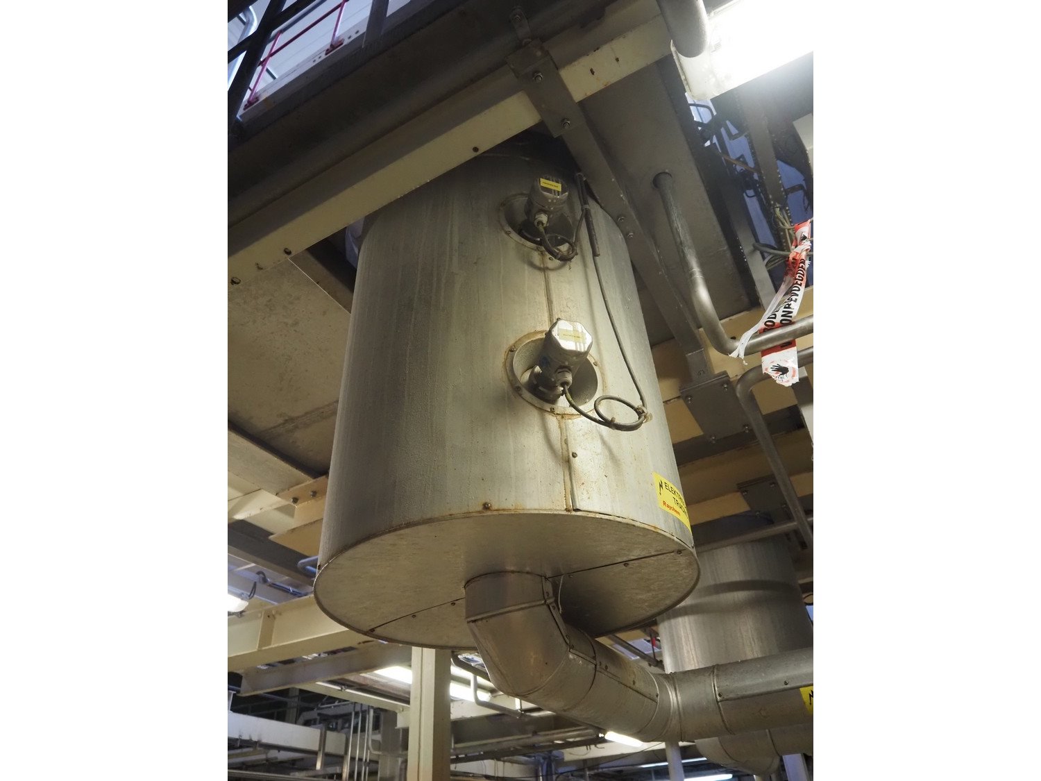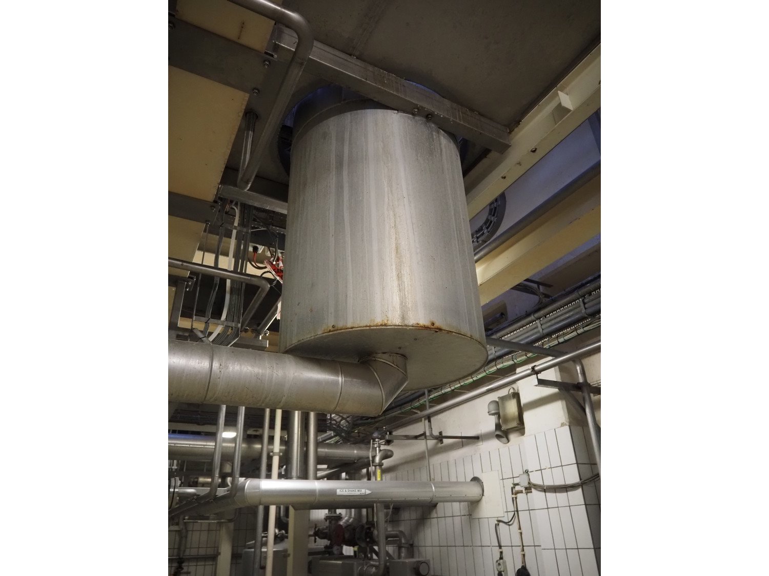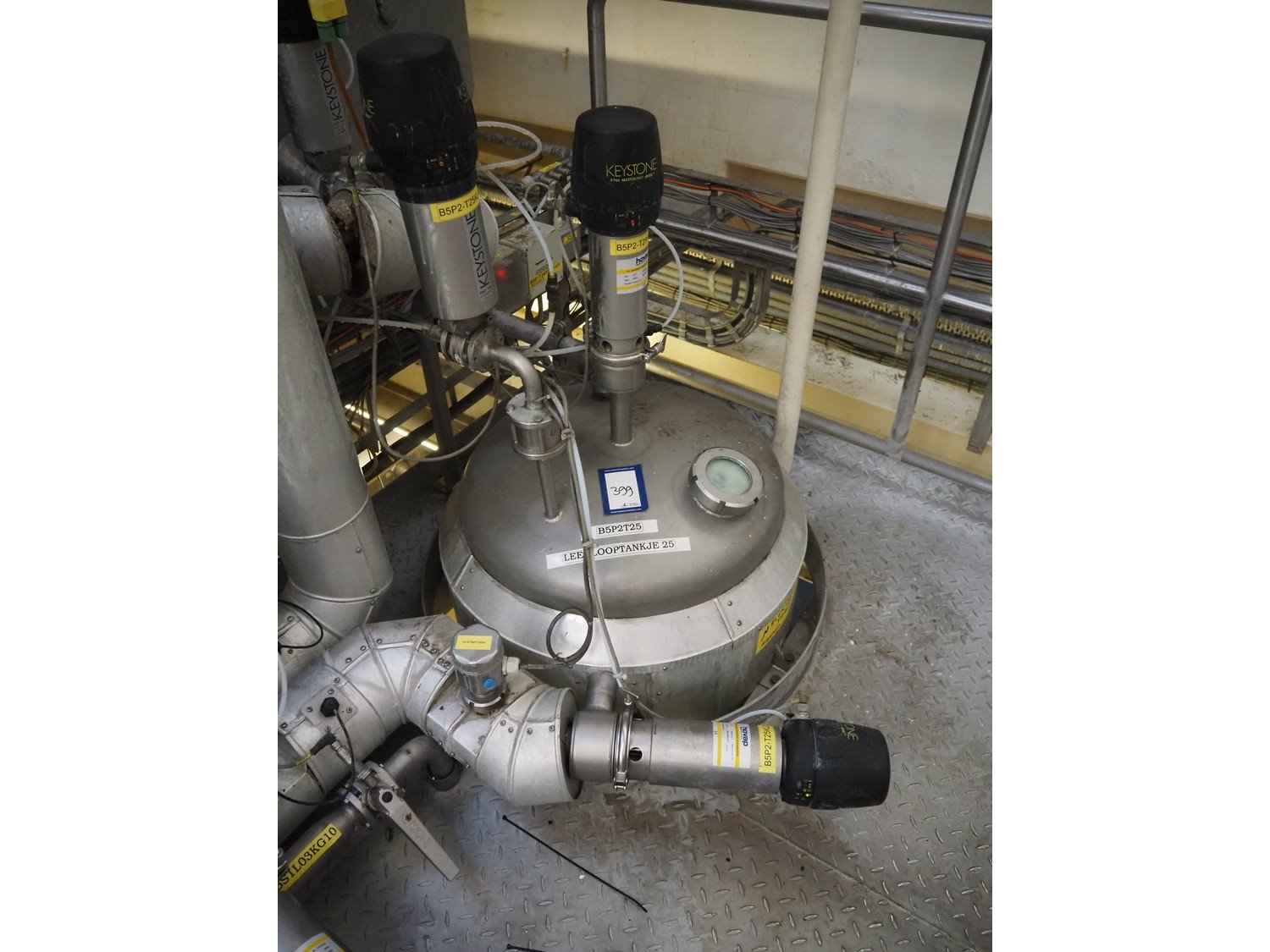 S/s double jacketed discharge tank, dimensions: Ø 650 mm x 1400 mm. Including various valves. Kavel locatie: P. Stuyvesantweg 1, 8937 AC Leeuwarden, Nederland