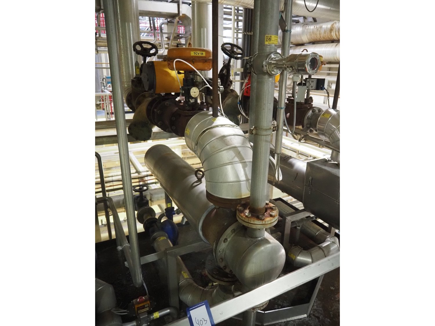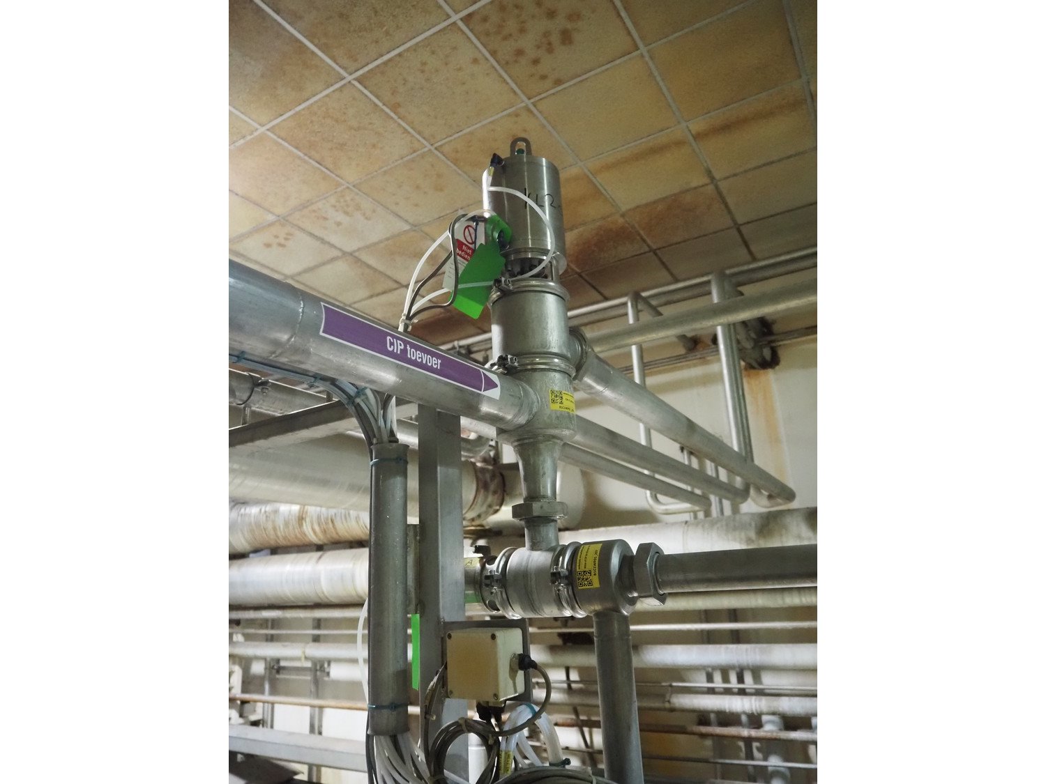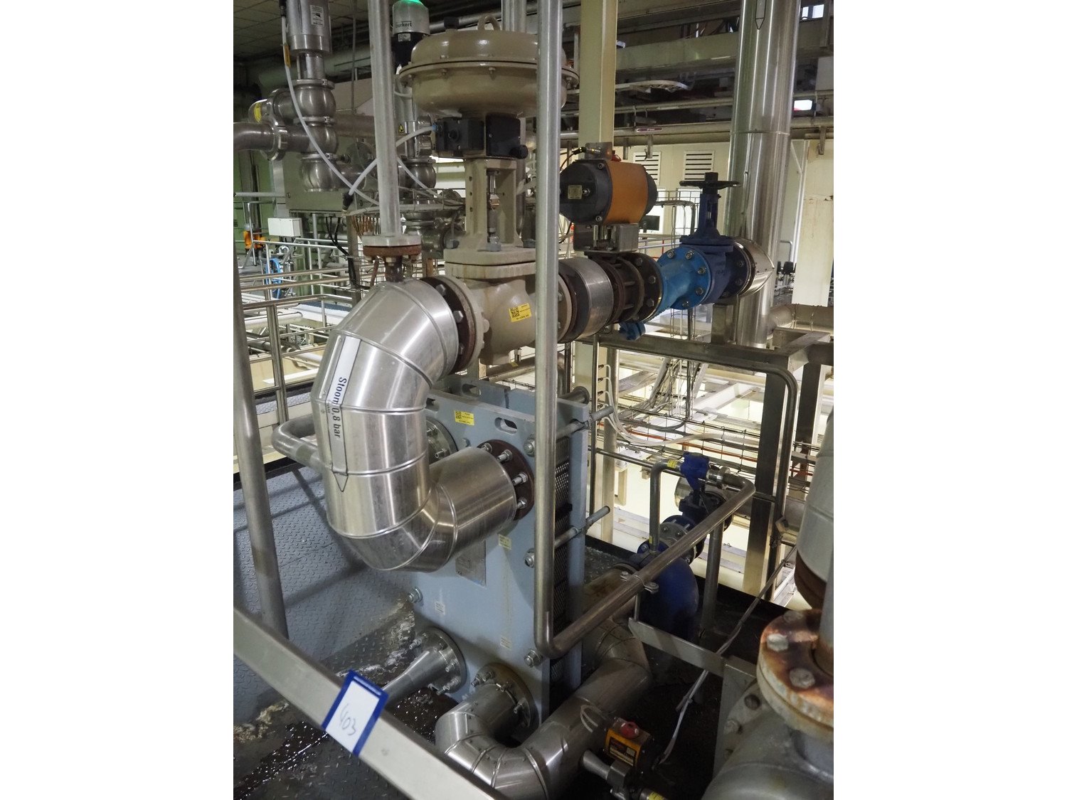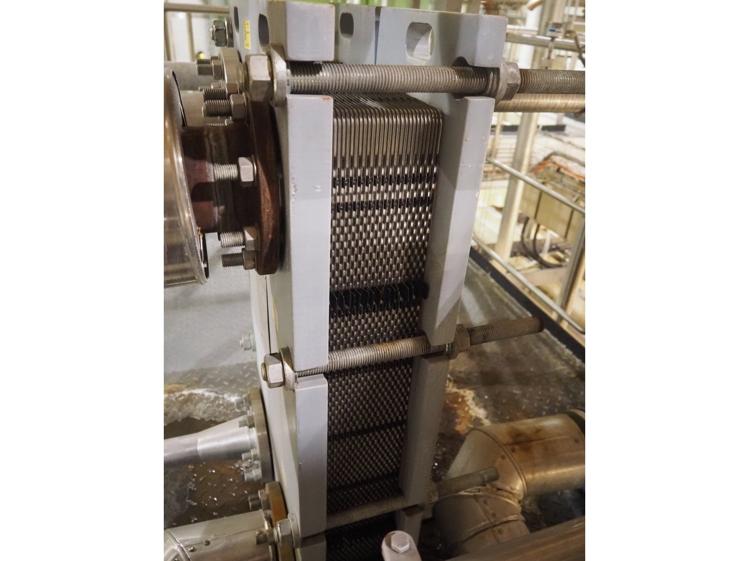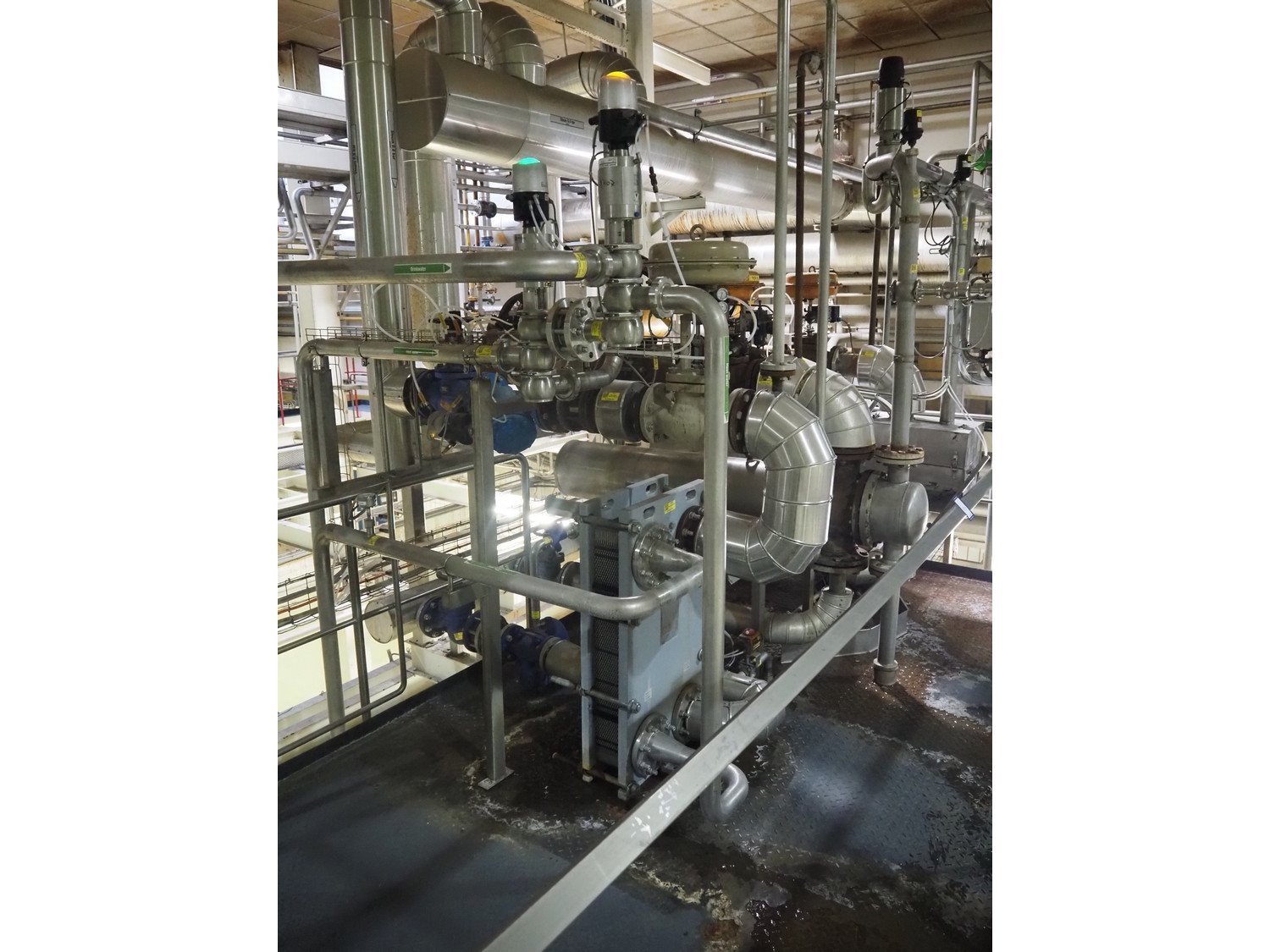 Heating unit for CIP installation, consisting of: API Schmidt Bretten GmbH & Co. KG plate heat exchanger, 2 tubular heat exchangers, various Bürkert, Hovap, Honeywell and Samson valves, total dimensions: 3000 mm x 2100 mm x 3200 mm. Kavel locatie: P. Stuyvesantweg 1, 8937 AC Leeuwarden, Nederland