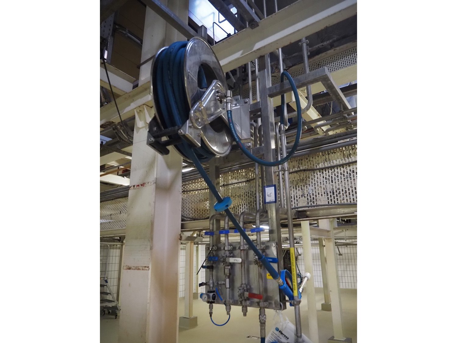 S/s frame with Elpress s/s hose reel and foam mixing station, model hose reel: EHR25/35, serial number: 44 2016, max 200 bar, max 90 °C, total dimensions: 1000 mm x 500 mm x 1500 mm. Kavel locatie: P. Stuyvesantweg 1, 8937 AC Leeuwarden, Nederland