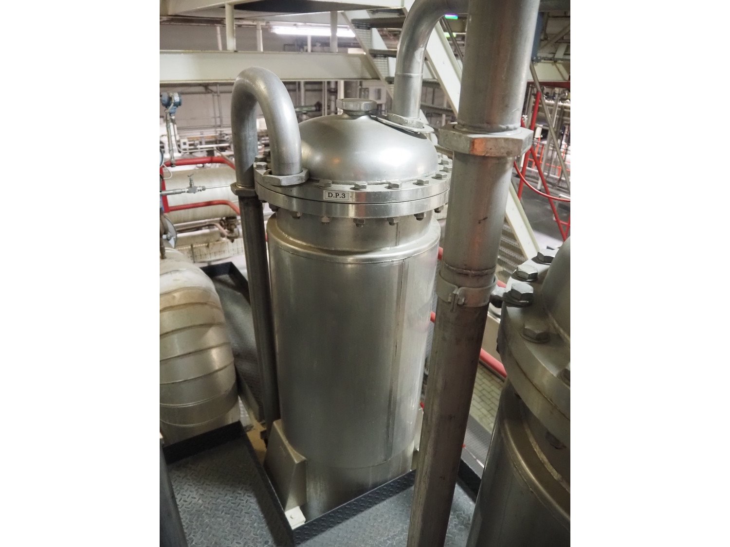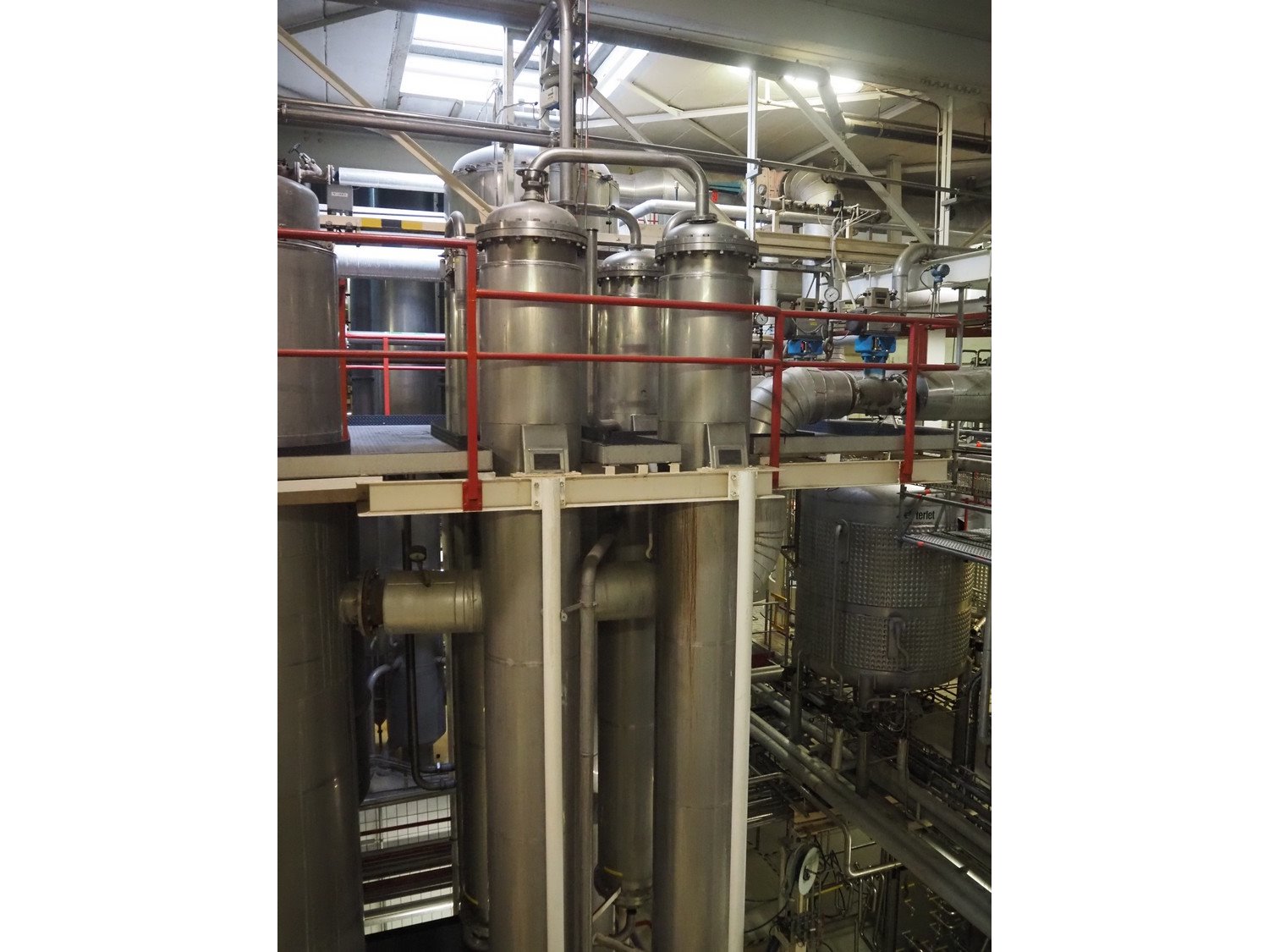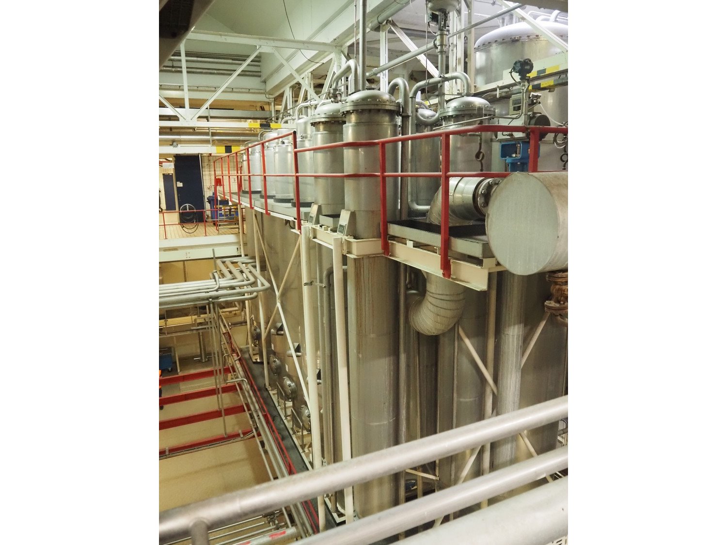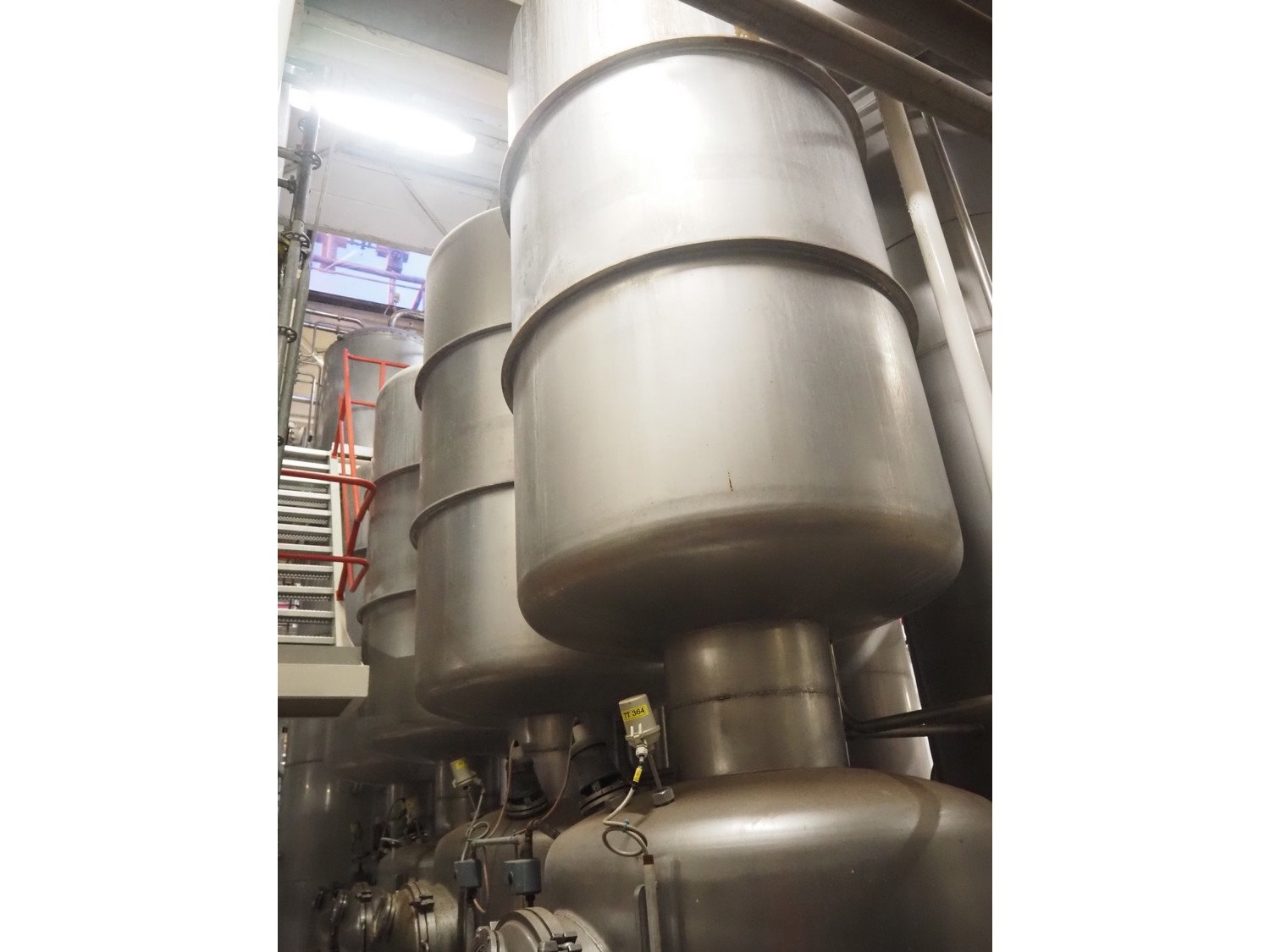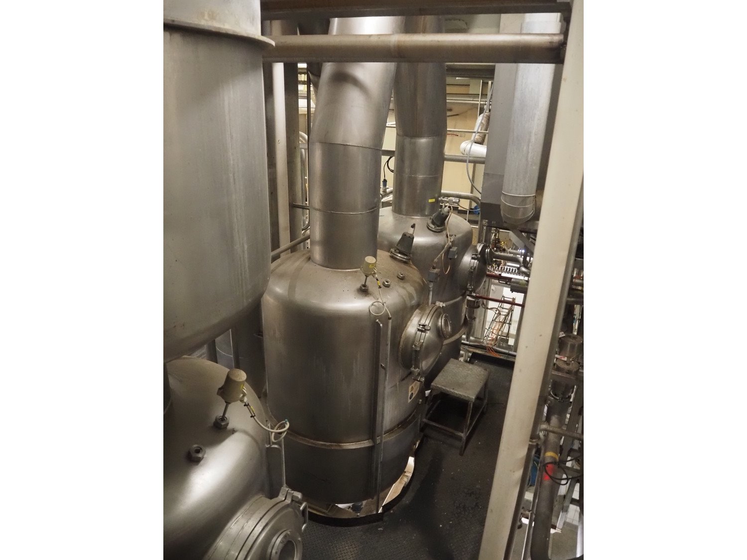 This Van der Ploeg thermal vapor recompression evaporator is a 5-stage TVR evaporator with an “open” type condenser. It has a capacity of approximately 40–50 m³/h (40–48), with a water evaporation rate of approximately 25–30 m³/h. This evaporator has a steam consumption ratio of approximately 0.23 (including pasteurizer) and is equipped with several holding tubes (hot holders), allowing different combinations with regard to residence time. Years of operation: mid-1960s to 2021. Kavel locatie: P. Stuyvesantweg 1, 8937 AC Leeuwarden, Nederland