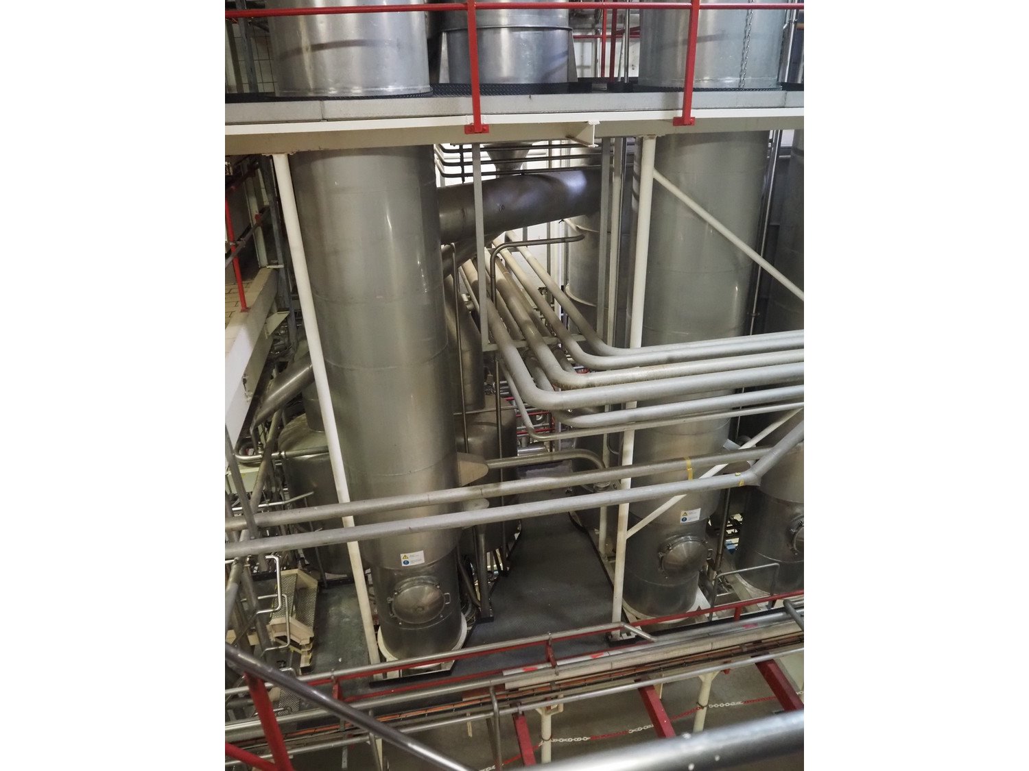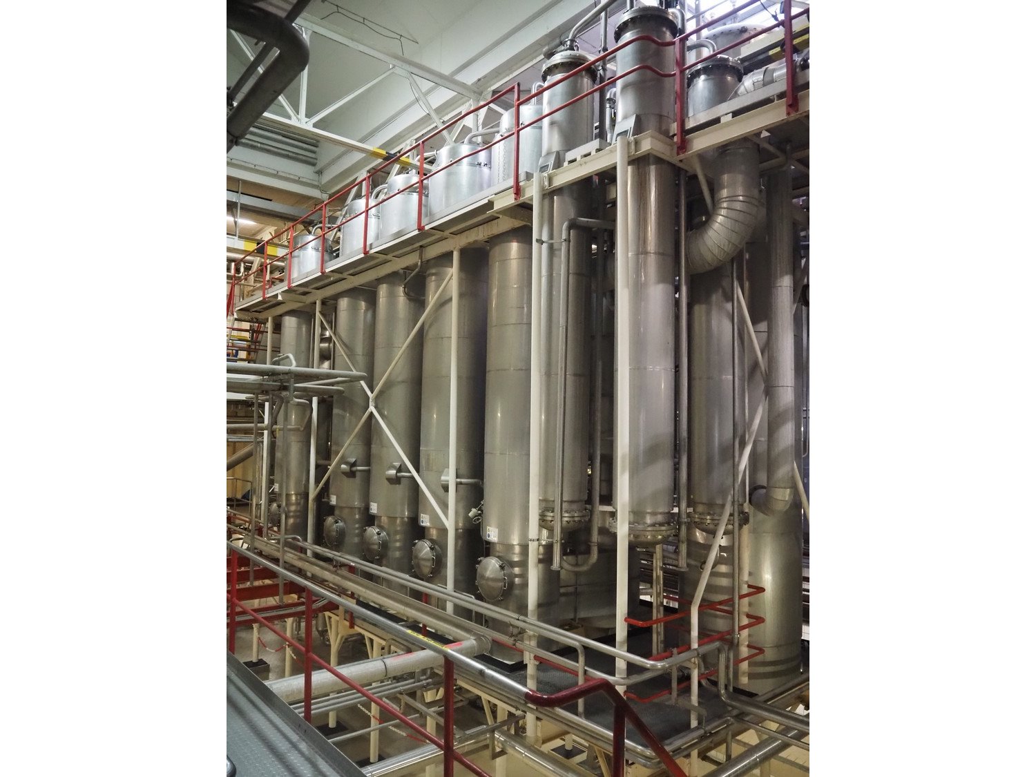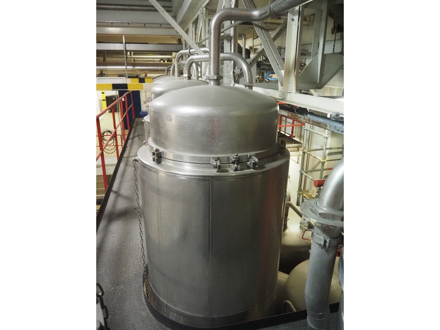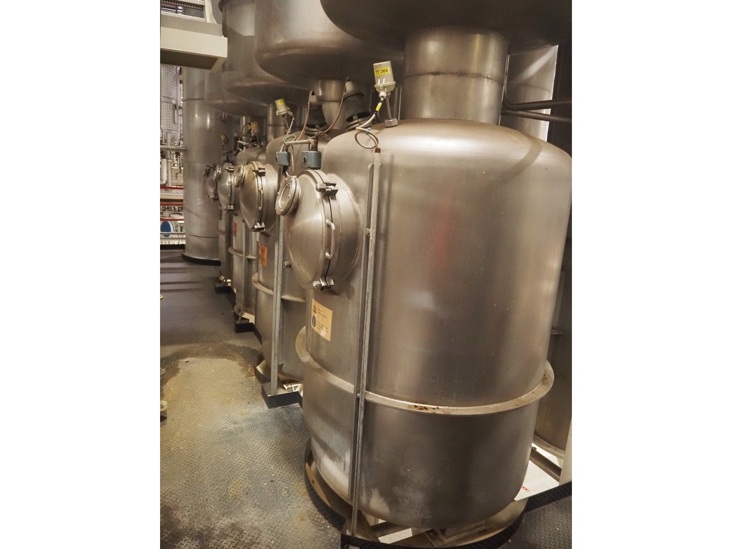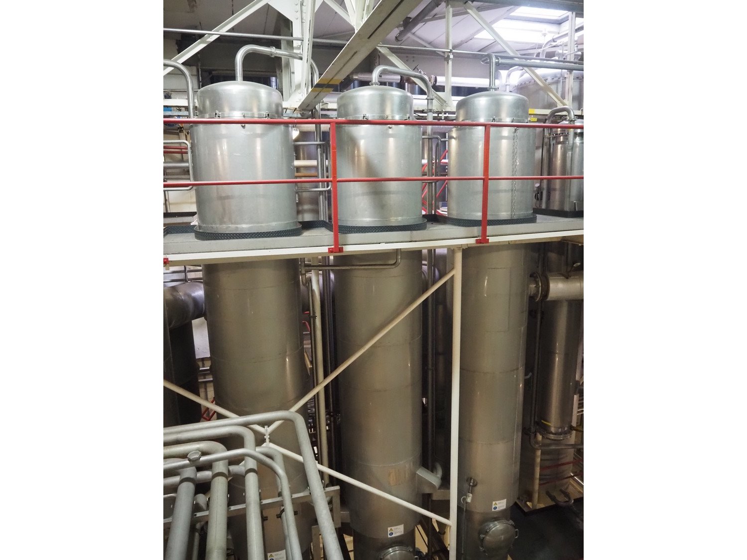 This Van der Ploeg thermal vapor recompression evaporator is a 5-stage TVR evaporator with an “open” type condenser. It has a capacity of approximately 40–50 m³/h (40–48), with a water evaporation rate of approximately 25–30 m³/h. This evaporator has a steam consumption ratio of approximately 0.23 (including pasteurizer) and is equipped with several holding tubes (hot holders), allowing different combinations with regard to residence time. Years of operation: mid-1960s to 2021. Kavel locatie: P. Stuyvesantweg 1, 8937 AC Leeuwarden, Nederland