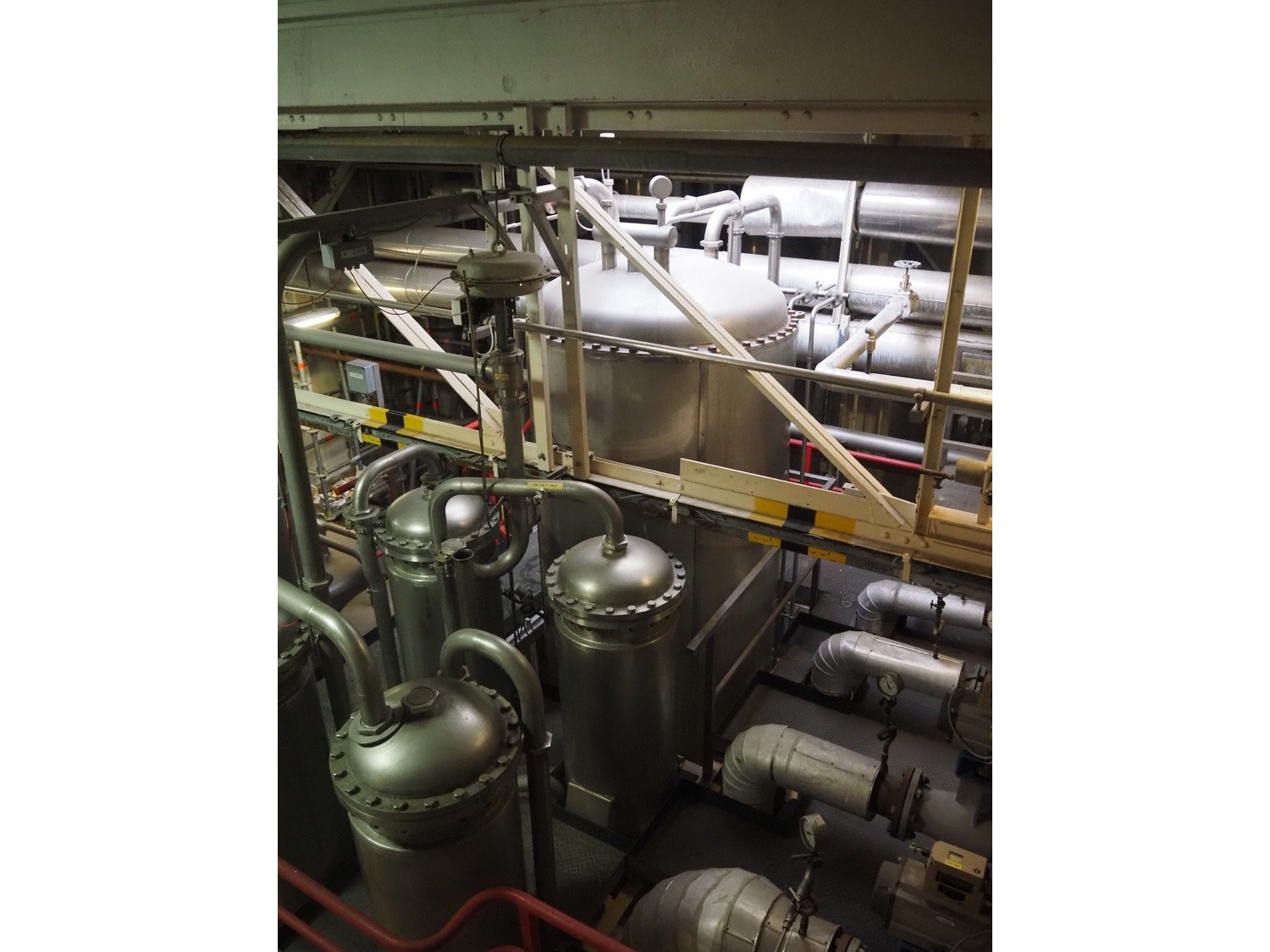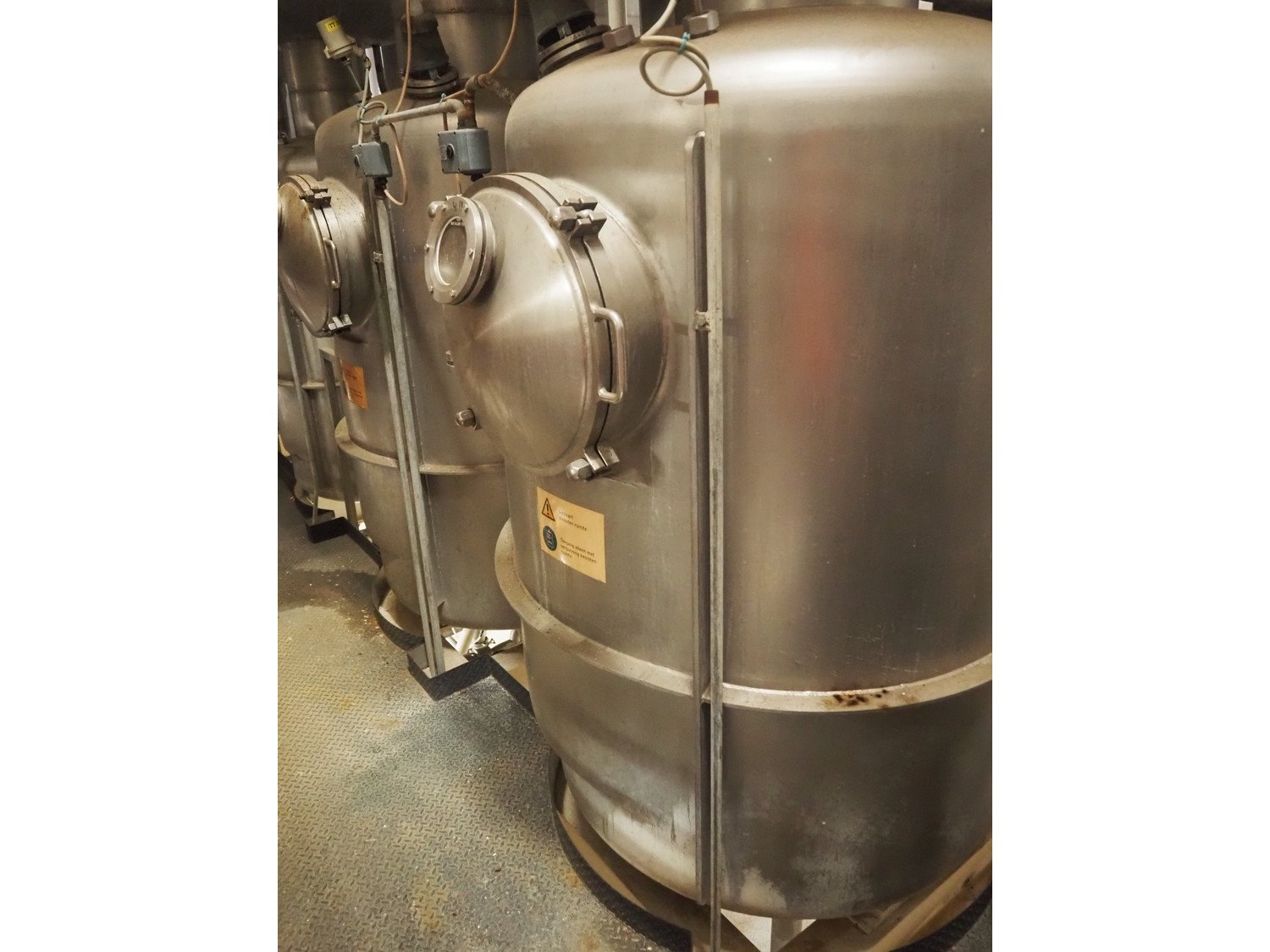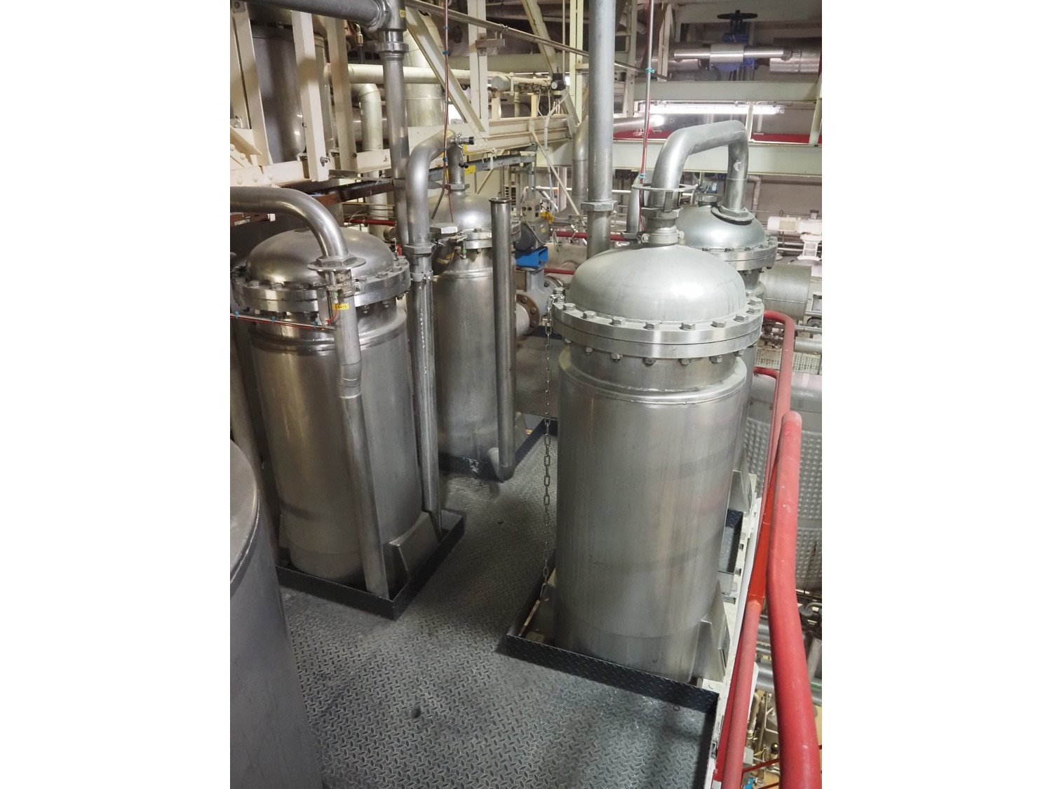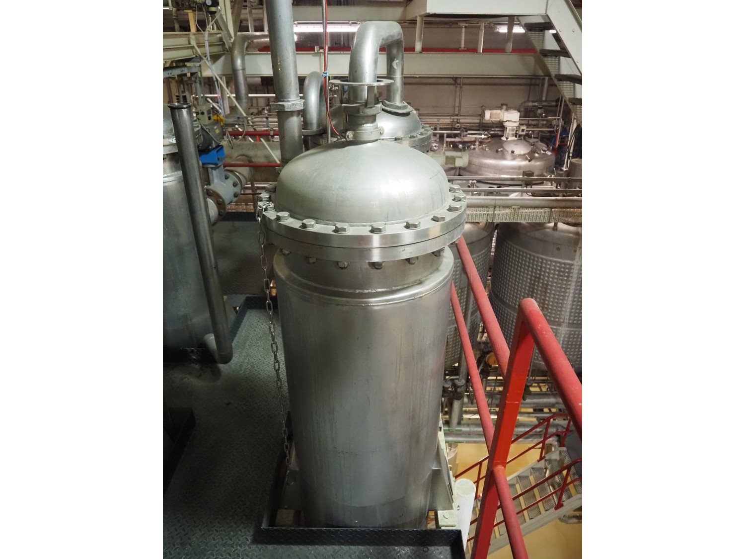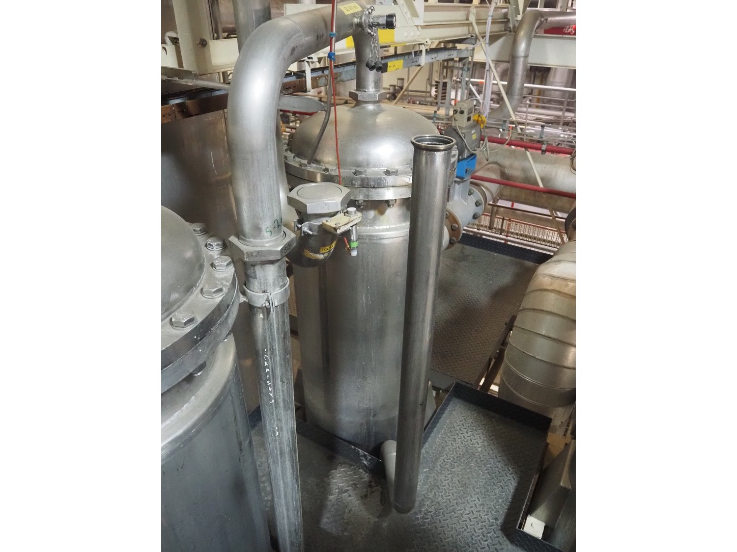 This Van der Ploeg thermal vapor recompression evaporator is a 5-stage TVR evaporator with an “open” type condenser. It has a capacity of approximately 40–50 m³/h (40–48), with a water evaporation rate of approximately 25–30 m³/h. This evaporator has a steam consumption ratio of approximately 0.23 (including pasteurizer) and is equipped with several holding tubes (hot holders), allowing different combinations with regard to residence time. Years of operation: mid-1960s to 2021. Kavel locatie: P. Stuyvesantweg 1, 8937 AC Leeuwarden, Nederland