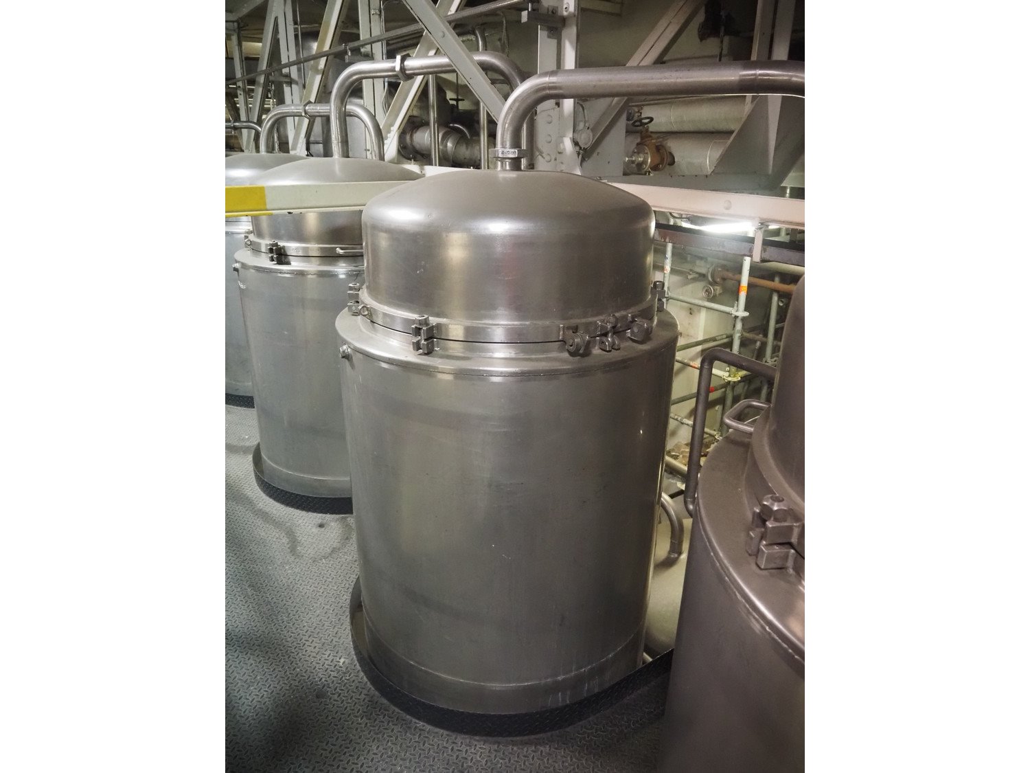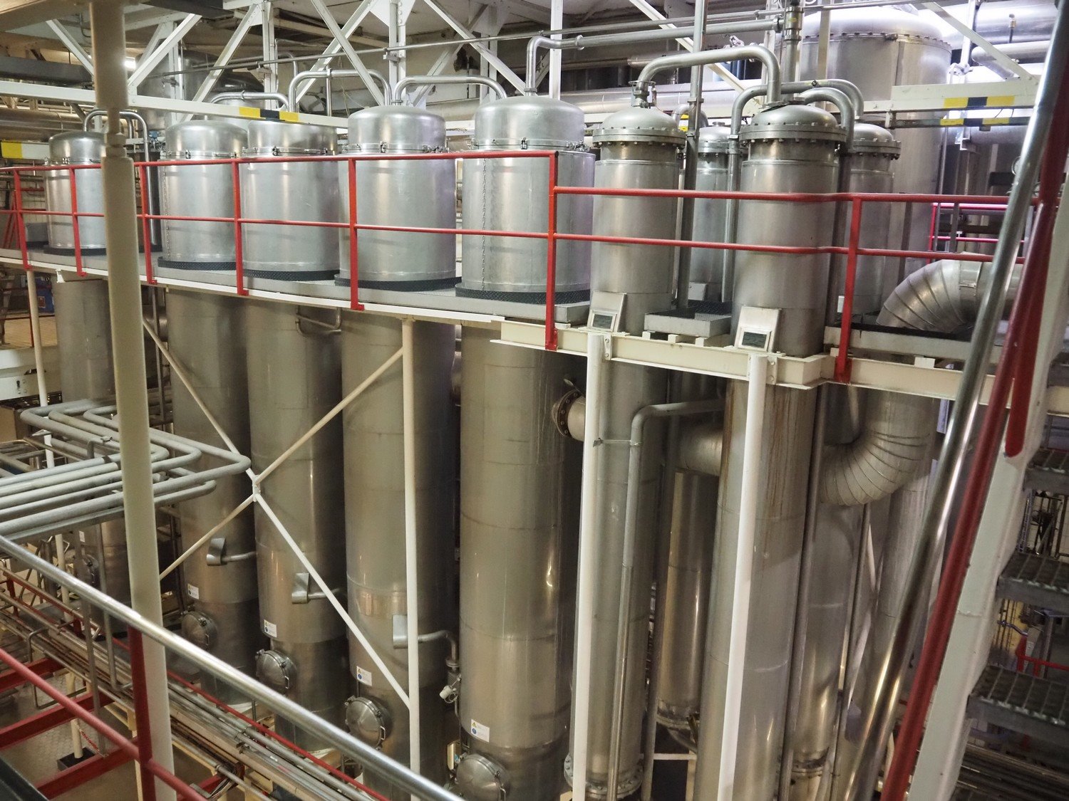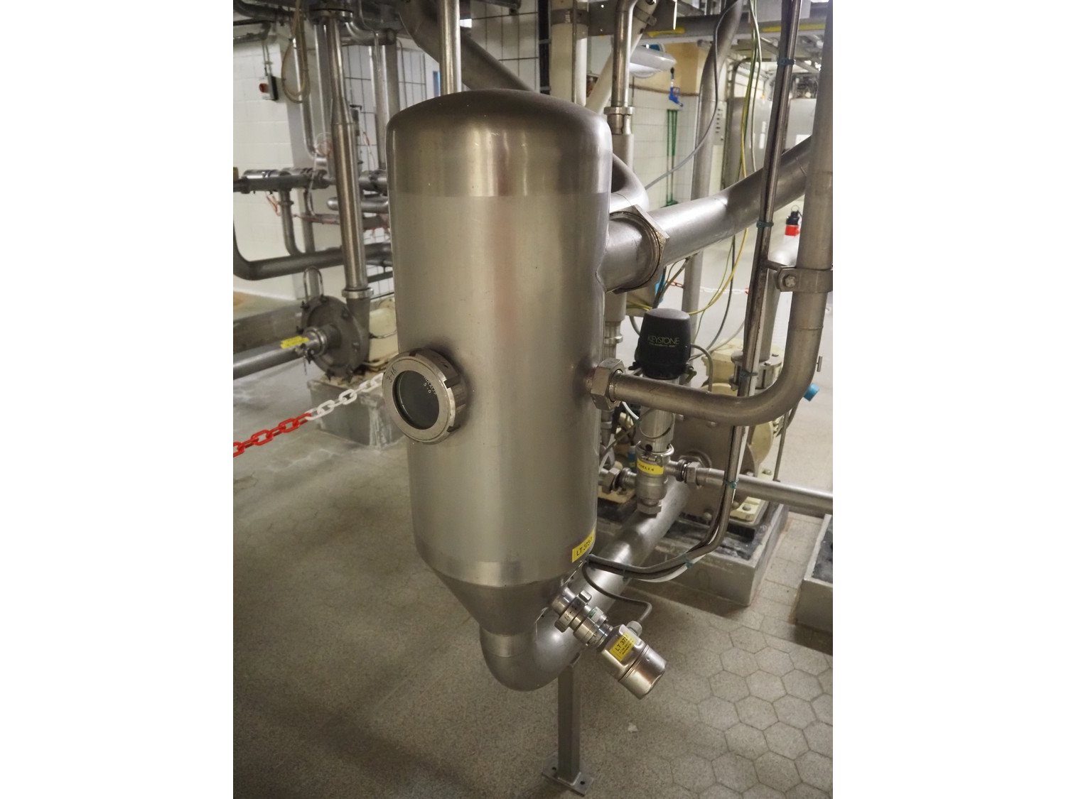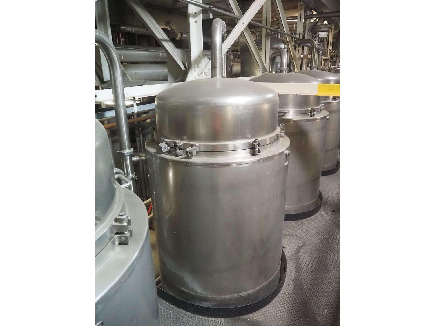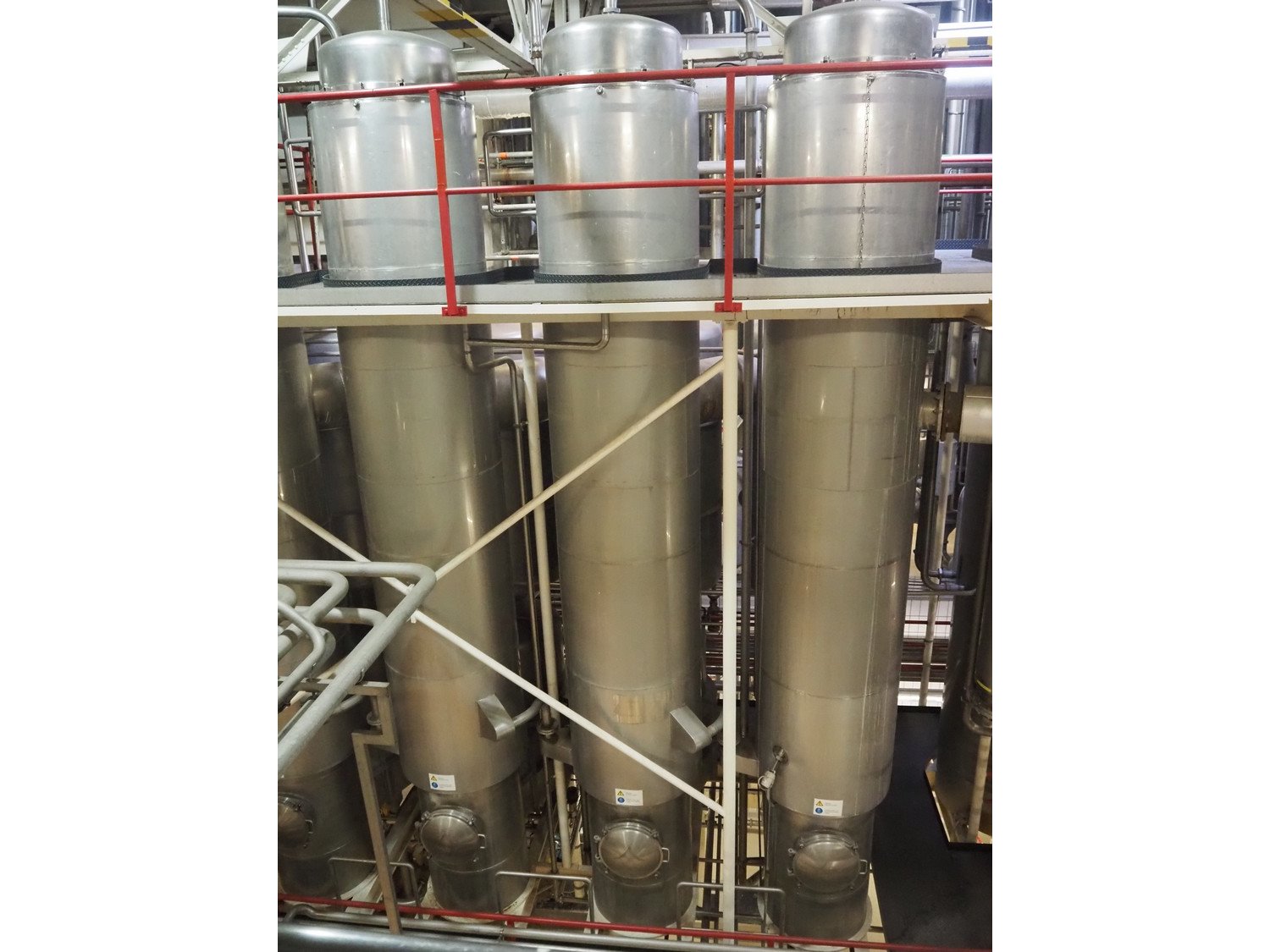 This Van der Ploeg thermal vapor recompression evaporator is a 5-stage TVR evaporator with an “open” type condenser. It has a capacity of approximately 40–50 m³/h (40–48), with a water evaporation rate of approximately 25–30 m³/h. This evaporator has a steam consumption ratio of approximately 0.23 (including pasteurizer) and is equipped with several holding tubes (hot holders), allowing different combinations with regard to residence time. Years of operation: mid-1960s to 2021. Kavel locatie: P. Stuyvesantweg 1, 8937 AC Leeuwarden, Nederland