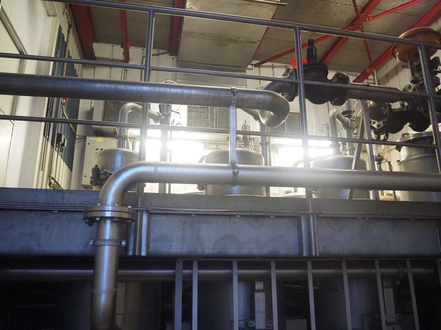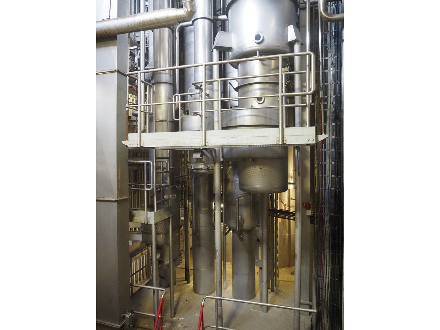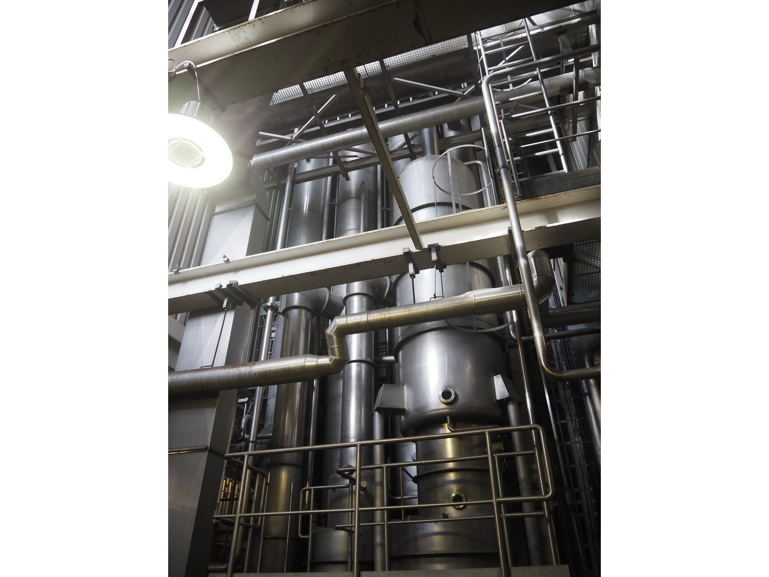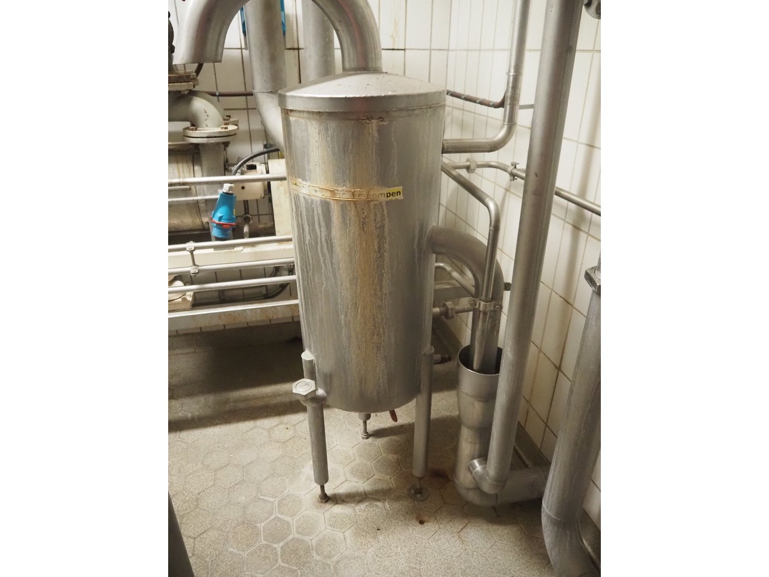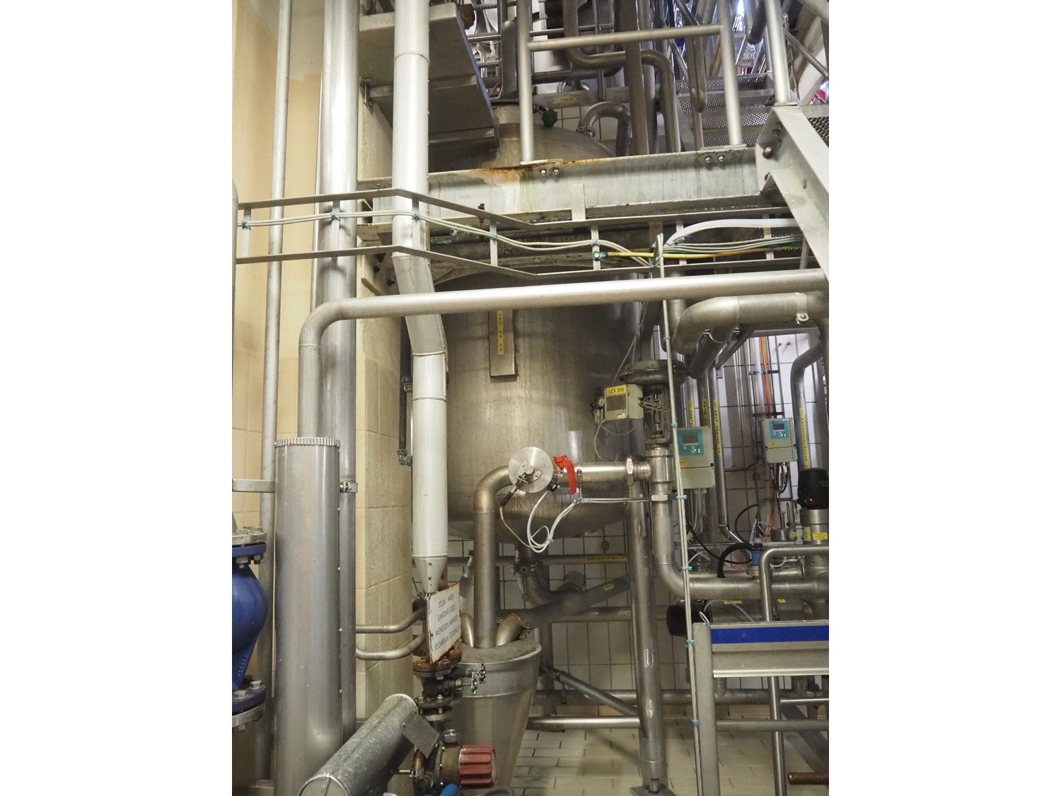 This Scheffer thermal vapor recompression evaporator is a 6-stage TVR evaporator with a closed condenser and a capacity of approximately 25 m³/h (24–26), with a water evaporation rate of approximately 17.5 m³/h. The evaporator is equipped with a thermocompressor from the 3rd to the 1st stage and has a steam consumption ratio of 0.18 (including pasteurizer). It is also fitted with several holding tubes (hot holders), along with two coupling panels to enable different combinations in terms of residence time. Years of operation: mid-1990s to 2021. Kavel locatie: P. Stuyvesantweg 1, 8937 AC Leeuwarden, Nederland