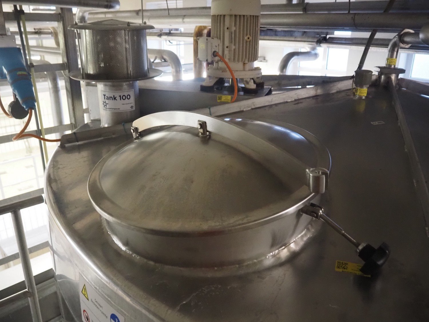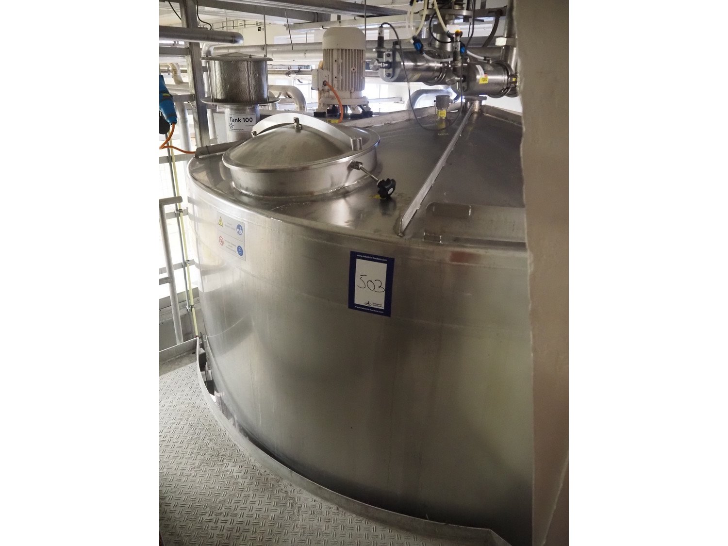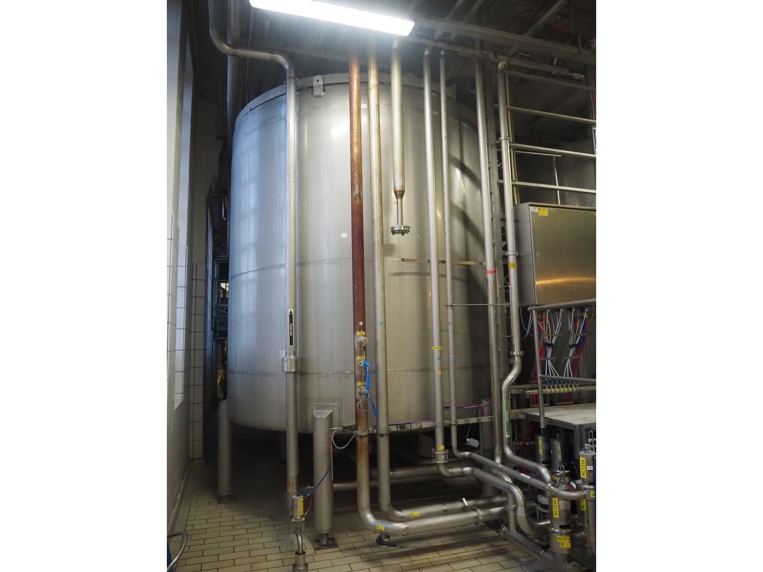 S/s double jacketed tank with agitator, dimensions: ø 3200 mm x 5000 mm. Kavel locatie: P. Stuyvesantweg 1, 8937 AC Leeuwarden, Nederland