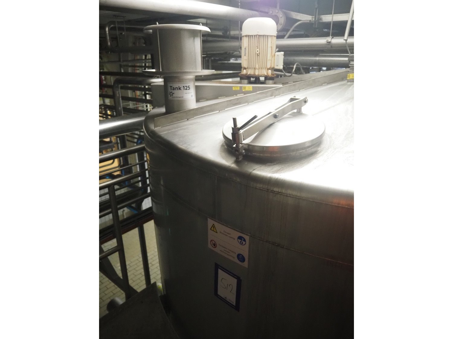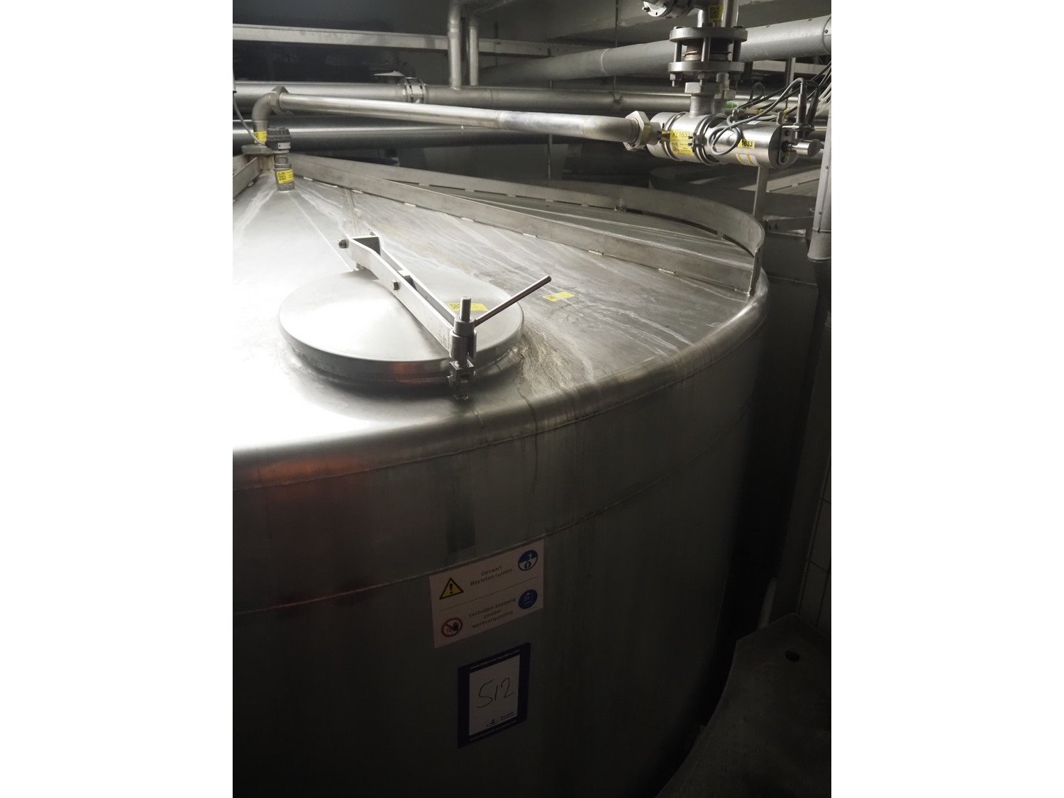 S/s double jacketed tank with agitator, dimensions: ø 3200 mm x 5000 mm. Kavel locatie: P. Stuyvesantweg 1, 8937 AC Leeuwarden, Nederland