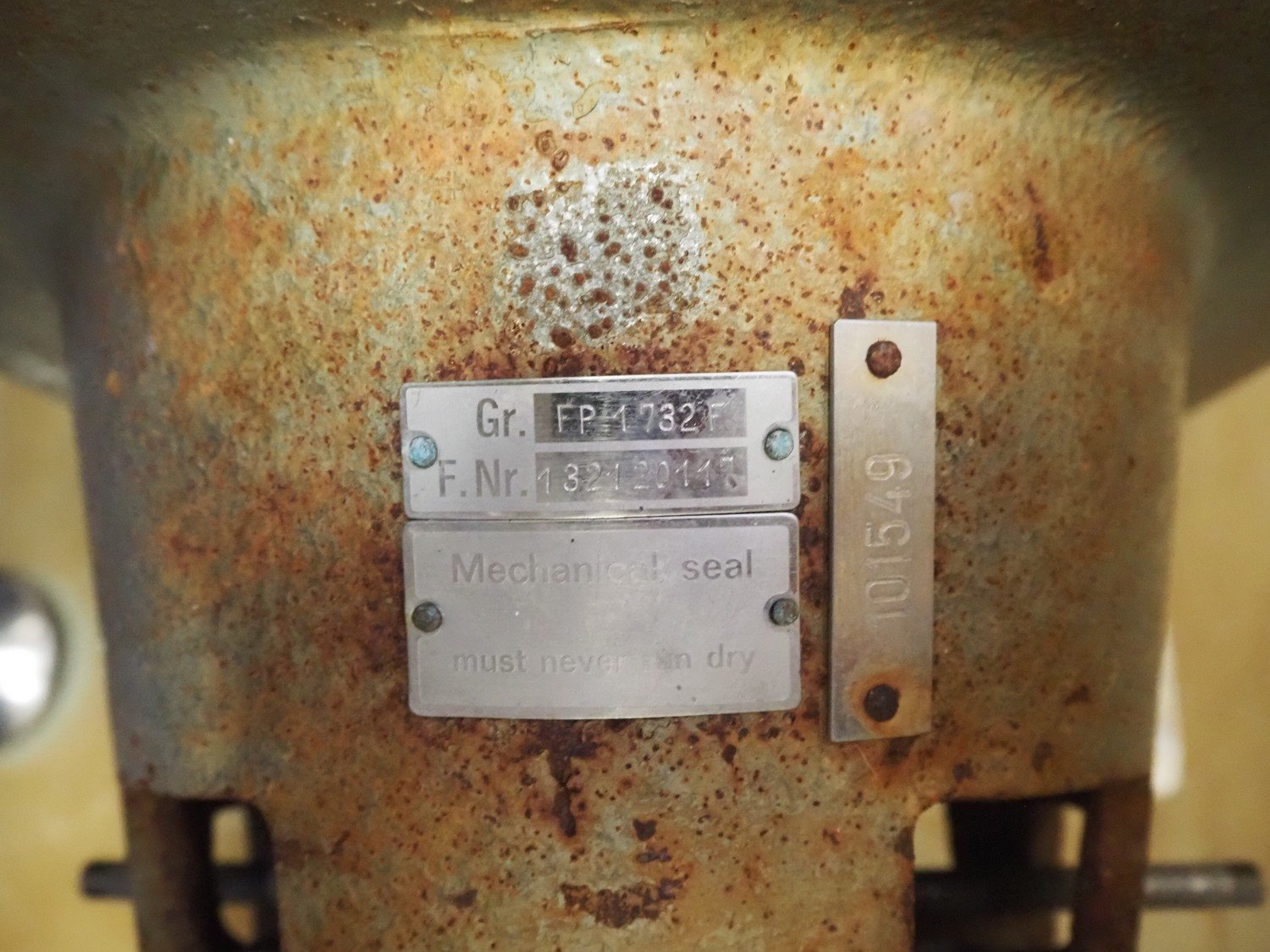 Fristam centrifugal pump, type: FP 1732F, dimensions: 800 mm x 450 mm x 530 mm. Kavel locatie: P. Stuyvesantweg 1, 8937 AC Leeuwarden, Nederland