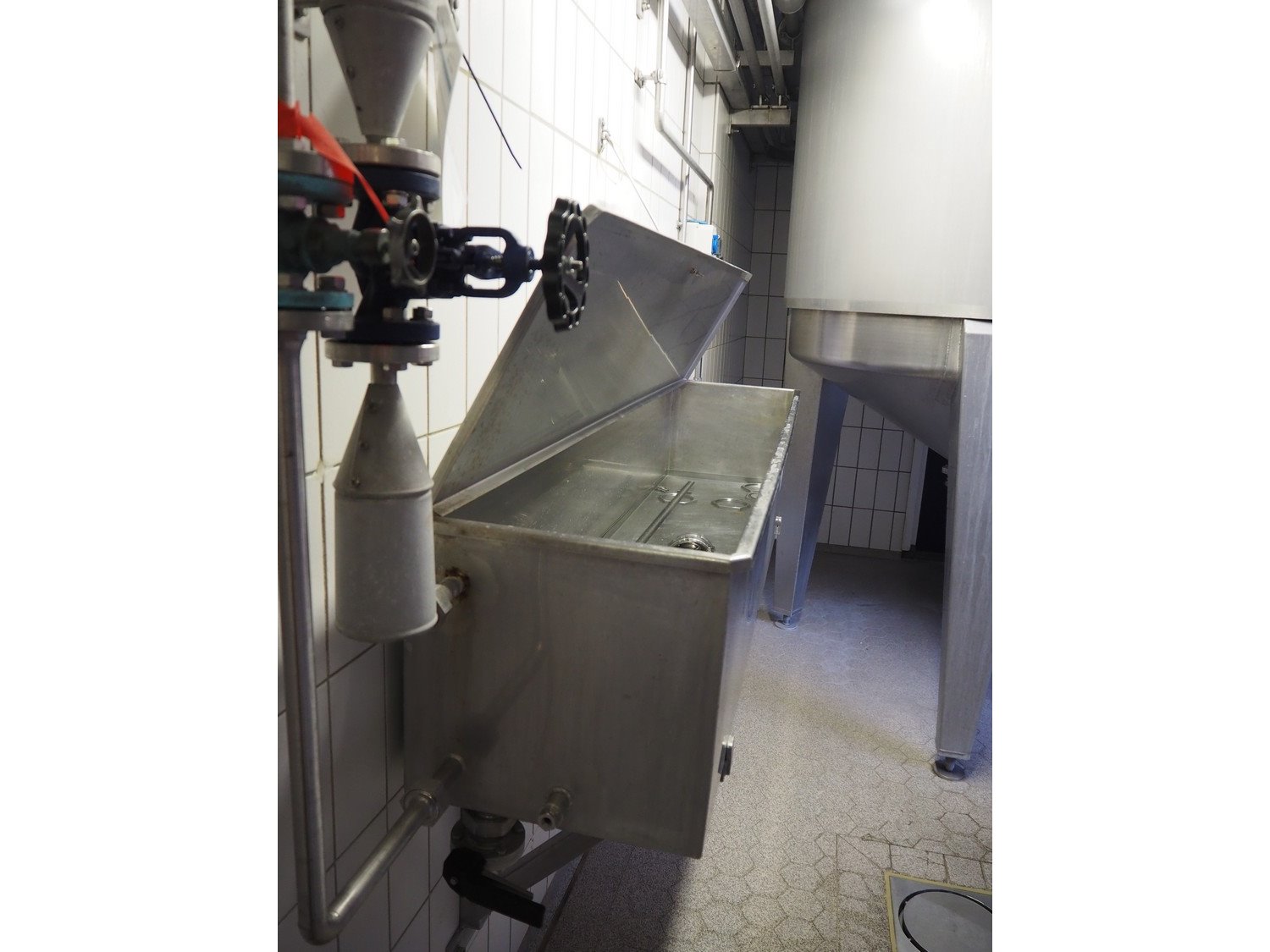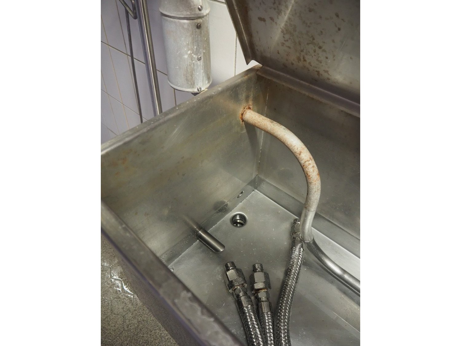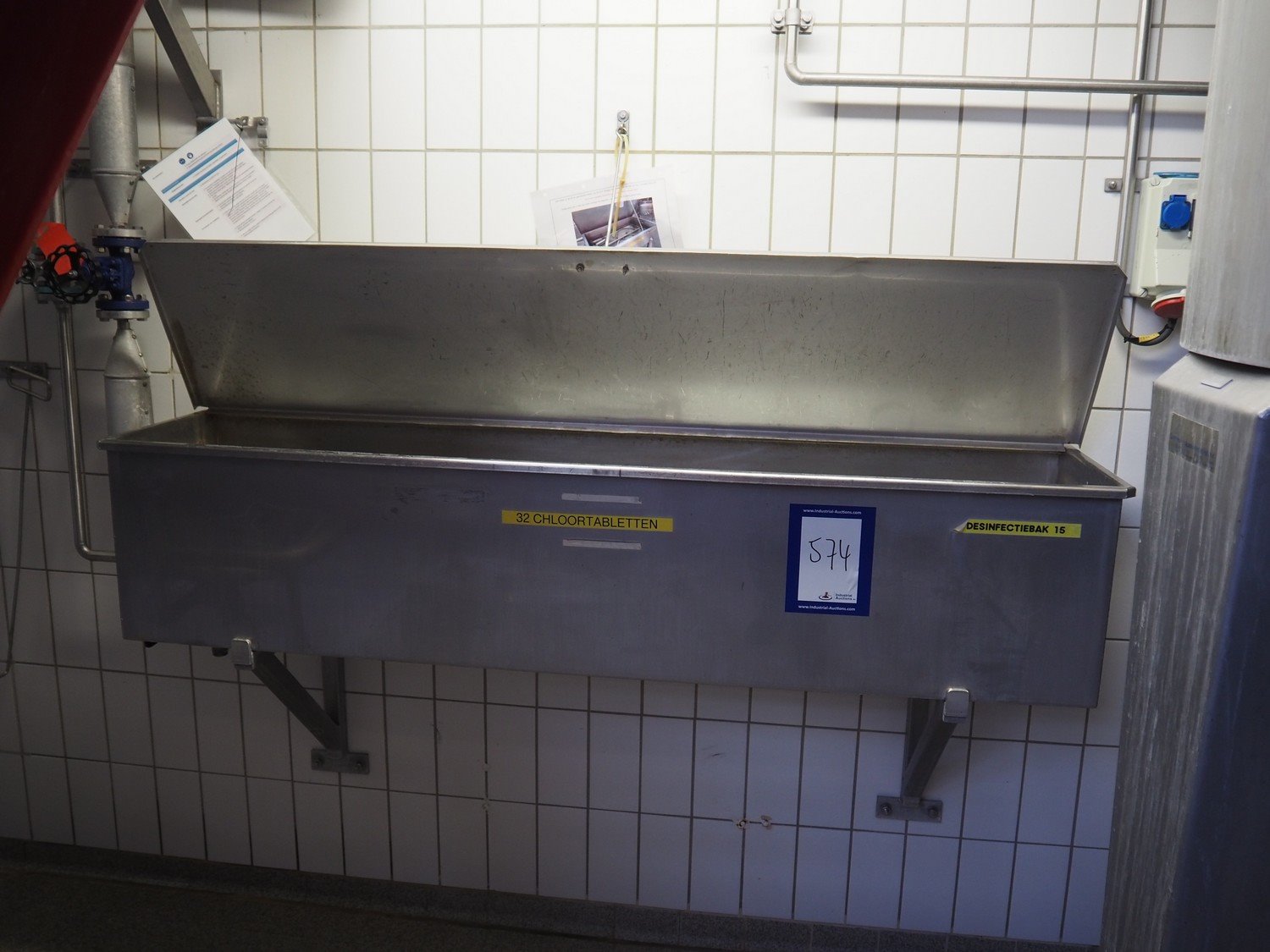 S/s wall mounted disinfection tub, dimensions: 1850 mm x 400 mm x 400 mm. Kavel locatie: P. Stuyvesantweg 1, 8937 AC Leeuwarden, Nederland