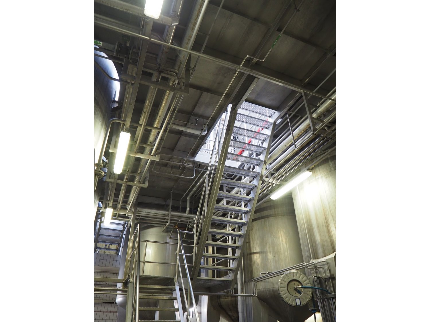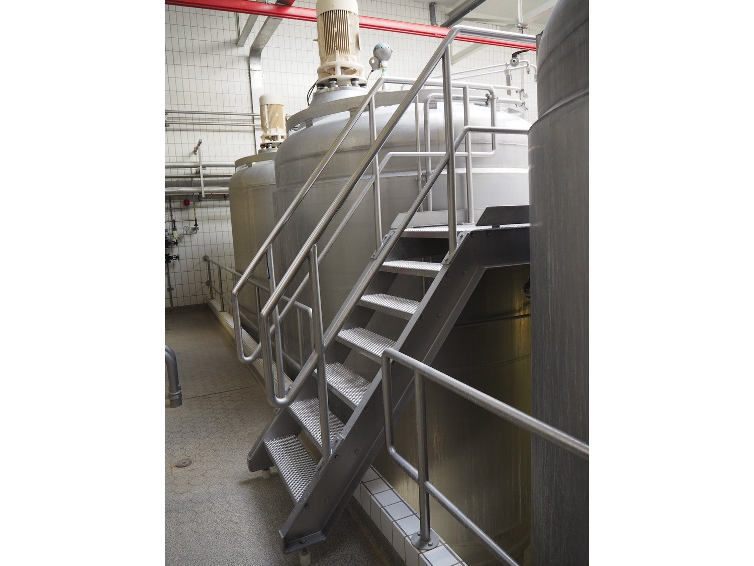S/s platform with various stairs, working height: 5600 mm, total dimensions: 15500 mm x 5600 mm x 6600 mm. Kavel locatie: P. Stuyvesantweg 1, 8937 AC Leeuwarden, Nederland