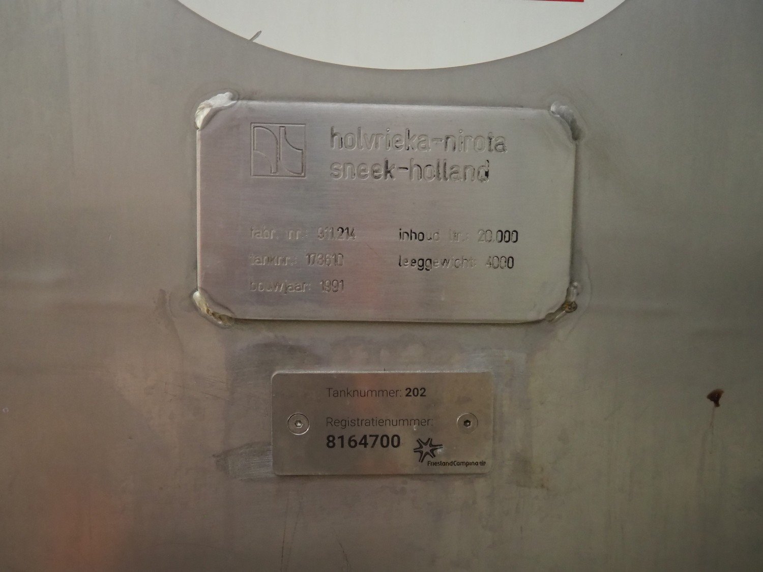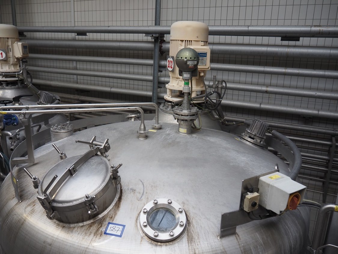 Holvrieka-Nirota s/s double jacketed tank with agitator, fabrication number: 911.214, year of construction: 1991, volume: 20000 litres, empty weight: 4000 kg, dimensions: ø 2650 mm x 7600 mm. Kavel locatie: P. Stuyvesantweg 1, 8937 AC Leeuwarden, Nederland