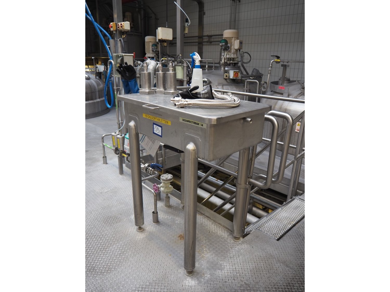 S/s disinfection tub, dimensions: 600 mm x 1000 mm x 1100 mm. Kavel locatie: P. Stuyvesantweg 1, 8937 AC Leeuwarden, Nederland