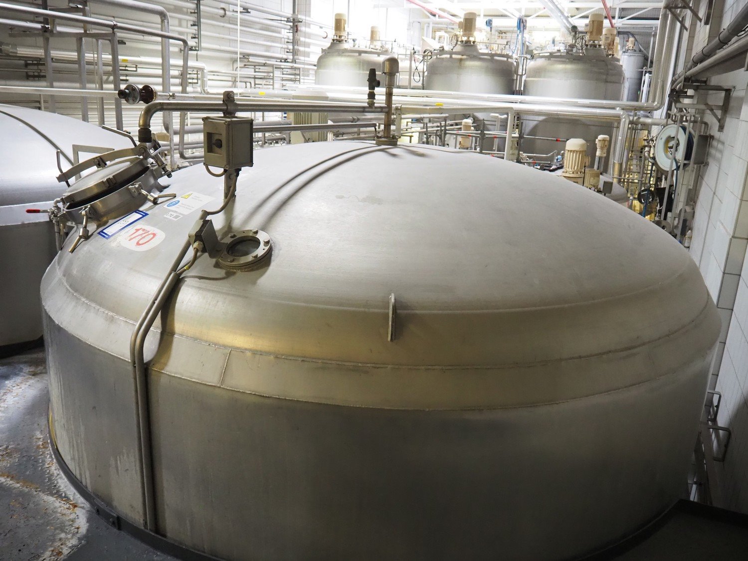 S/s double jacketed tank with agitator, dimensions: ø 3400 mm x 5600 mm. Kavel locatie: P. Stuyvesantweg 1, 8937 AC Leeuwarden, Nederland