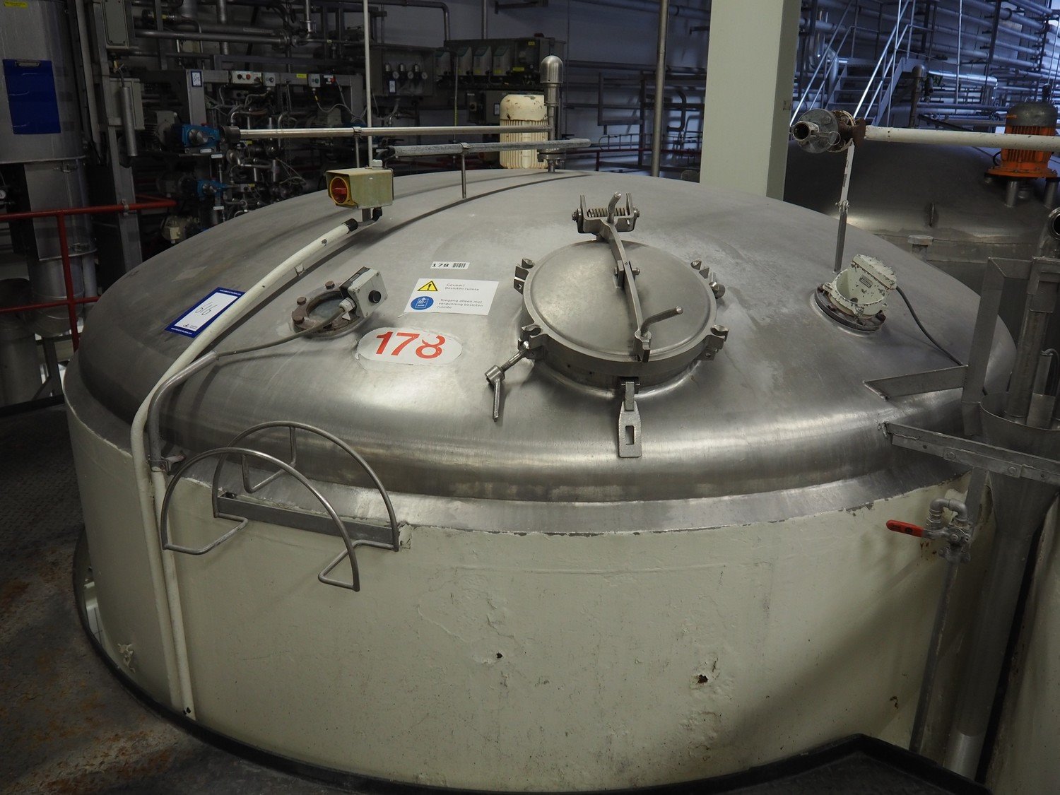 S/s double jacketed tank with agitator, dimensions: ø 3400 mm x 5650 mm. Kavel locatie: P. Stuyvesantweg 1, 8937 AC Leeuwarden, Nederland