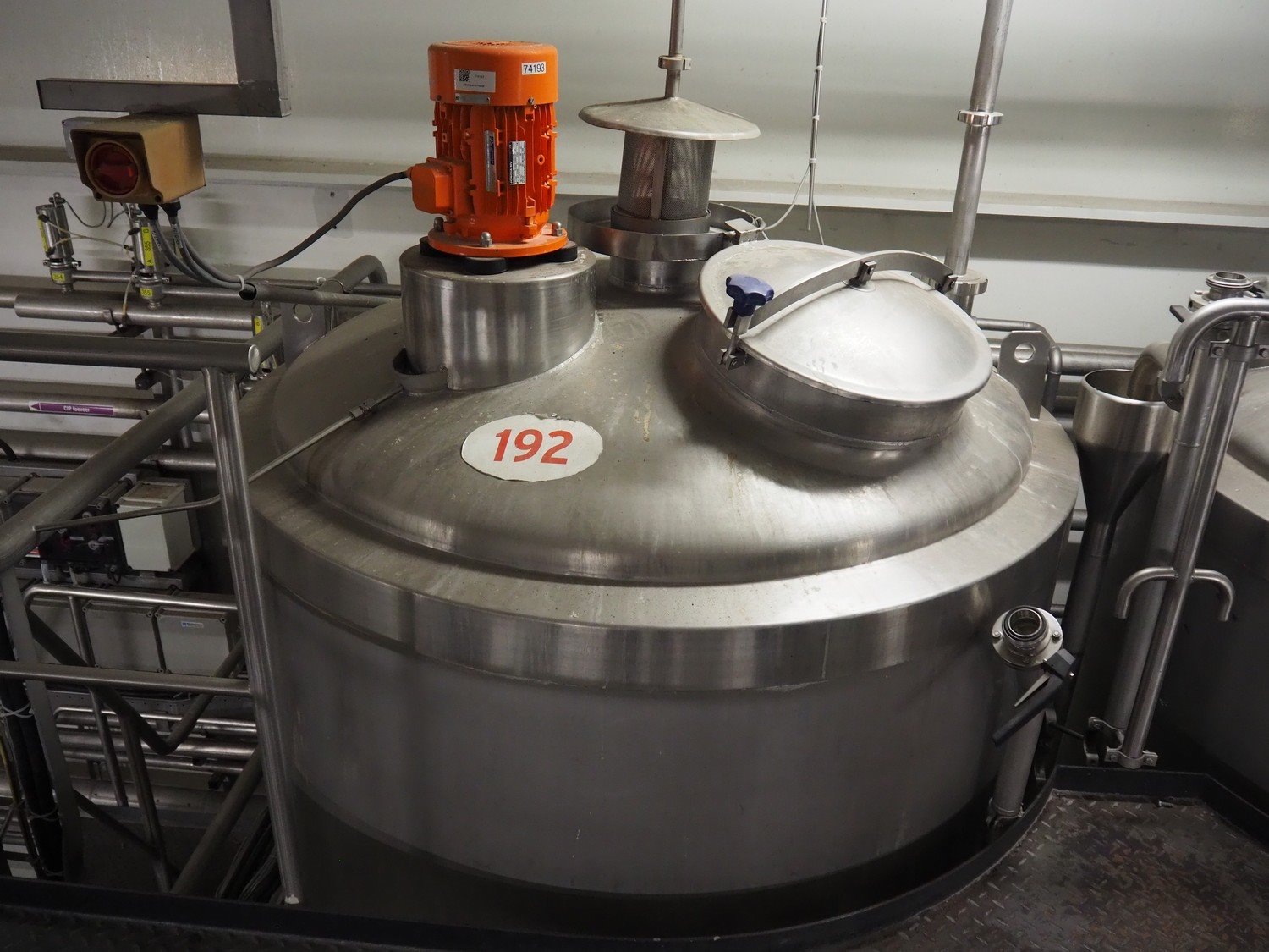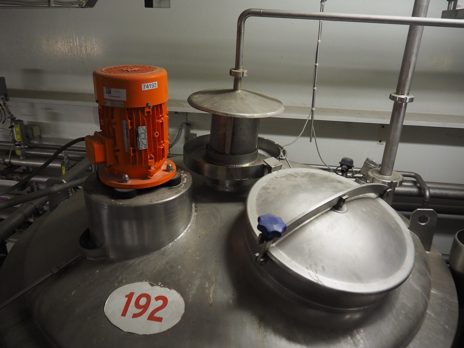 S/s double jacketed tank with agitator, dimensions: ø 1800 mm x 4300 mm. Kavel locatie: P. Stuyvesantweg 1, 8937 AC Leeuwarden, Nederland