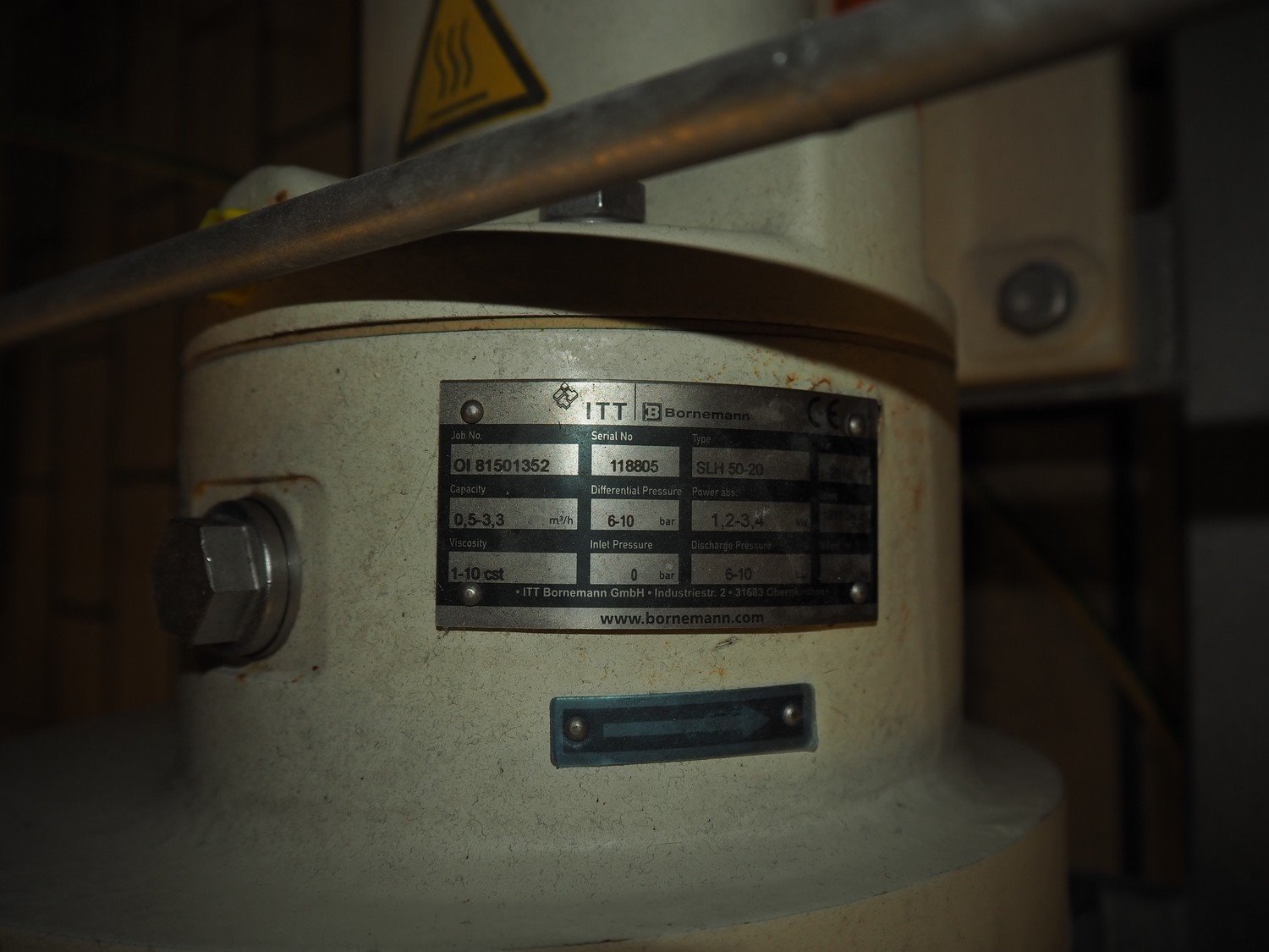 Bornemann twin screw pump, type: SLH 50-20, serial number: 118805, capacity: 0.5-3.3 m³/h, dimensions: 800 mm x 400 mm x 700 mm. Kavel locatie: P. Stuyvesantweg 1, 8937 AC Leeuwarden, Nederland