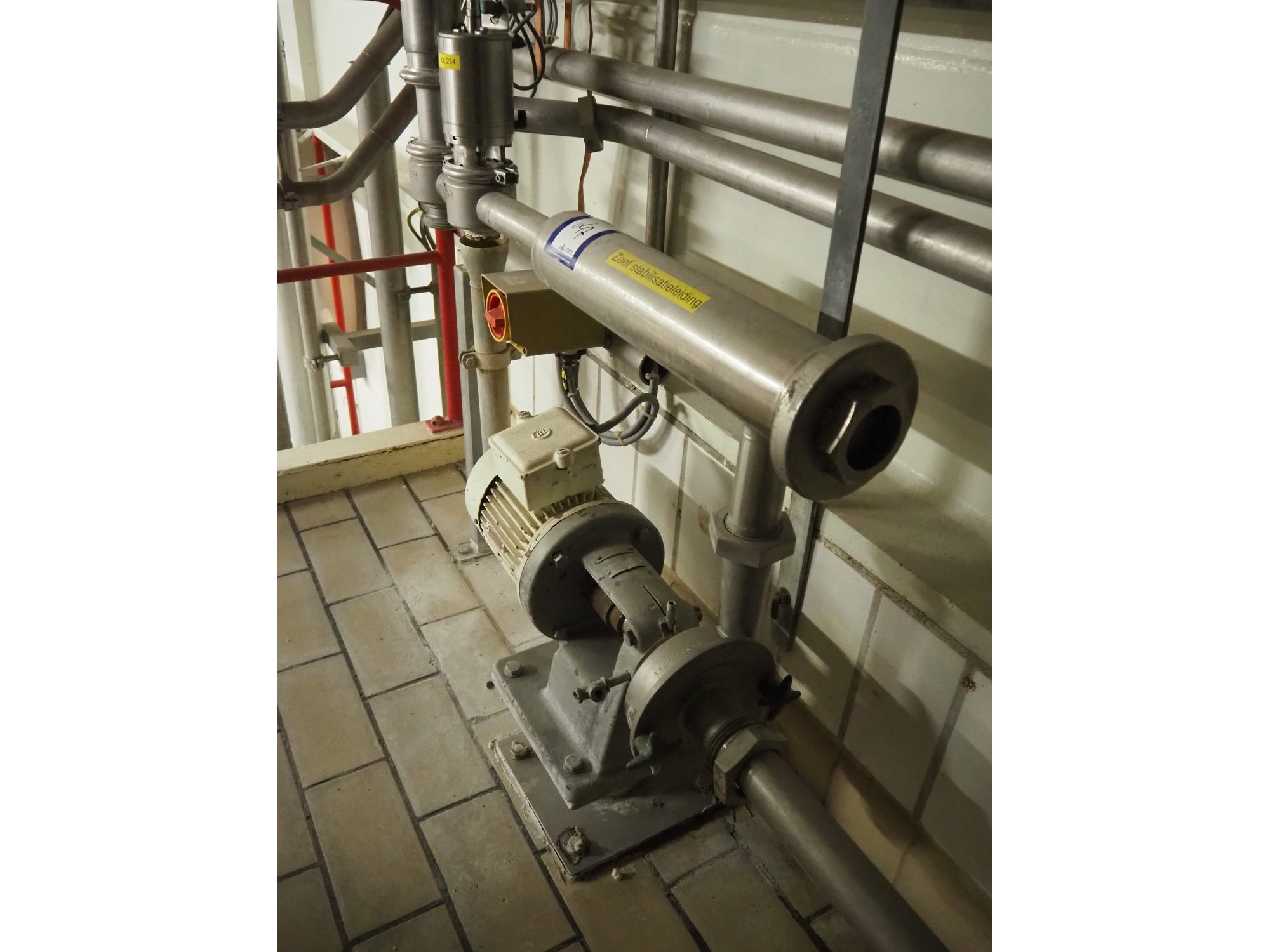 Fristam centrifugal pump with sieve, type: FP1712F, dimensions: 1100 mm x 300 mm x 1100 mm. Including 2 Hovap valves. Kavel locatie: P. Stuyvesantweg 1, 8937 AC Leeuwarden, Nederland