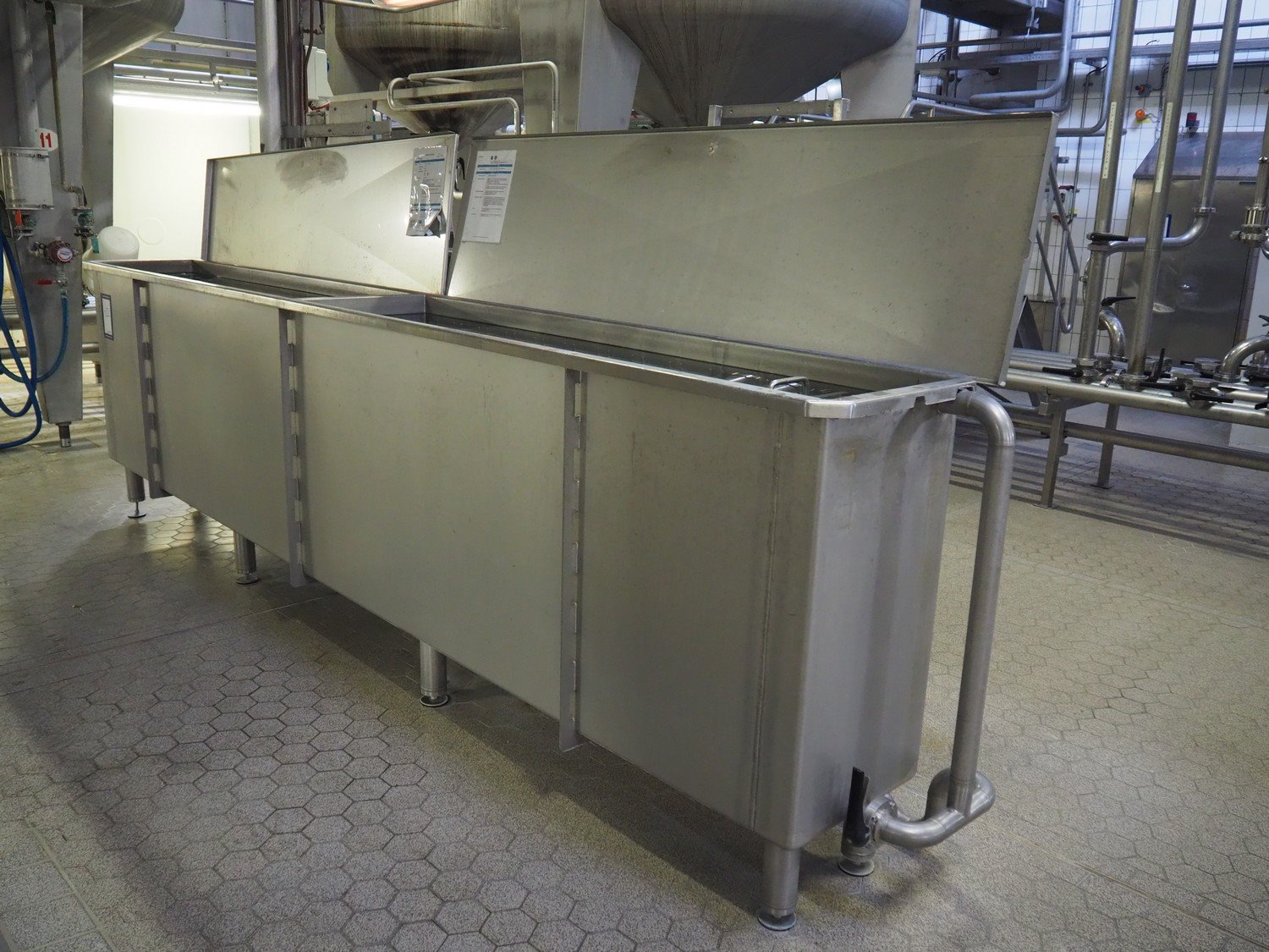 S/s disinfection tub, dimensions: 4100 mm x 600 mm x 1200 mm. Kavel locatie: P. Stuyvesantweg 1, 8937 AC Leeuwarden, Nederland