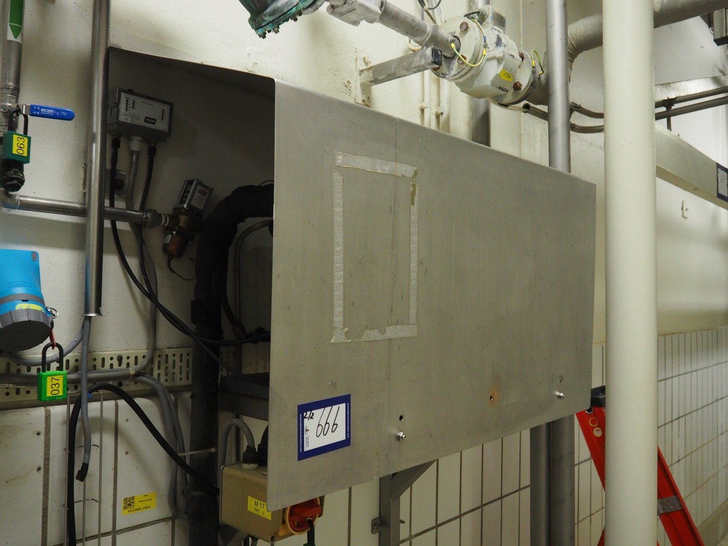 S/s cooled tank with DMW Copeland cooling unit, dimensions tank: 3000 mm x 1750 mm x 2800 mm, 1000 mm x 500 mm x 600 mm. Kavel locatie: P. Stuyvesantweg 1, 8937 AC Leeuwarden, Nederland