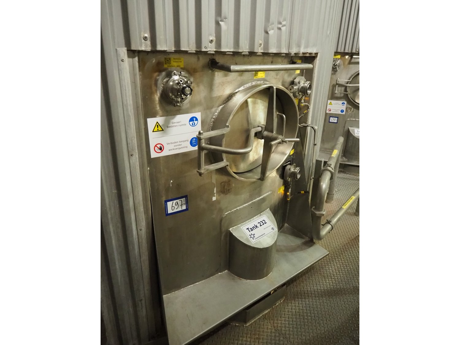 S/s insulated tank, dimensions: ø 3800 mm x 8000 mm. Kavel locatie: P. Stuyvesantweg 1, 8937 AC Leeuwarden, Nederland