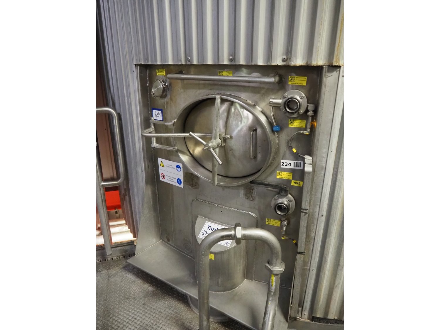 S/s insulated tank, dimensions: ø 3800 mm x 8000 mm. Kavel locatie: P. Stuyvesantweg 1, 8937 AC Leeuwarden, Nederland