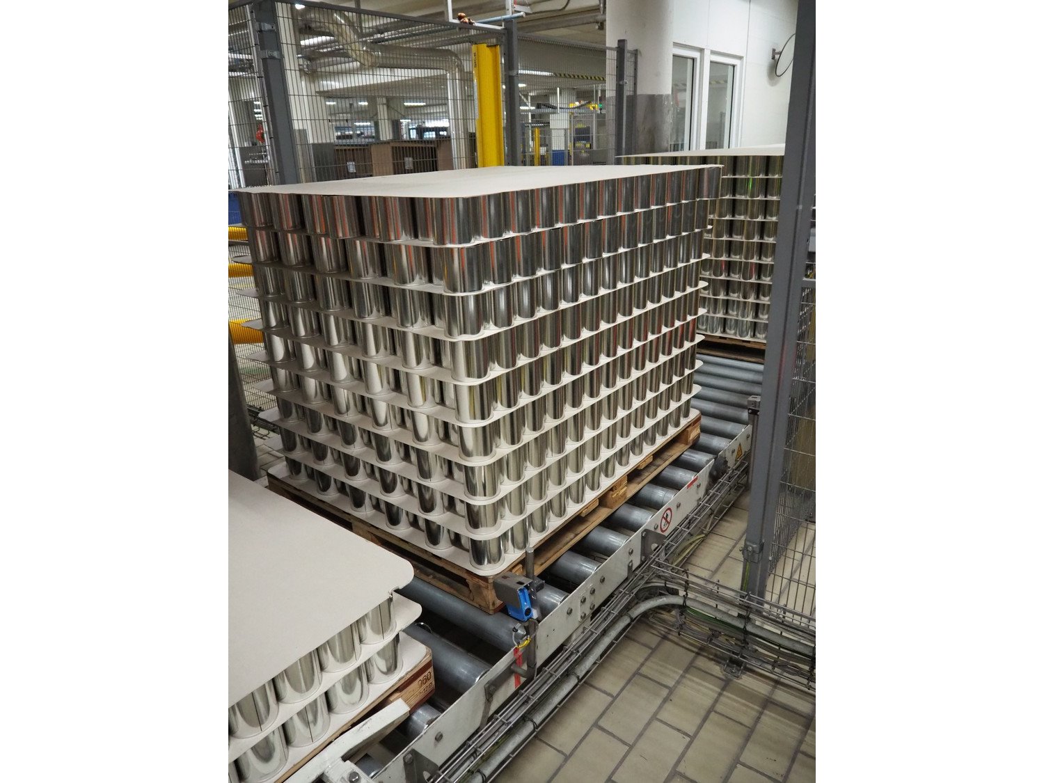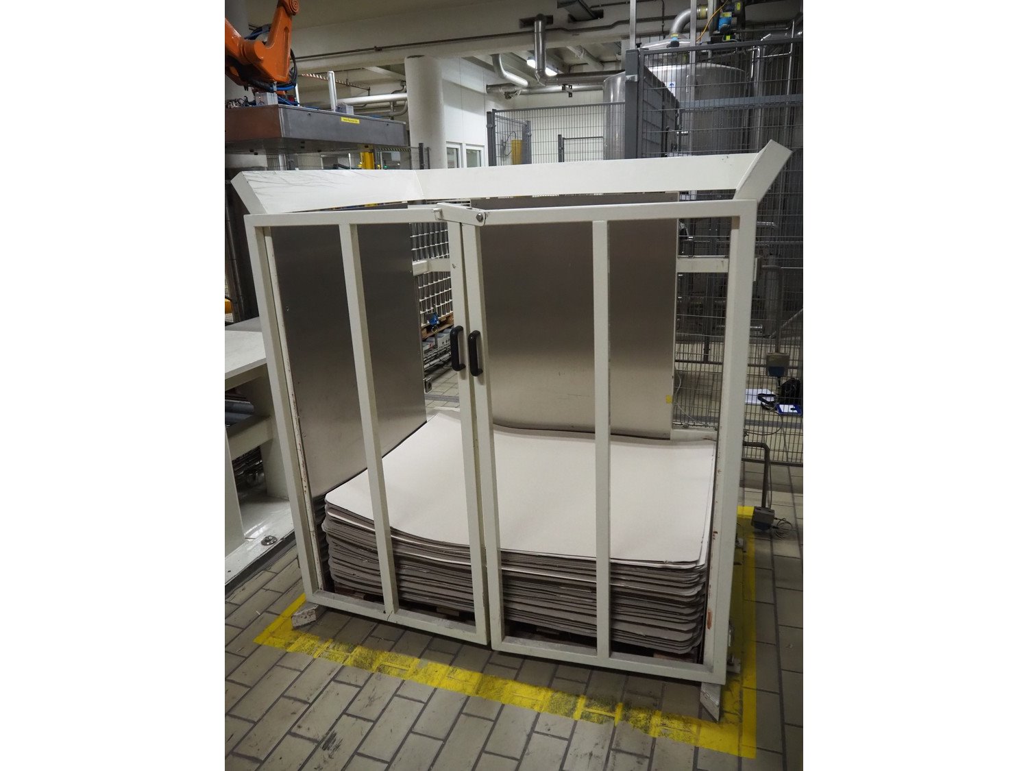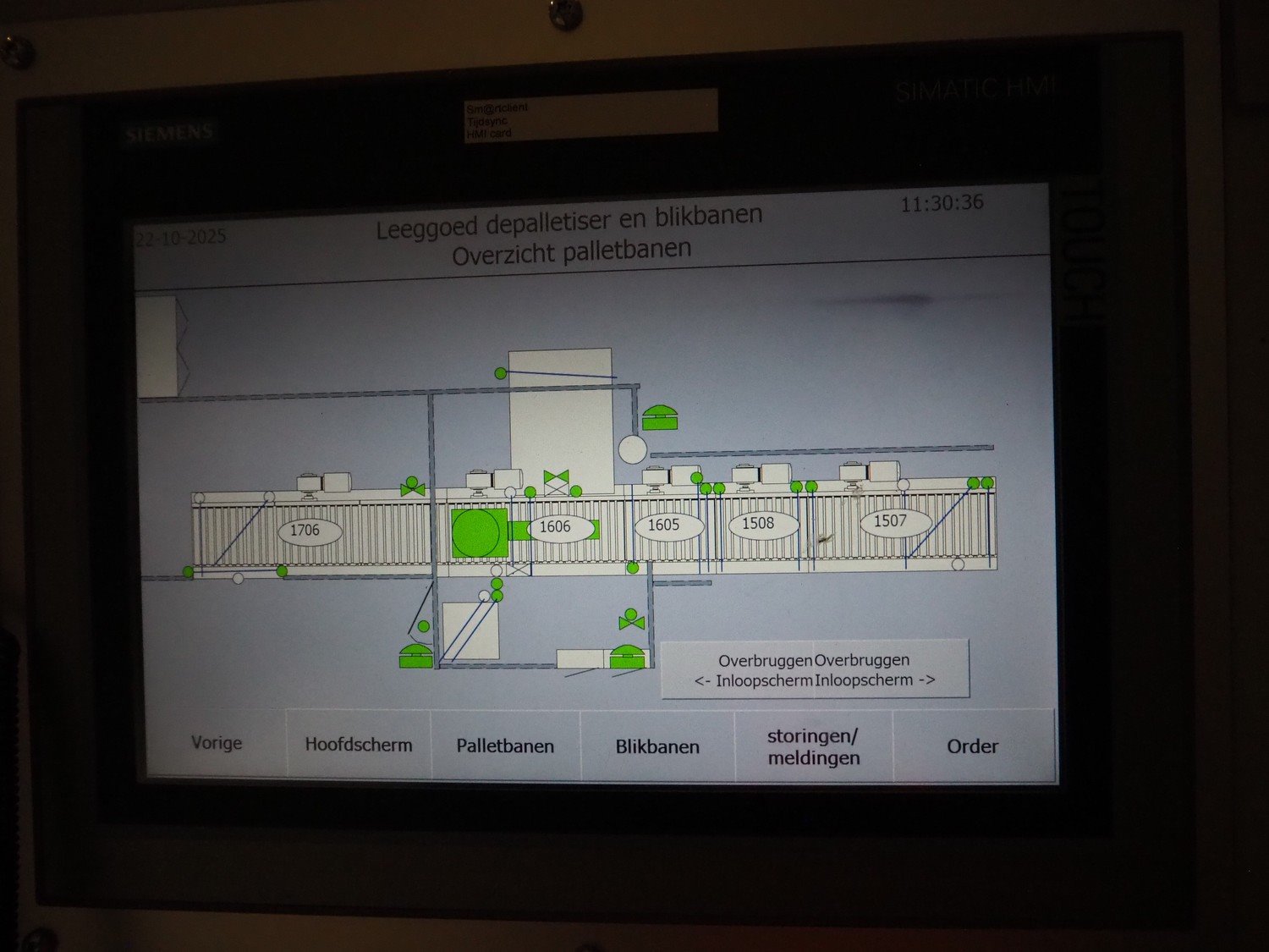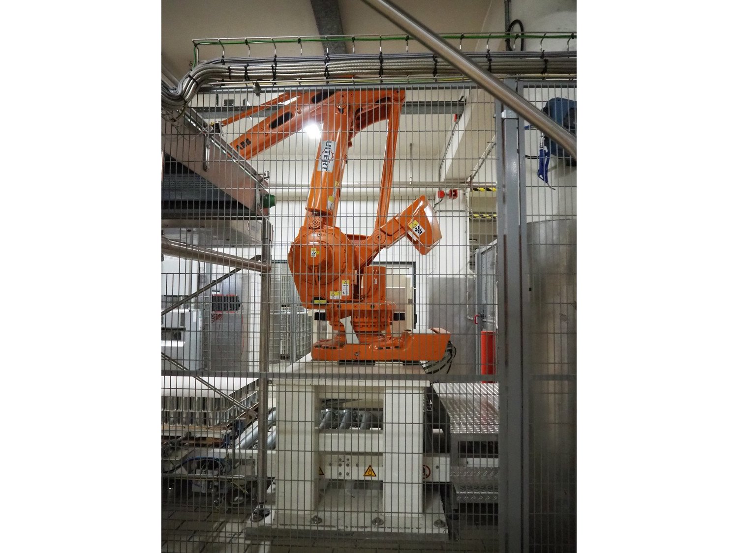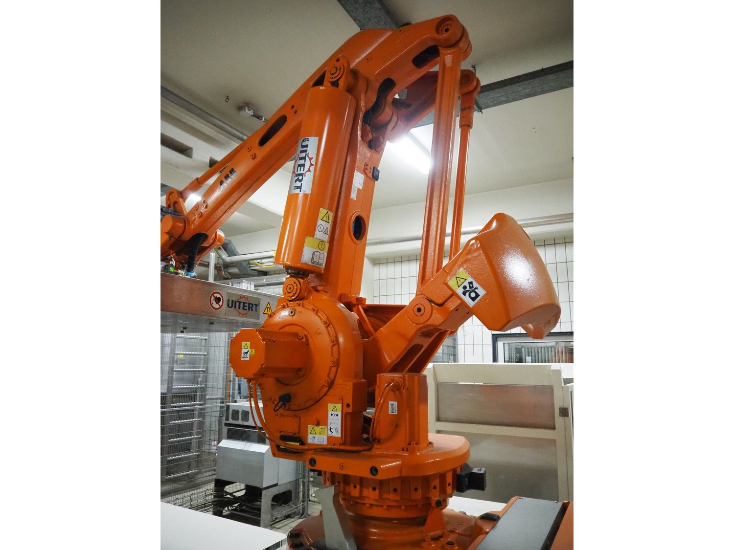 Uitert can depalletizer, with ABB robot and Uitert magnetic grabber, robot type: IRB 760 M2004, robot variant: IRB 760-450/3.2, serial number: 760-100131, year of construction: 2013-08-15, weight: 2300 kg, with Naviflex conveyors, steel rollers, roller width: 1300 mm, total dimensions: 13200 mm x 6800 mm x 3500 mm. Kavel locatie: P. Stuyvesantweg 1, 8937 AC Leeuwarden, Nederland