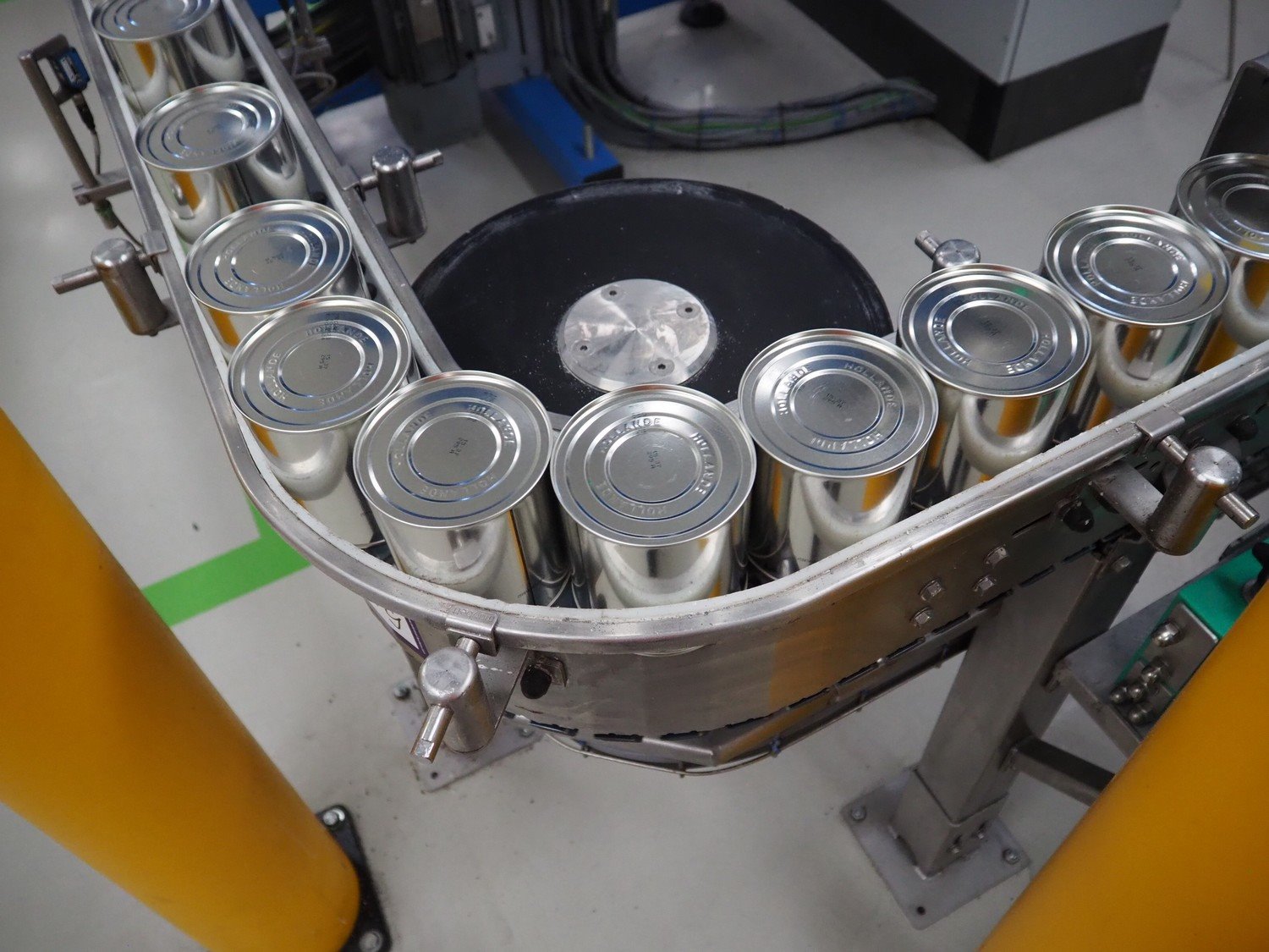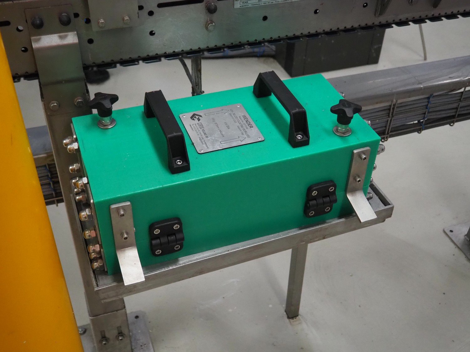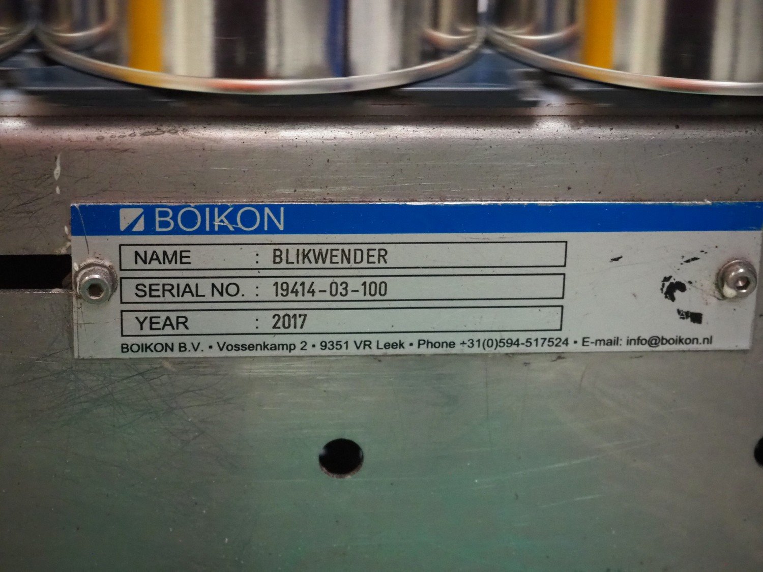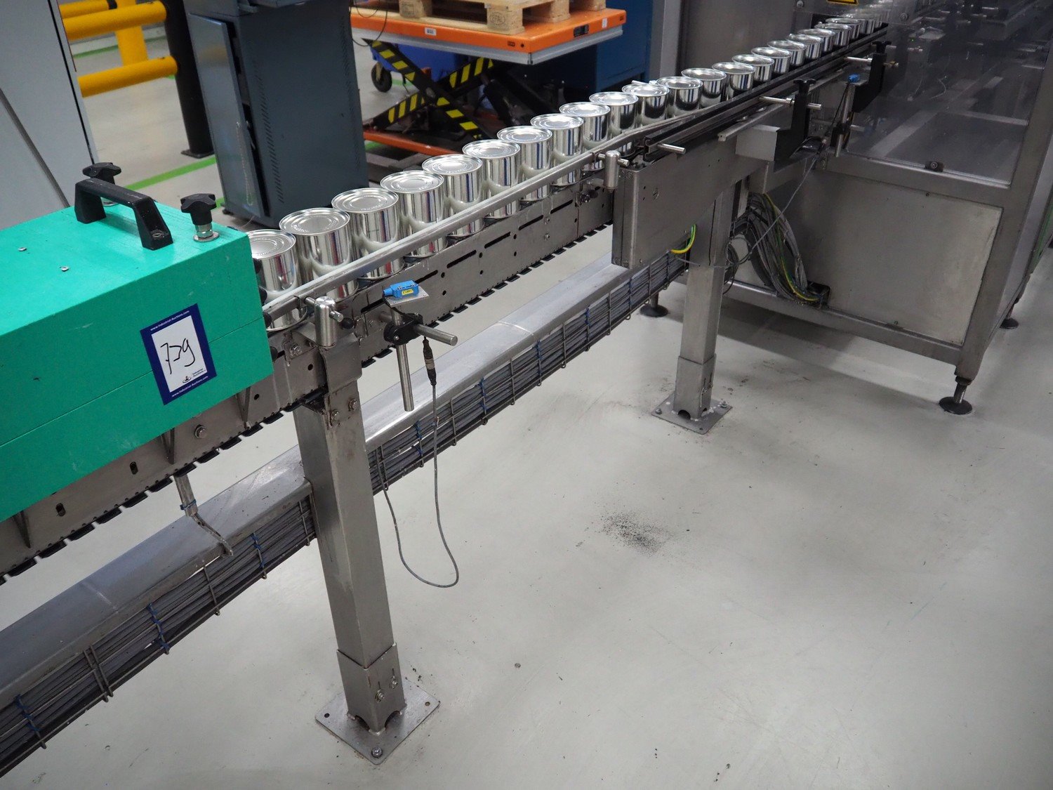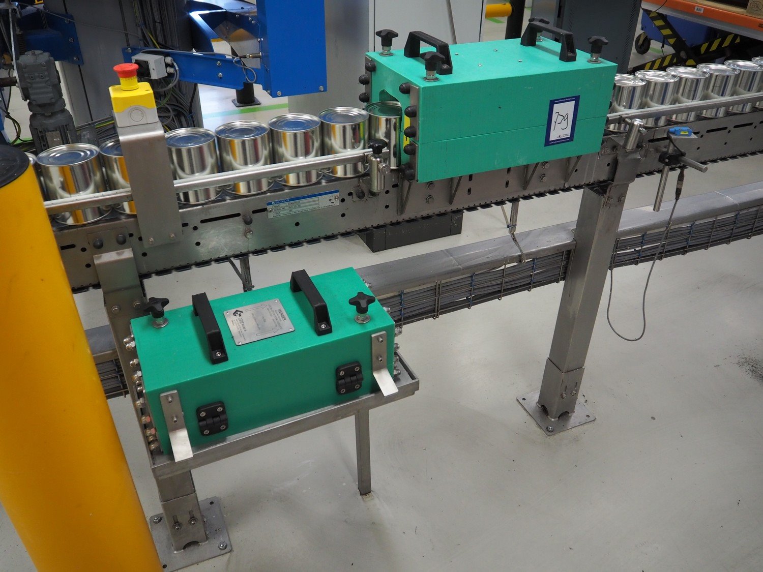 Boikon 90° conveyor with can turning device, serial number: 19414-03-100, year of construction: 2017, plastic belt, belt width: 80 mm, total dimensions: 2200 mm x 3500 mm x 1300 mm. Kavel locatie: P. Stuyvesantweg 1, 8937 AC Leeuwarden, Nederland