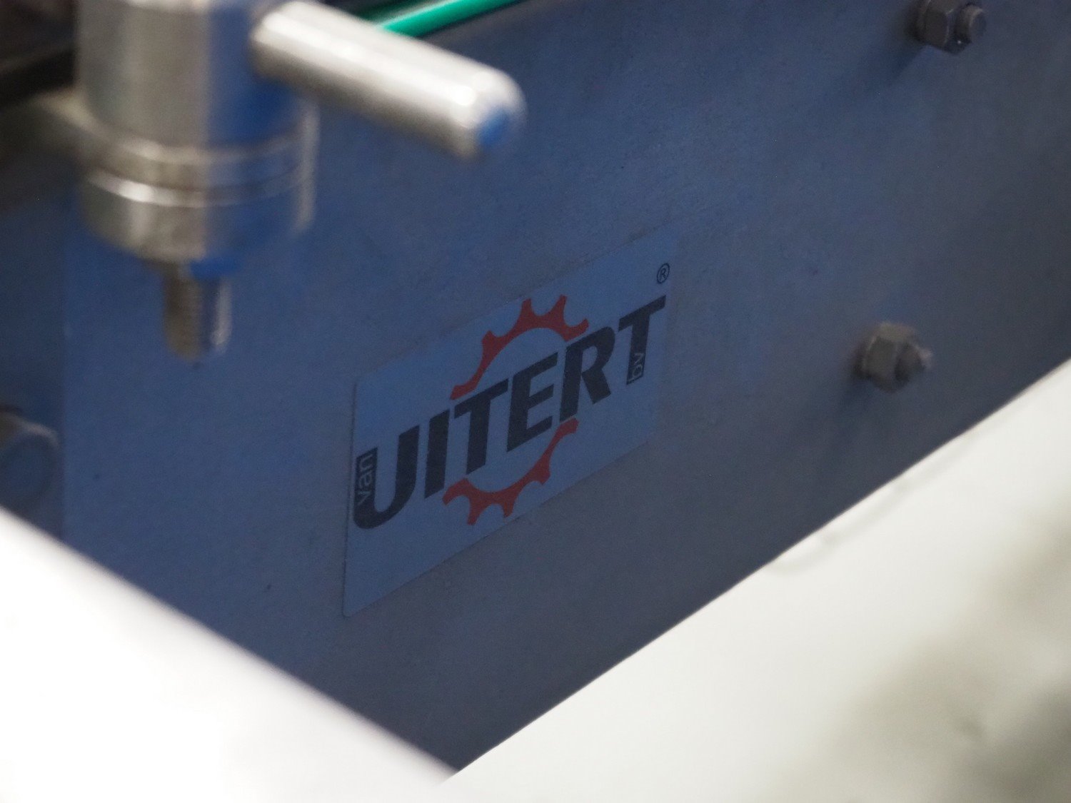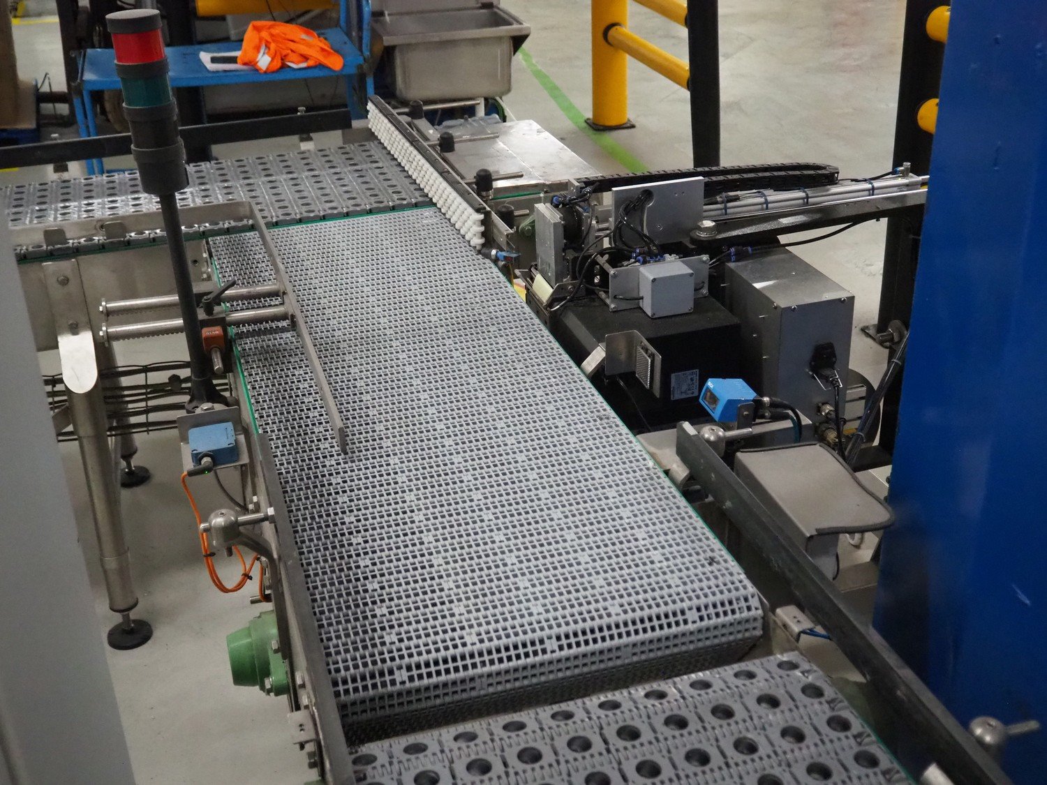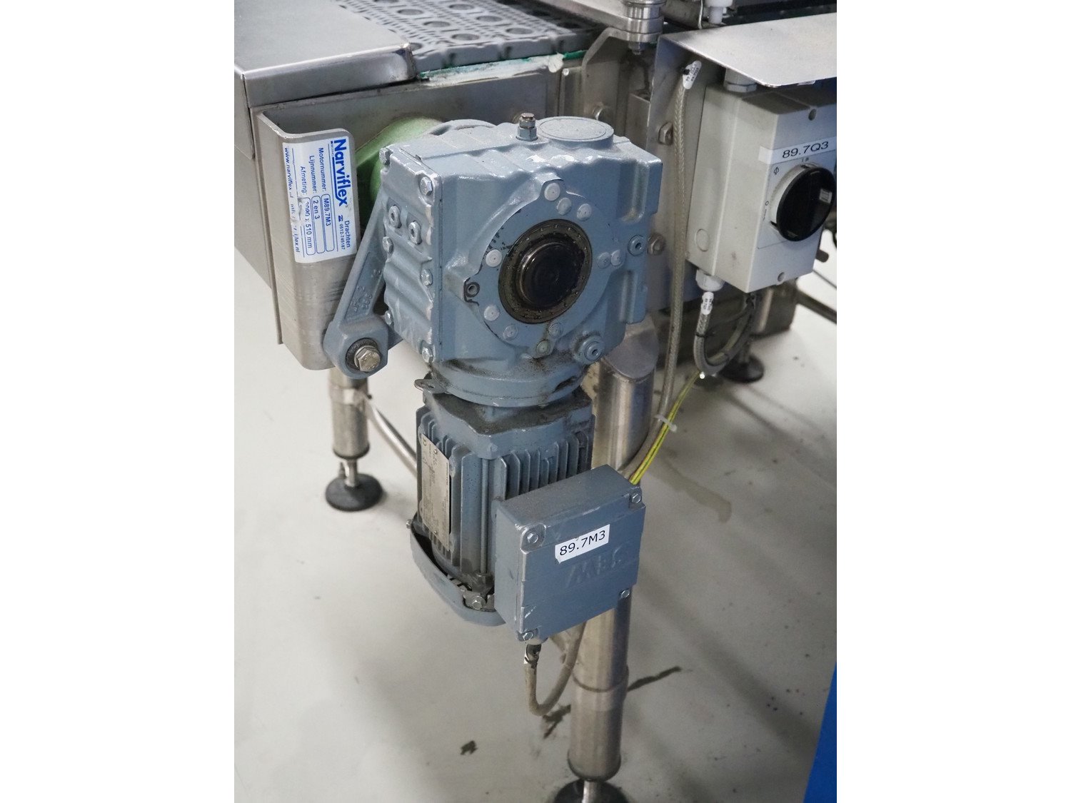 Van Uitert b&p turning conveyor, plastic belt with rollers, belt width: 510 mm, total dimensions: 2900 mm x 800 mm x 1200 mm. Kavel locatie: P. Stuyvesantweg 1, 8937 AC Leeuwarden, Nederland
