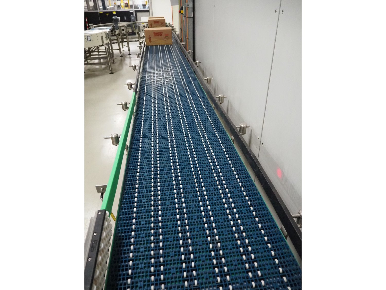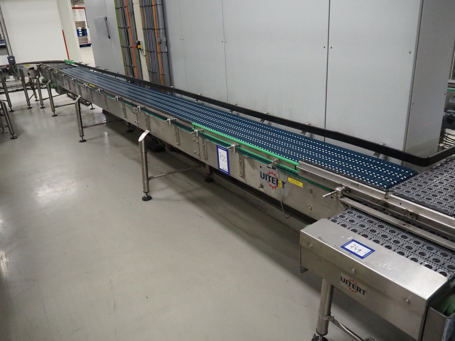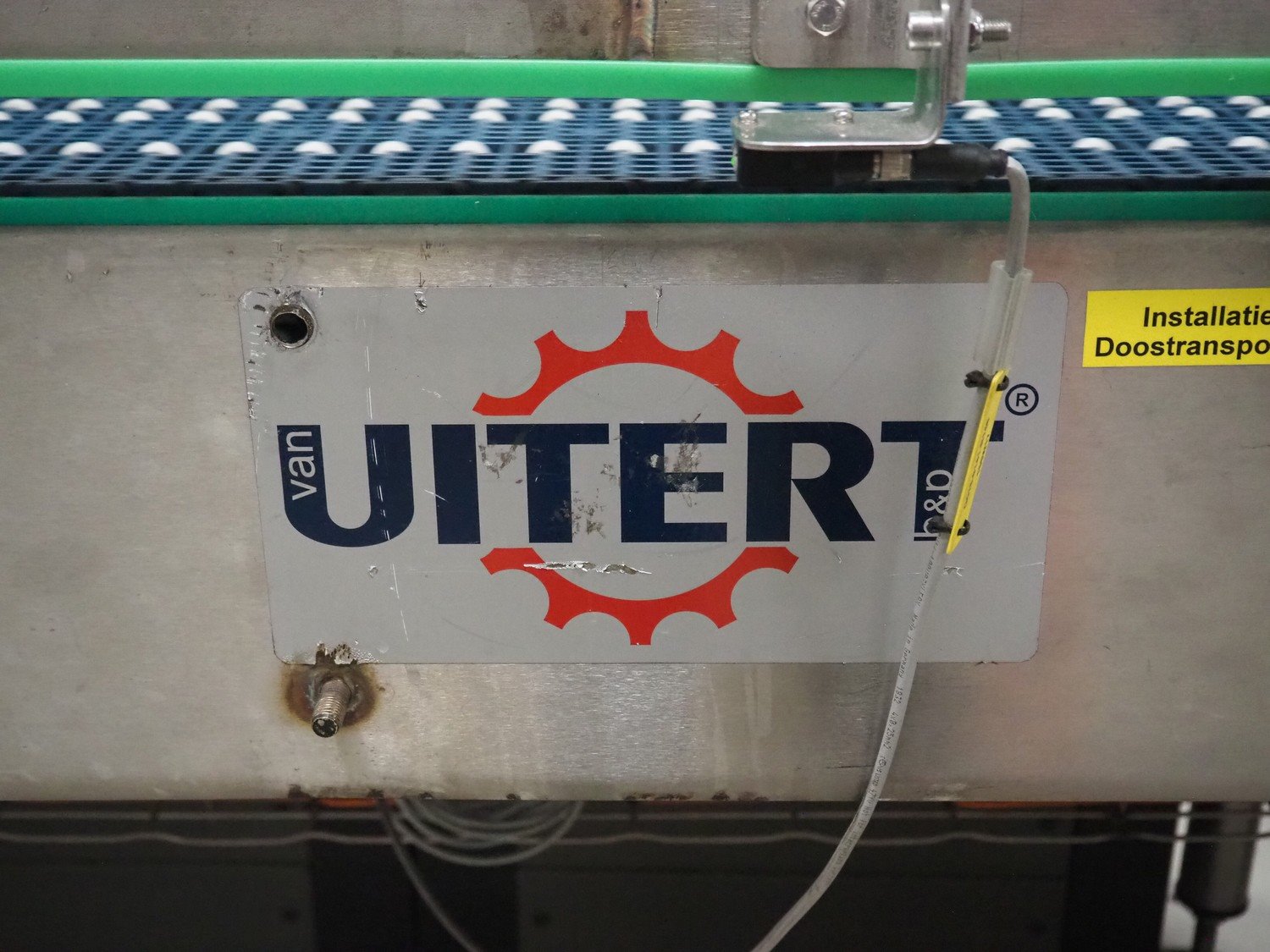 Van Uitert b&p transport belt, plastic belt with rollers, belt width: 450 mm, total dimensions: 8000 mm x 600 mm x 1100 mm. Kavel locatie: P. Stuyvesantweg 1, 8937 AC Leeuwarden, Nederland