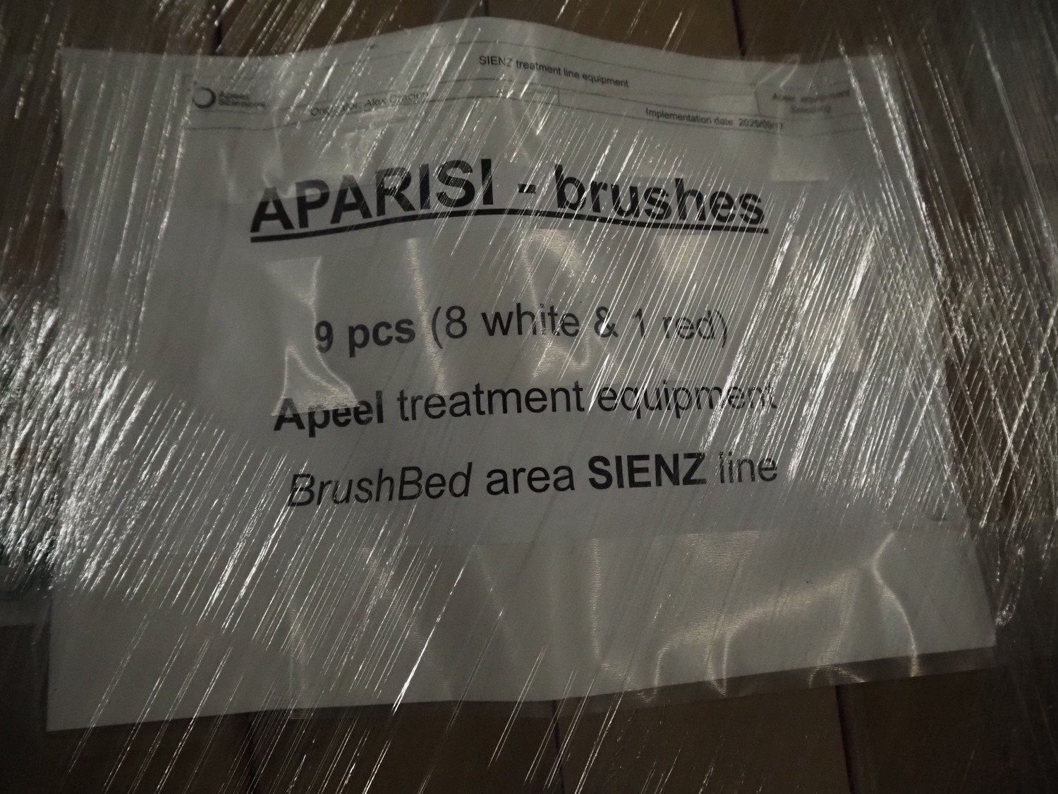 Sienz S.L. coating machine, model: TR-M0211, serial number: 20154900/0400, year of construction: 2022, brush length: 1500 mm, total dimensions: 2150 mm x 2000 mm x 2200 mm. Including box with additional brushes. Kavel locatie: De Opfaart 1, 9076 PT Sint Annaparochie, Nederland