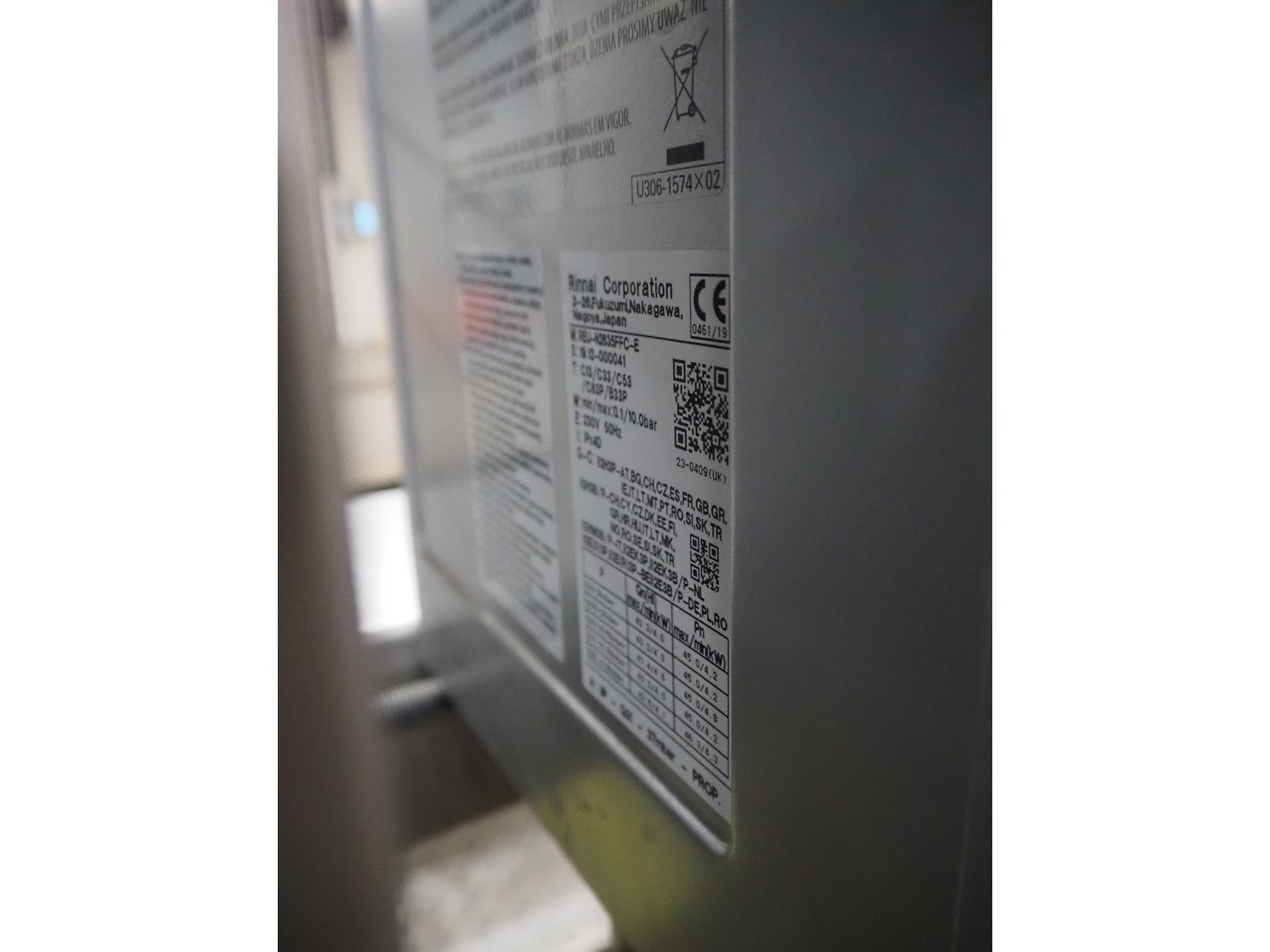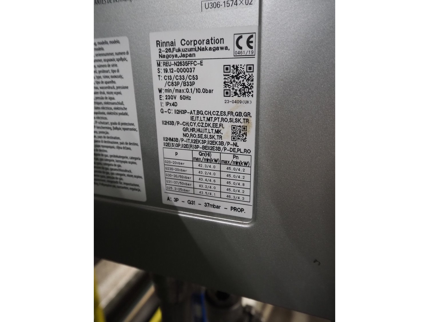 Rinnai Corporation water heating installation with 3 Rinnai Corporation water heaters, model: (3x) REU-N2635-FFC-E, dimensions: 2800 mm x 800 mm x 1800 mm Kavel locatie: De Opfaart 1, 9076 PT Sint Annaparochie, Nederland