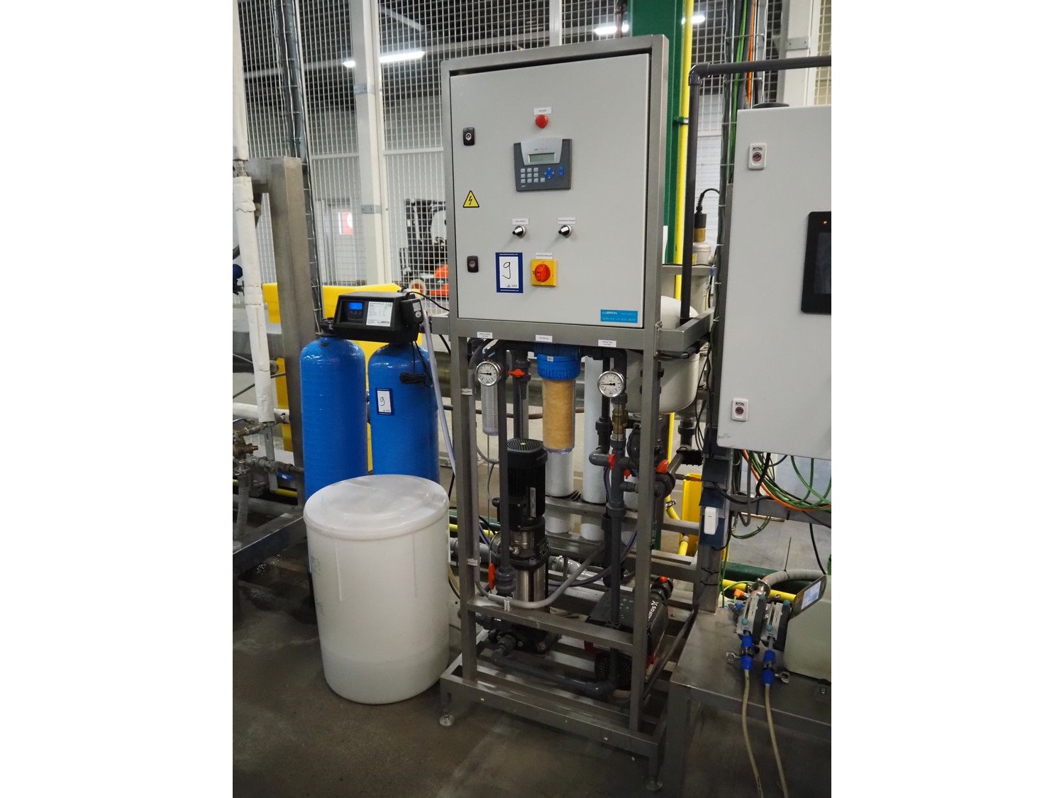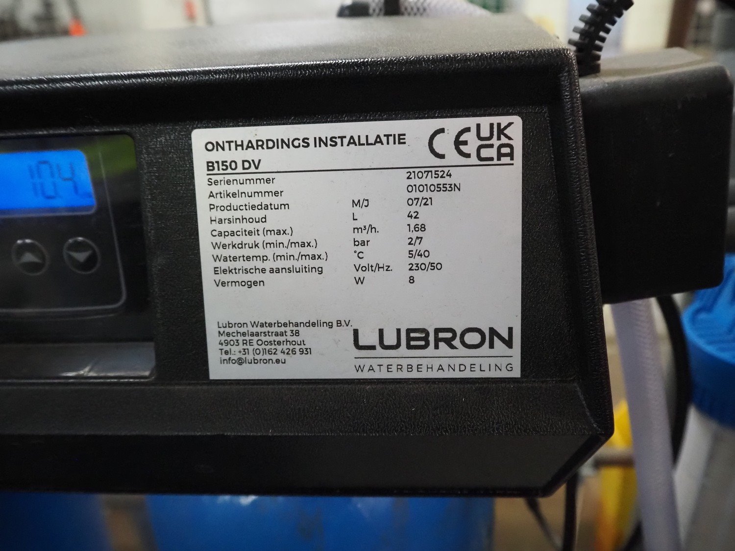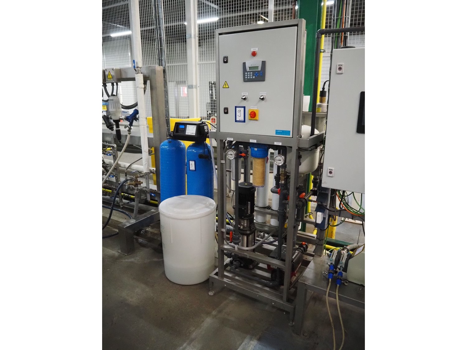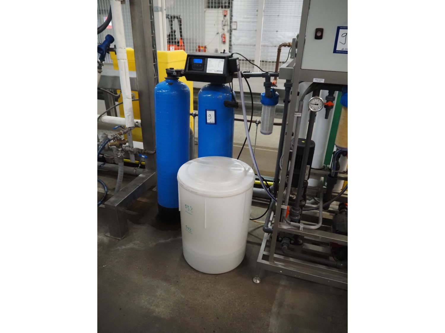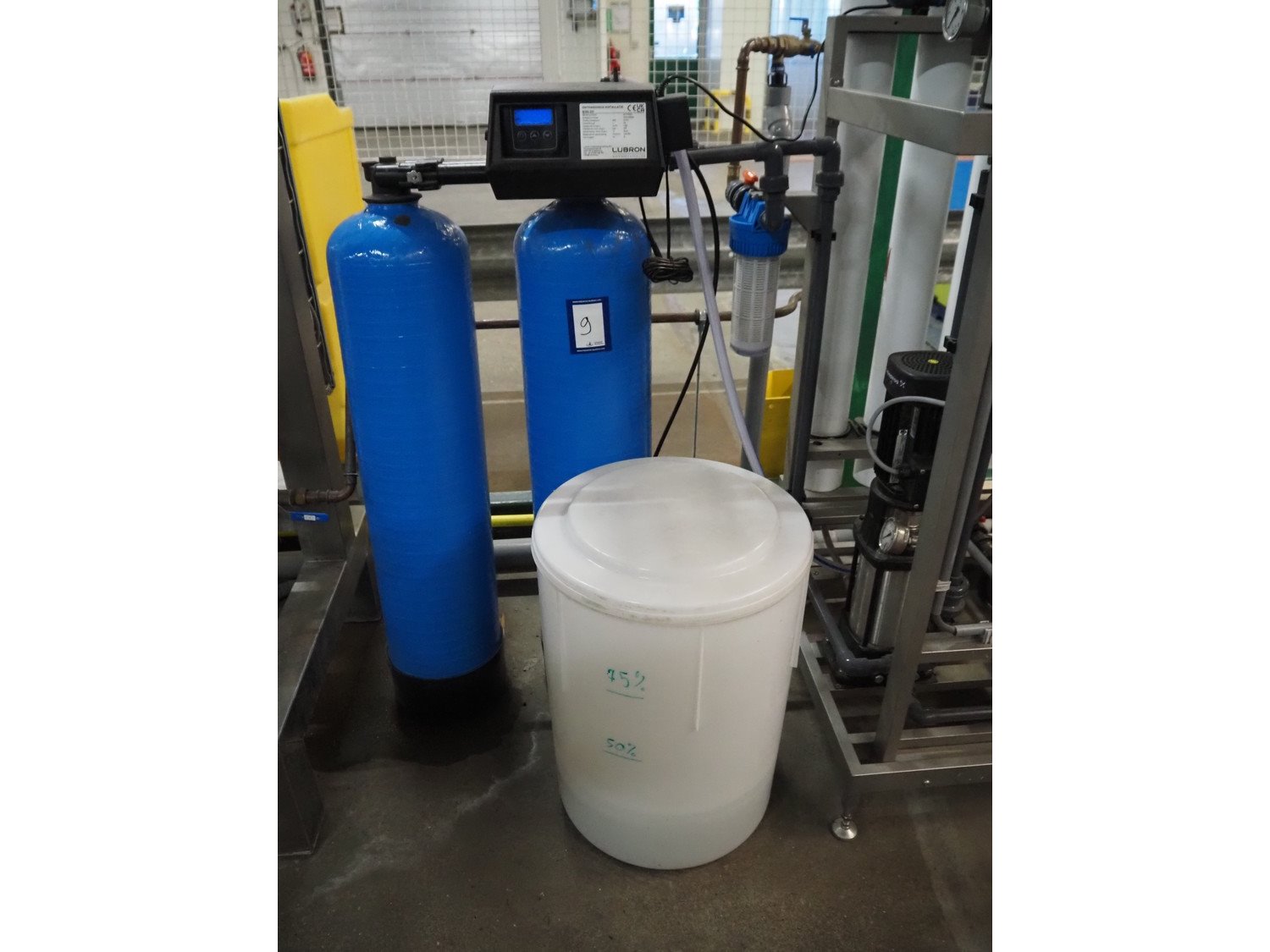 Labron Waterbehandeling B.V. CIP installation consisting of: Labron Waterbehandeling B.V. water softener, serial number: 21071524, year of construction: 2021, 230 V, 50 Hz, 8 W, capacity: 1.68 m³ per hour, dimensions: (2x) Ø 260 mm x 1200 mm, plastic tub for salt, dimensions: Ø 480 mm x 650 mm, pump installation with switch cabinet, dimensions: 750 mm x 700 mm x 1950 mm, plastic storage tank, dimensions: Ø 1300 mm x 1600 mm. Kavel locatie: De Opfaart 1, 9076 PT Sint Annaparochie, Nederland