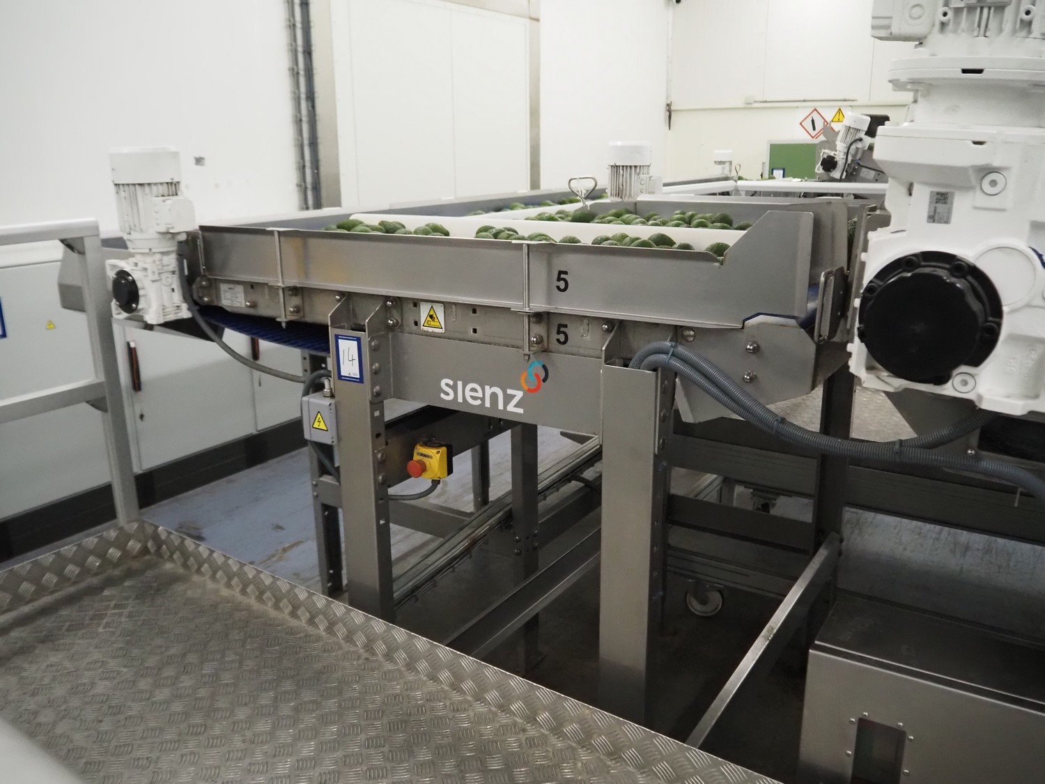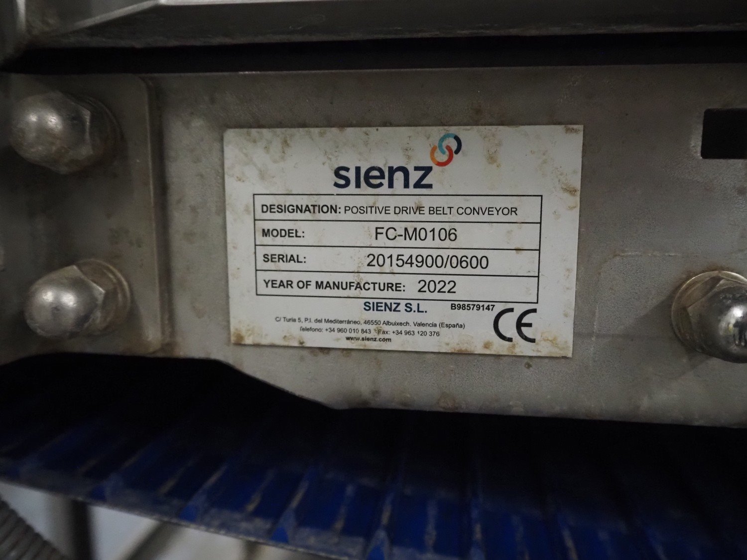 Sienz S.L. double transport belt, model: FC-M0106, serial number: 20154900/0600, year of construction: 2022, plastic belt, belt width: (2x) 750 mm, total dimensions: 1700 mm x 1700 mm x 1900 mm. Kavel locatie: De Opfaart 1, 9076 PT Sint Annaparochie, Nederland