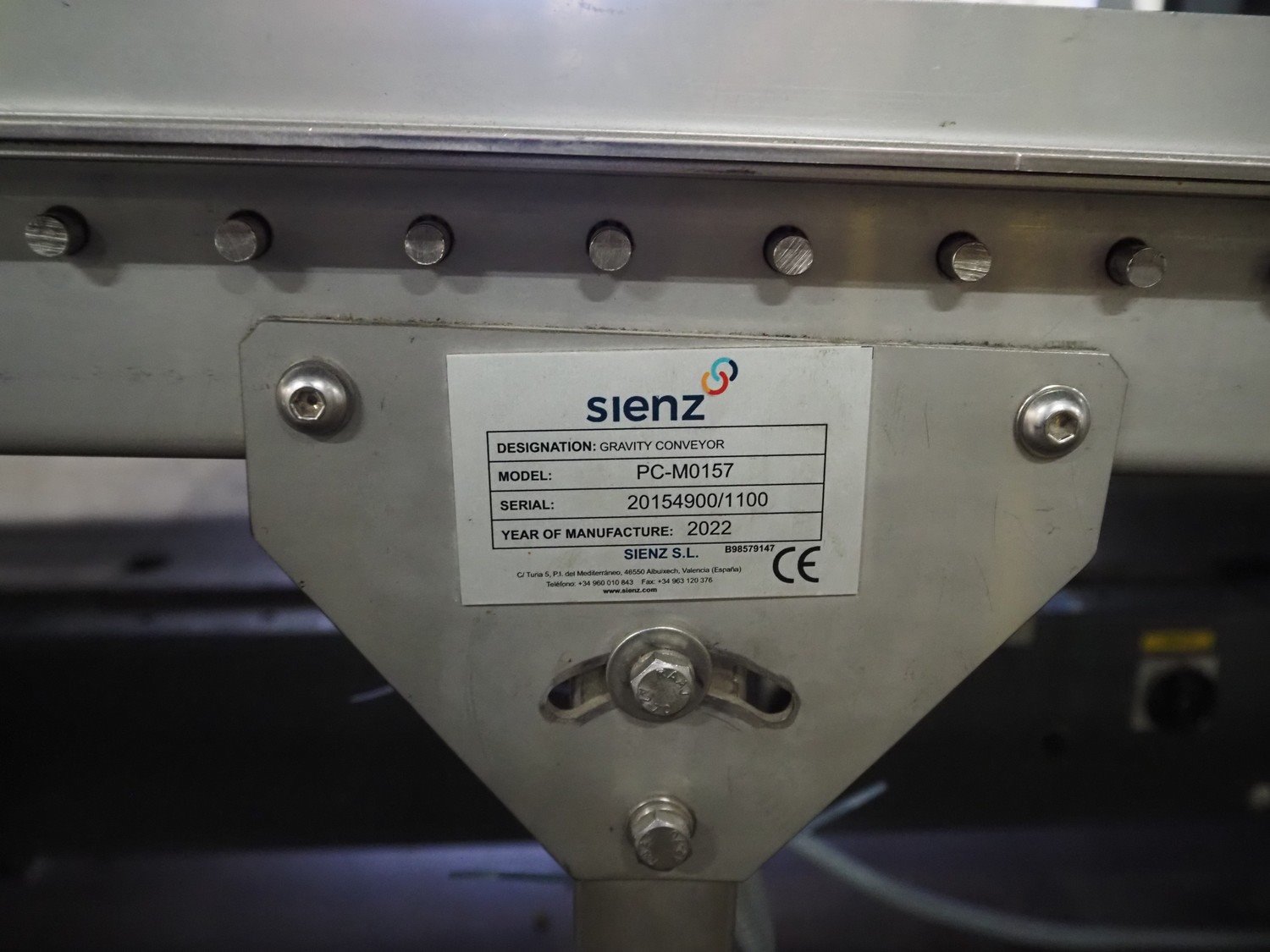 Sienz S.L. roller conveyor, model: PC-M0157, serial number: 20154900/1100, year of construction: 2022, s/s rollers, roller width: 500 mm, total dimensions: 5300 mm x 600 mm x 1000 mm. Kavel locatie: De Opfaart 1, 9076 PT Sint Annaparochie, Nederland