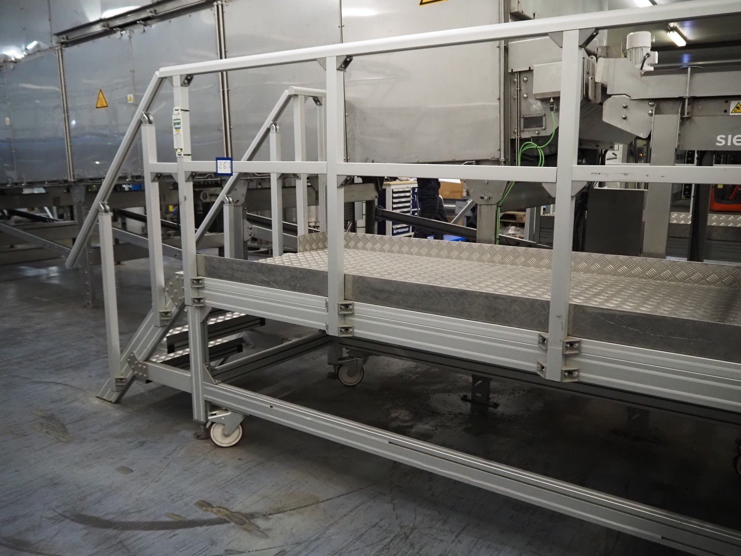 Steel mobile working platform, working height: 800 mm, total dimensions: 3700 mm x 1200 mm x 1700 mm. Kavel locatie: De Opfaart 1, 9076 PT Sint Annaparochie, Nederland