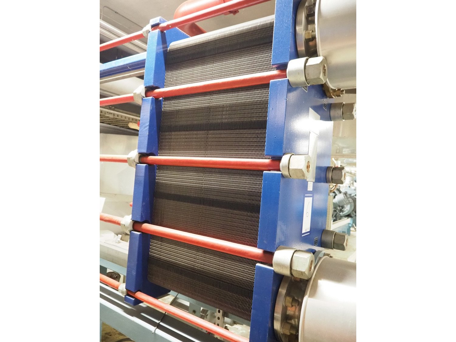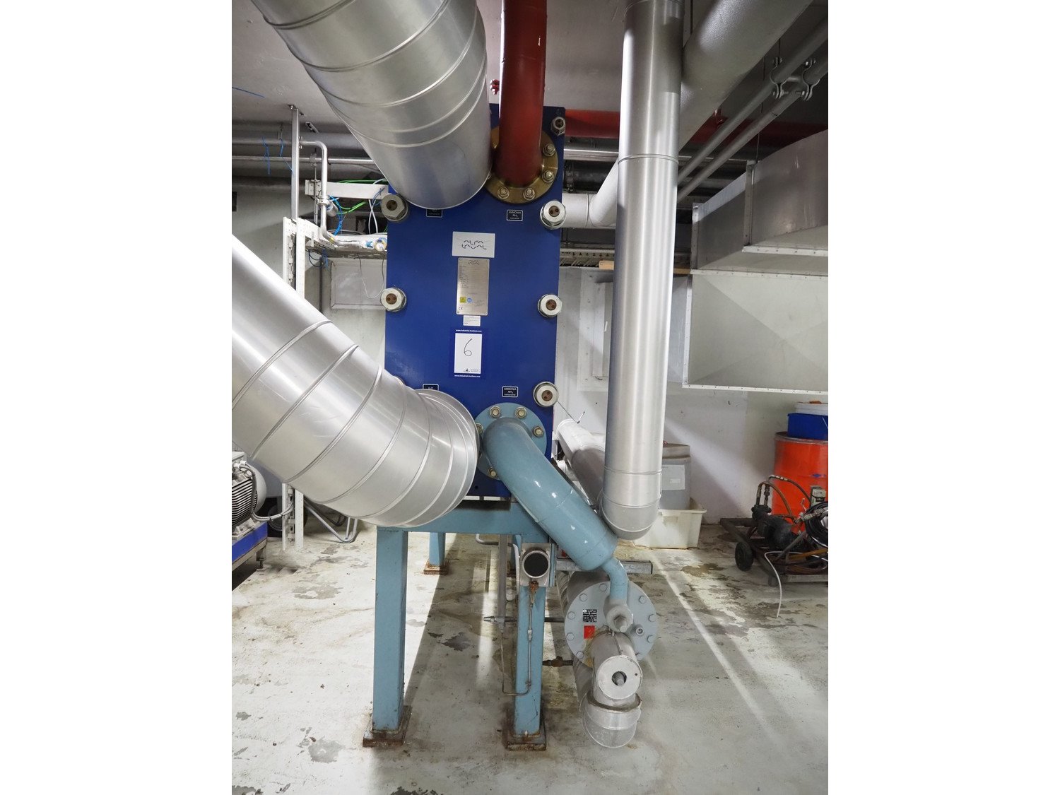 Steel skid with Alfa Laval plate heat exchanger, type: MK15-BWFDR, serial number: 30105-31166, year of construction: 2005, volume S1-S2: 132.0 liter, PS: -1/22.0 bar, TS: 0/100 °C, PT: 31.5 bar, volume S3-S4: 130.0 liter, PS: -1/16.0 bar, TS: 0/40 °C, PT: 22.9 bar, including GEA purger. Please notice that the 2 WITT kältemaschinenfabrik GmbH float regulators and the pipework are not included. Kavel locatie: Kanaalstraat 4-6, 7241 DA Lochem, Nederland