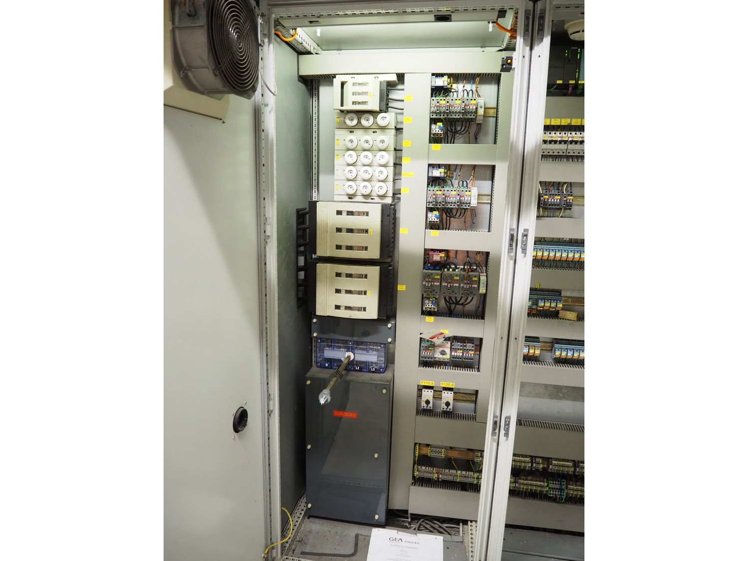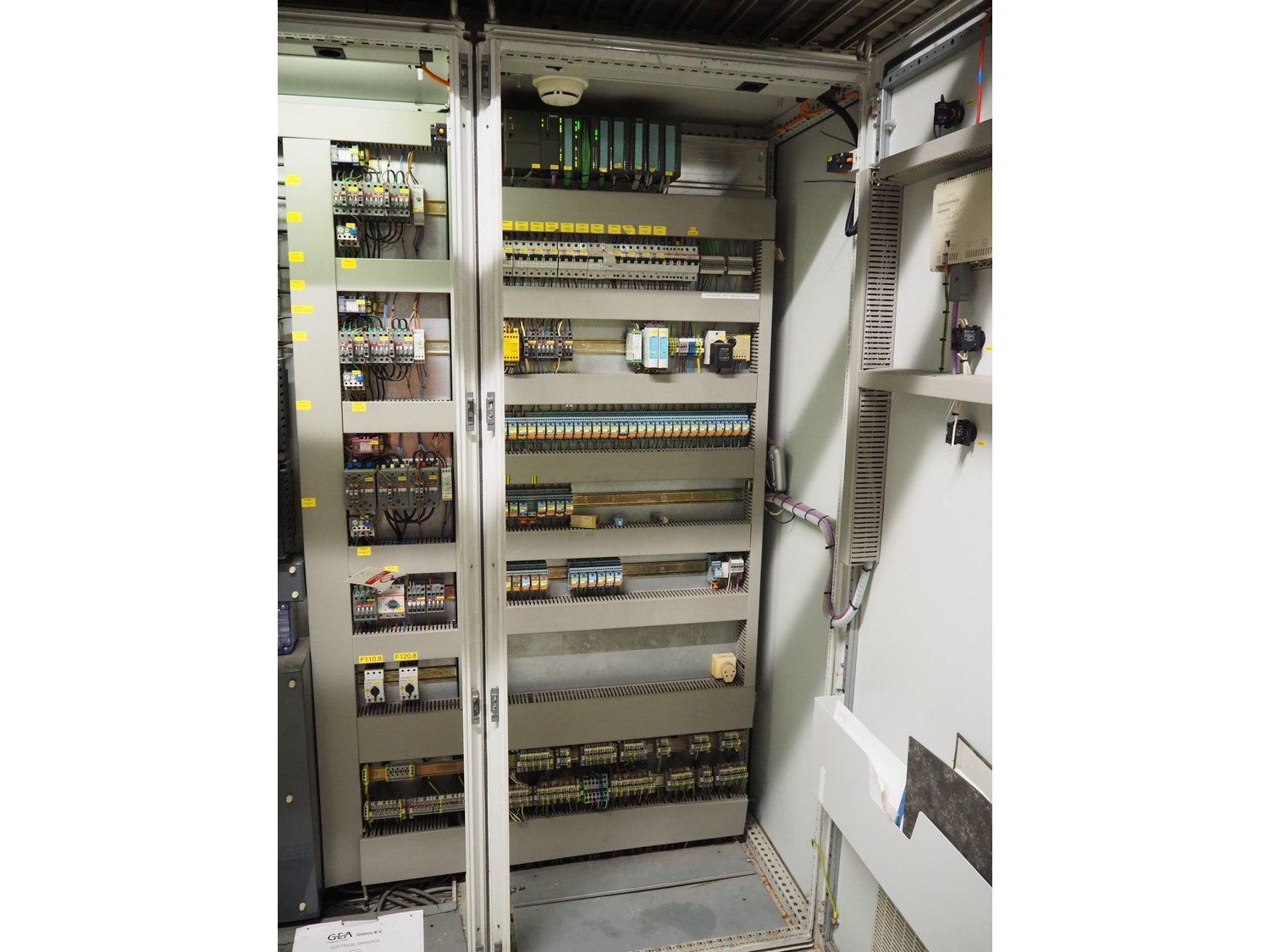 Switch cabinet for GEA Grasso/Alfa Laval cooling installation (lot number 4, 5, 6 and 7), dimensions: 3200 mm x 600 mm x 2000 mm. Kavel locatie: Kanaalstraat 4-6, 7241 DA Lochem, Nederland